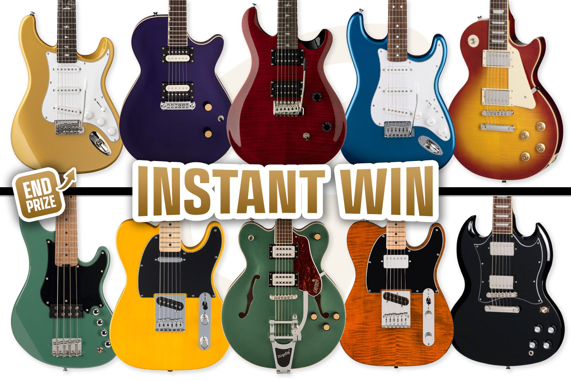 Please note: If you win site credit, it is automatically added to your account. If you win a guitar, pedal, gear or cash, you will get an email with the next steps, and we will get it sent out to you.