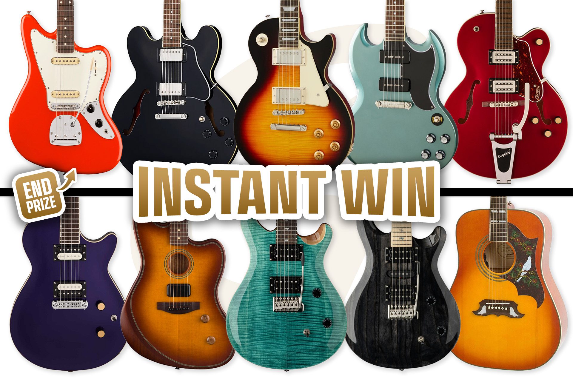 Please note: If you win site credit, it is automatically added to your account. If you win a guitar, pedal, gear or cash, you will get an email with the next steps, and we will get it sent out to you.