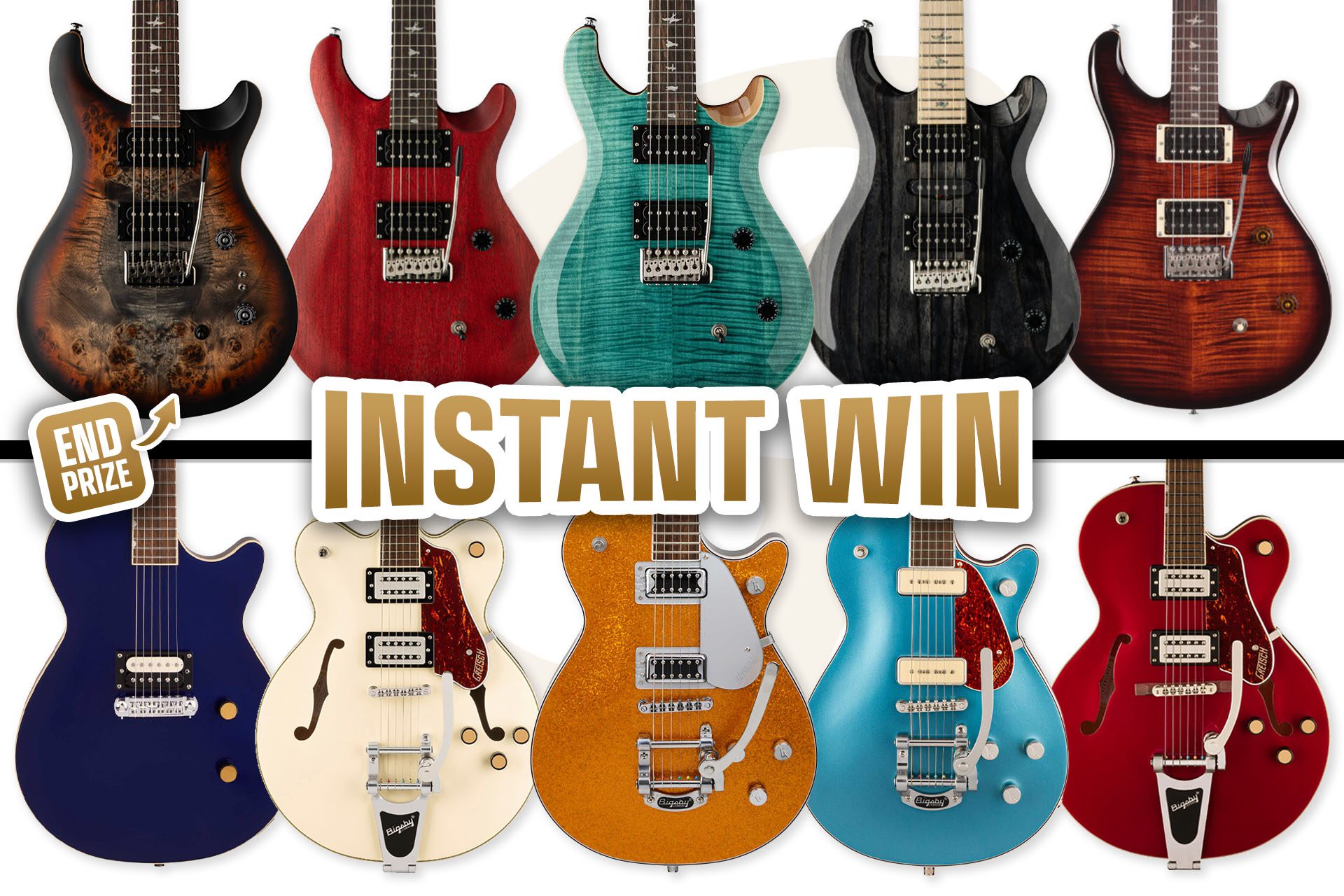 Please note: If you win site credit, it is automatically added to your account. If you win a guitar, pedal, gear or cash, you will get an email with the next steps, and we will get it sent out to you.