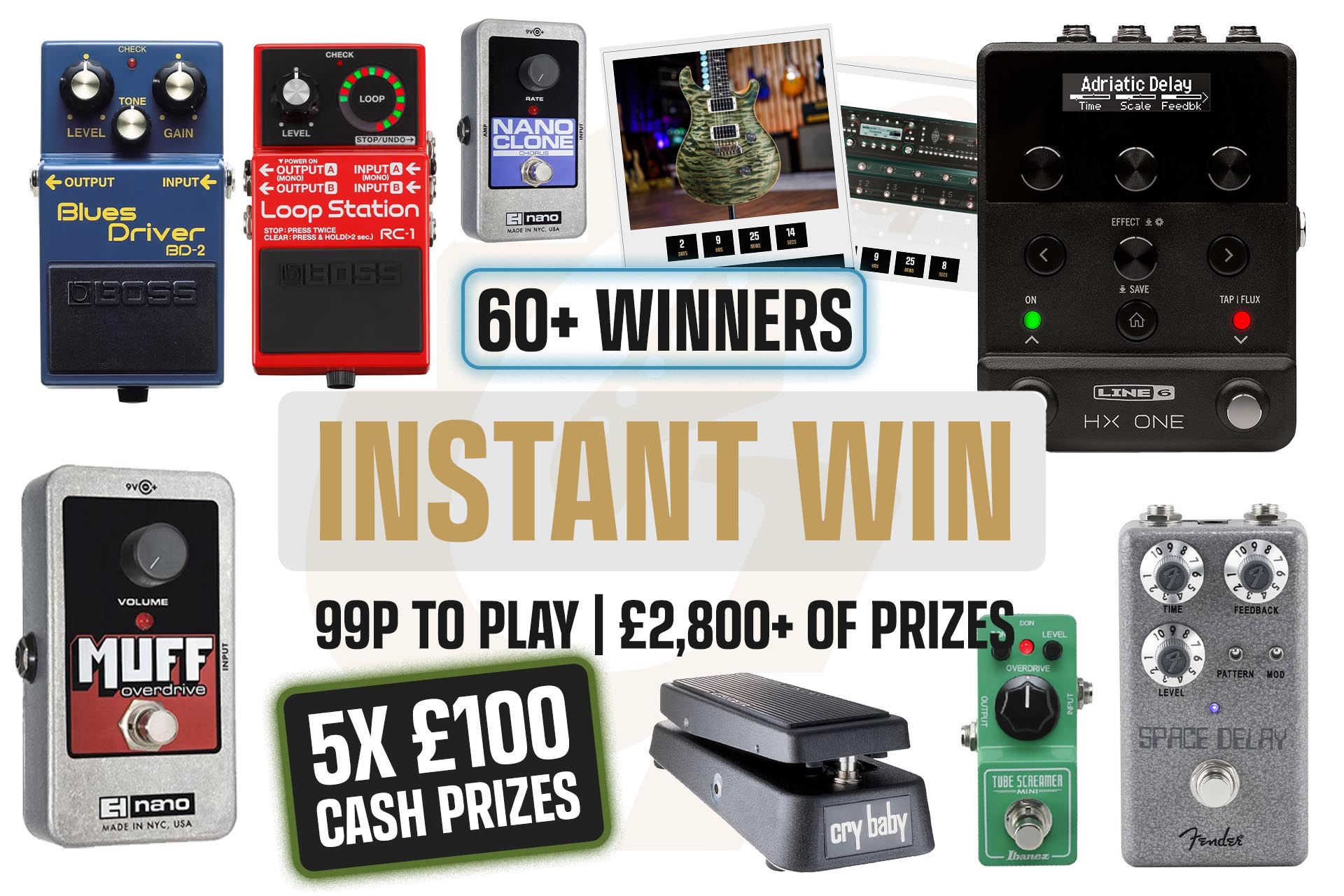 You could instantly win guitar pedals, gear, cash, stacks of tickets, site credit and merch!