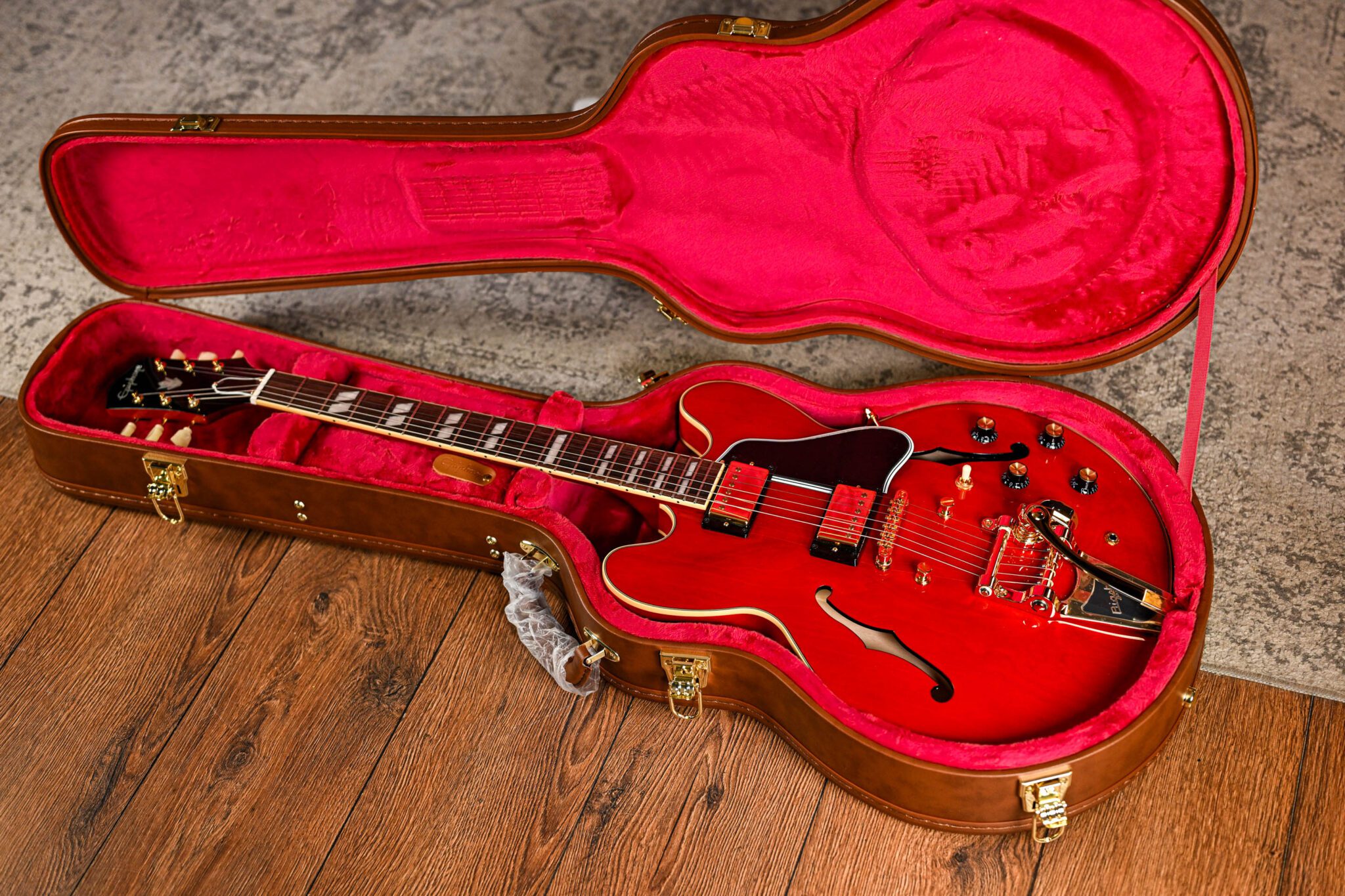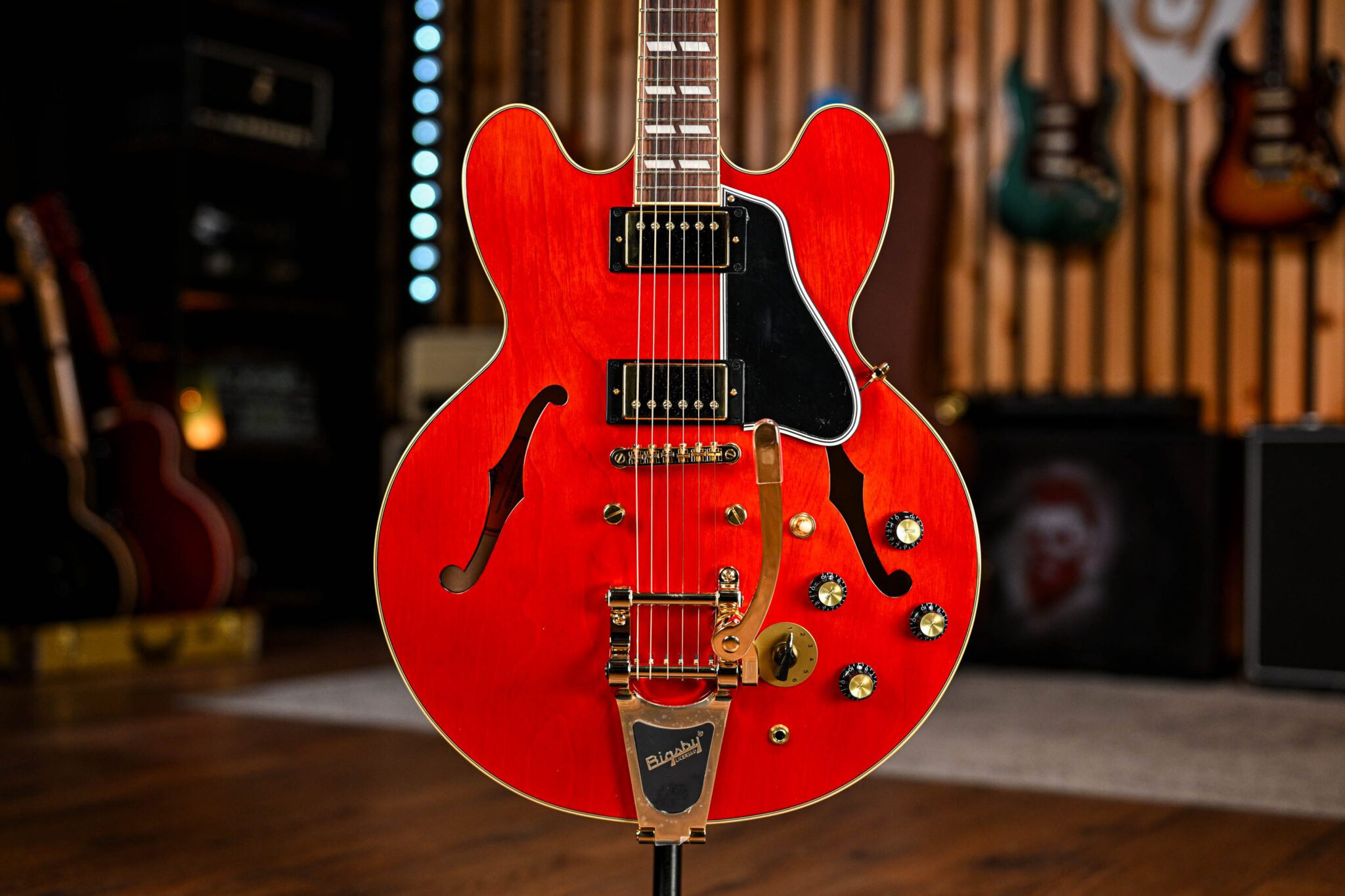 Inspired by the Gibson ES-345 played by Marty McFly during his unforgettable “Johnny B. Goode” performance at the Enchantment Under the Sea dance, this model captures the energy and magic of that legendary moment. Although the ES-345 originally debuted in 1959, its appearance in the film’s 1955 setting gave it a unique place in both music and movie history.