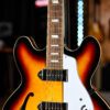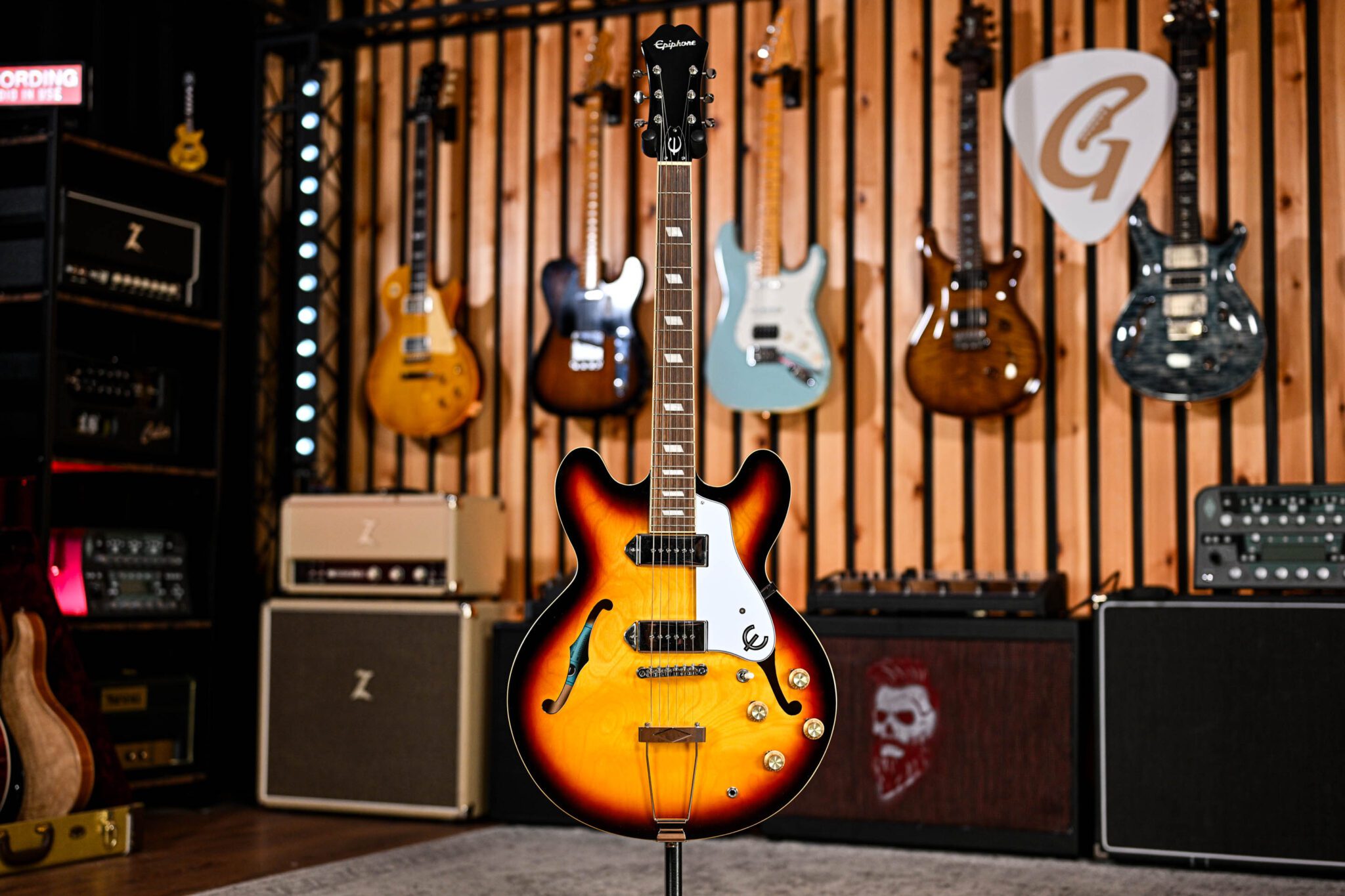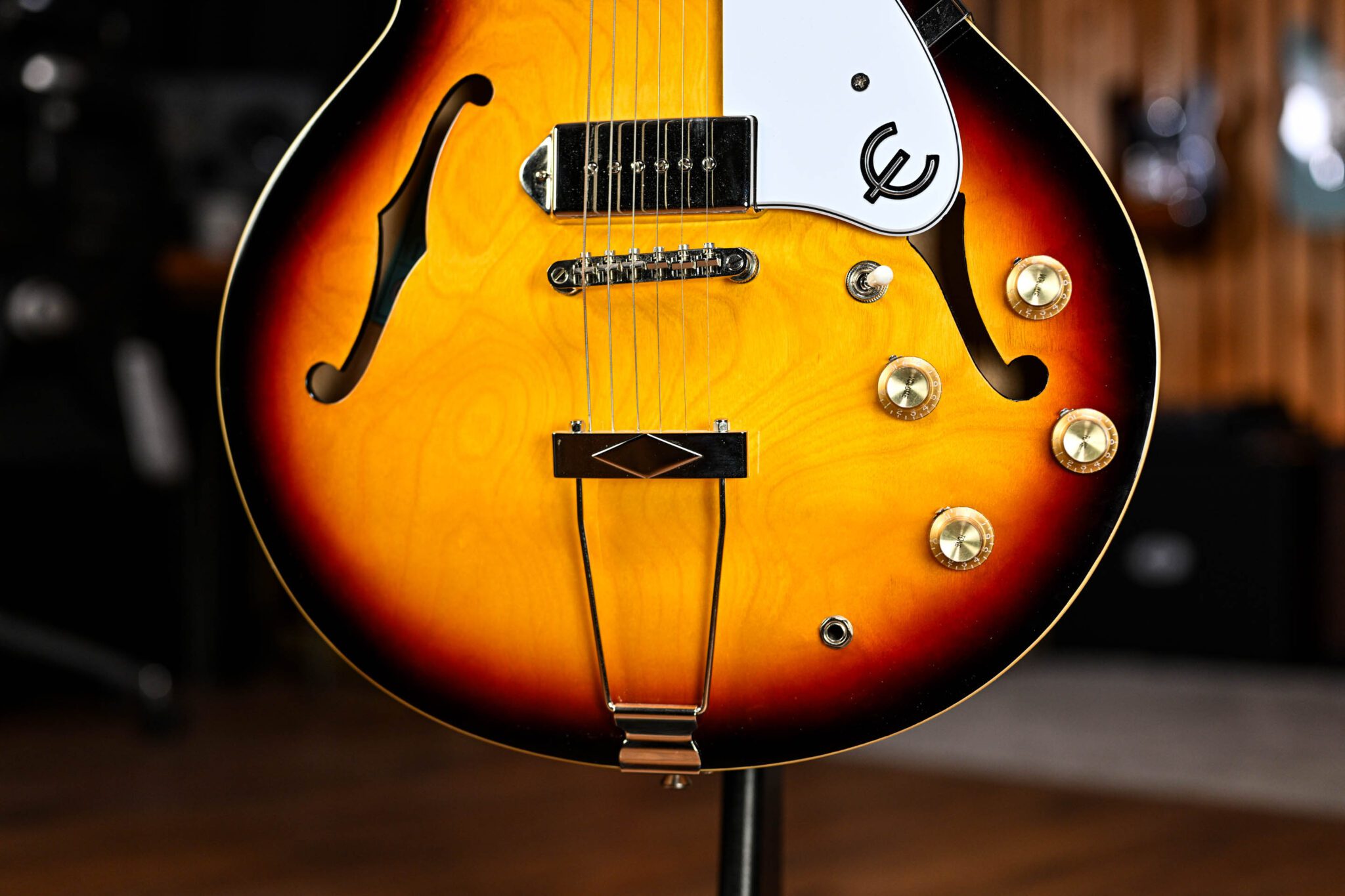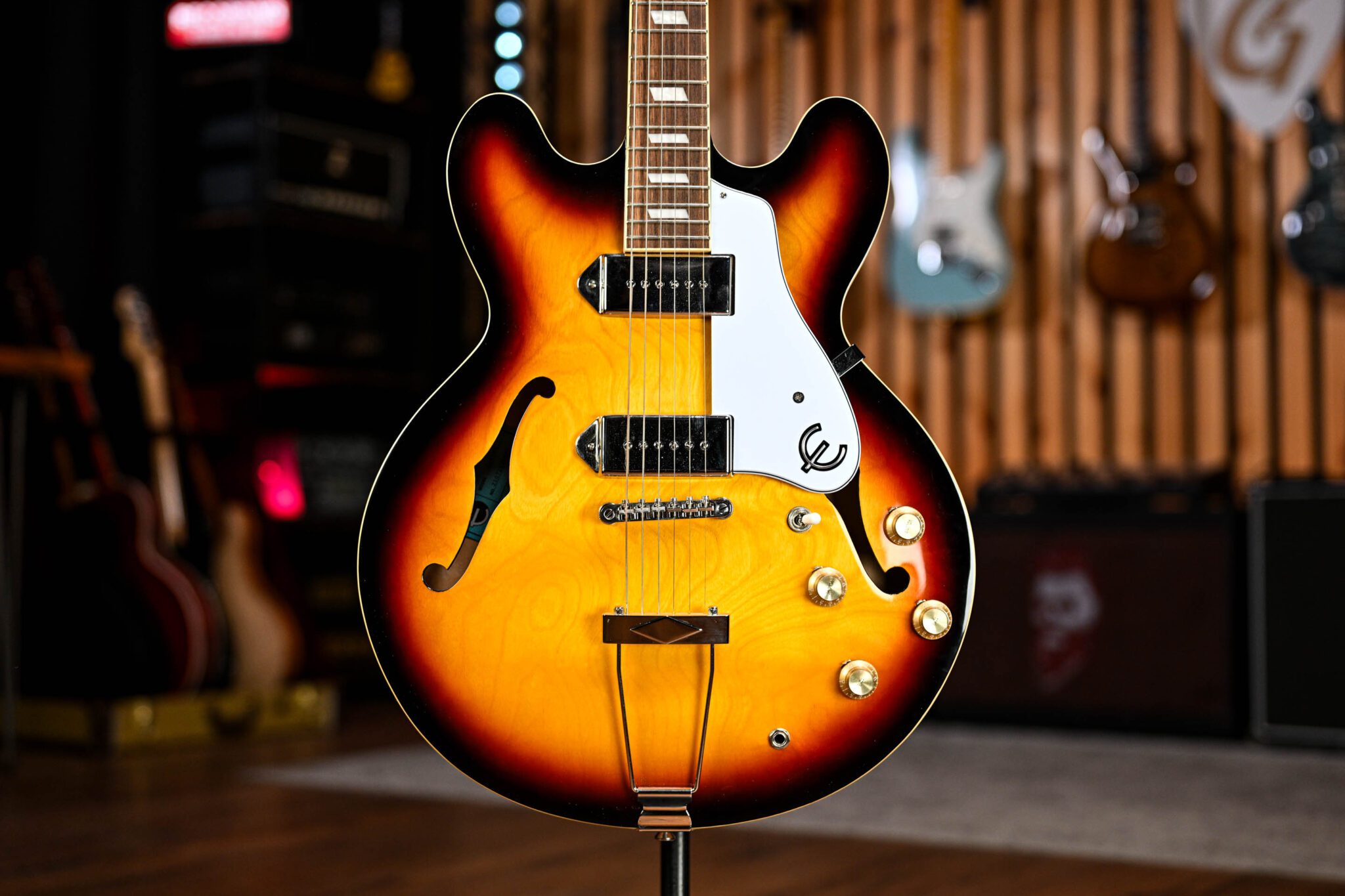 Since 1961, the Casino has been Epiphone’s best-selling archtop and a rock ‘n’ roll standard. Over the years it has been the choice of players including blues legend Howlin’ Wolf, Keith Richards of The Rolling Stones, and John Lennon, Paul McCartney and George Harrison of The Beatles. In classic Sunburst, this Casino features the classic design elements that make the model a legend, including a thin 5-ply maple hollow body, two Dogear P-90 pickups and a mahogany neck with a 60s C profile.