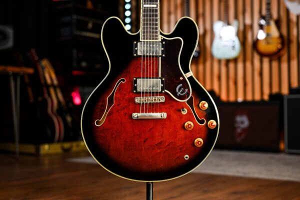 The most eye-catching feature of the Futura series is the colour shift finishes, which drastically change colour depending on the lighting and angle you look at the guitar. Having a finish like this on a guitar at this price point isn’t something you see every day! This guitar looks super stylish and really does standout! At the heart of this guitar is a pair of Epiphone’s new ProBucker Ignite pickups, which are designed to deliver powerful tones with great clarity and definition. With the onboard controls, you have access to both coil splitting and phase options, giving you loads of fun tones to play with. It also features a LockTone Tune-O-Matic bridge, and a set of Grover Rotomatic locking tuners.
