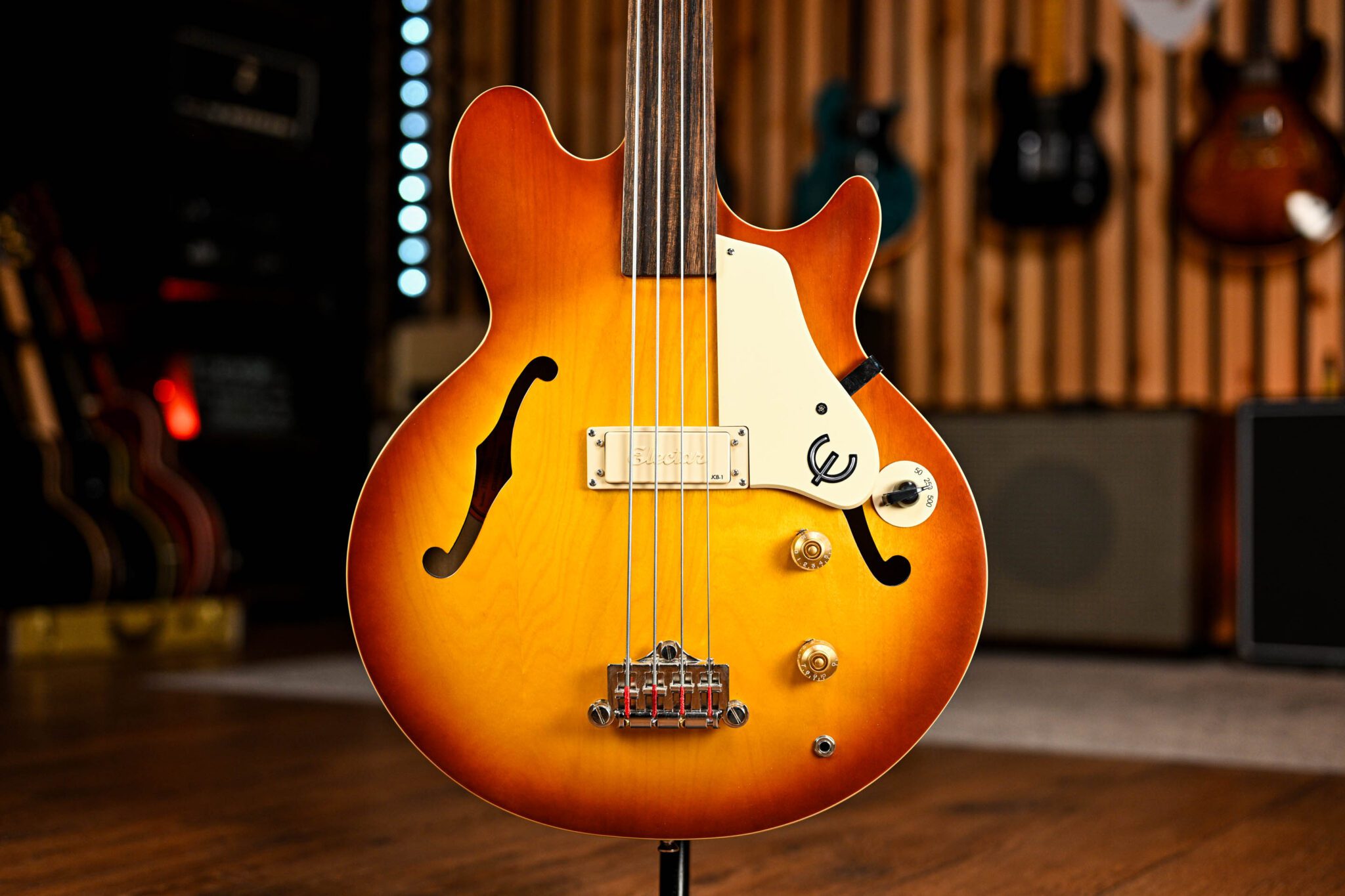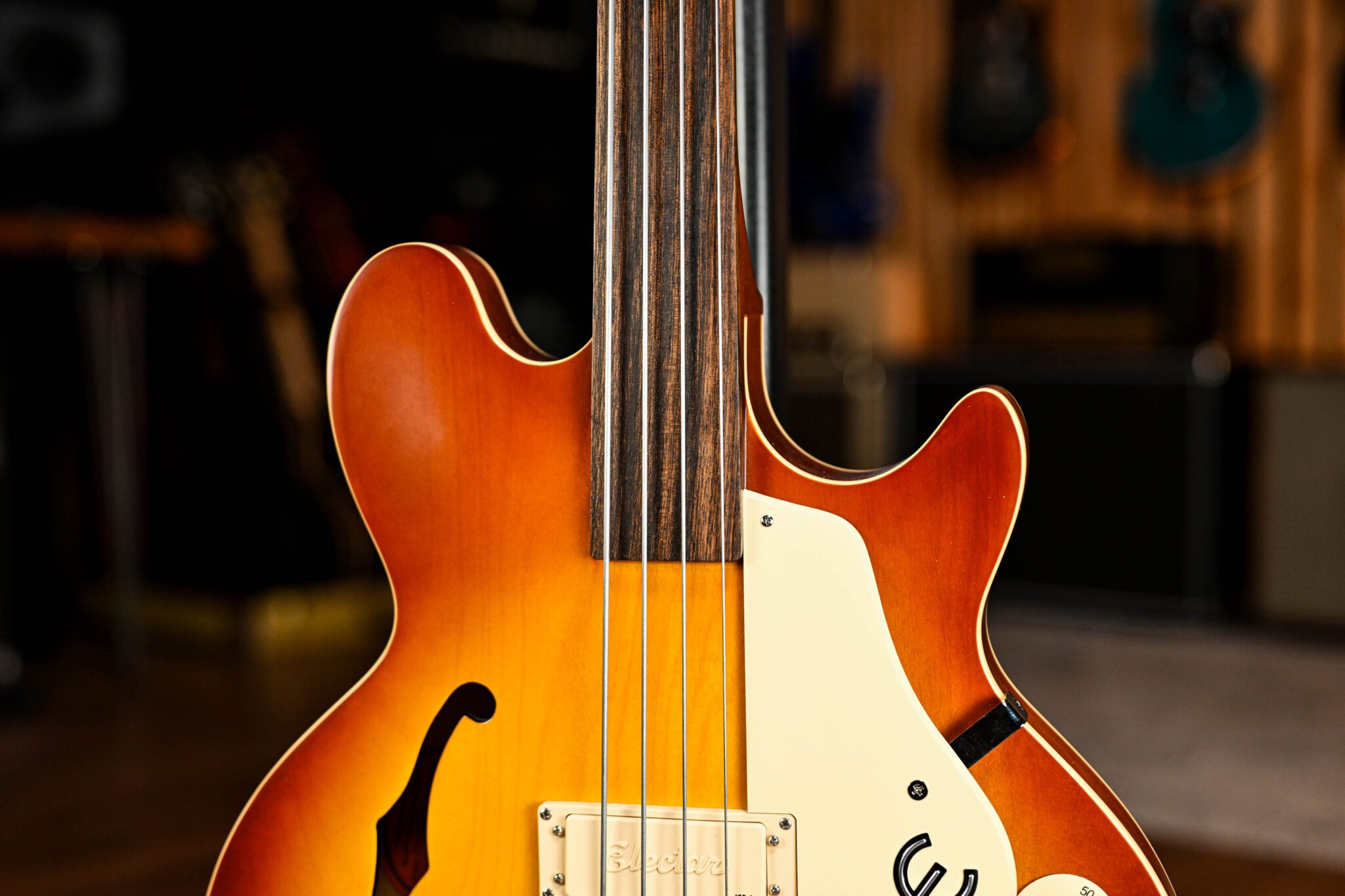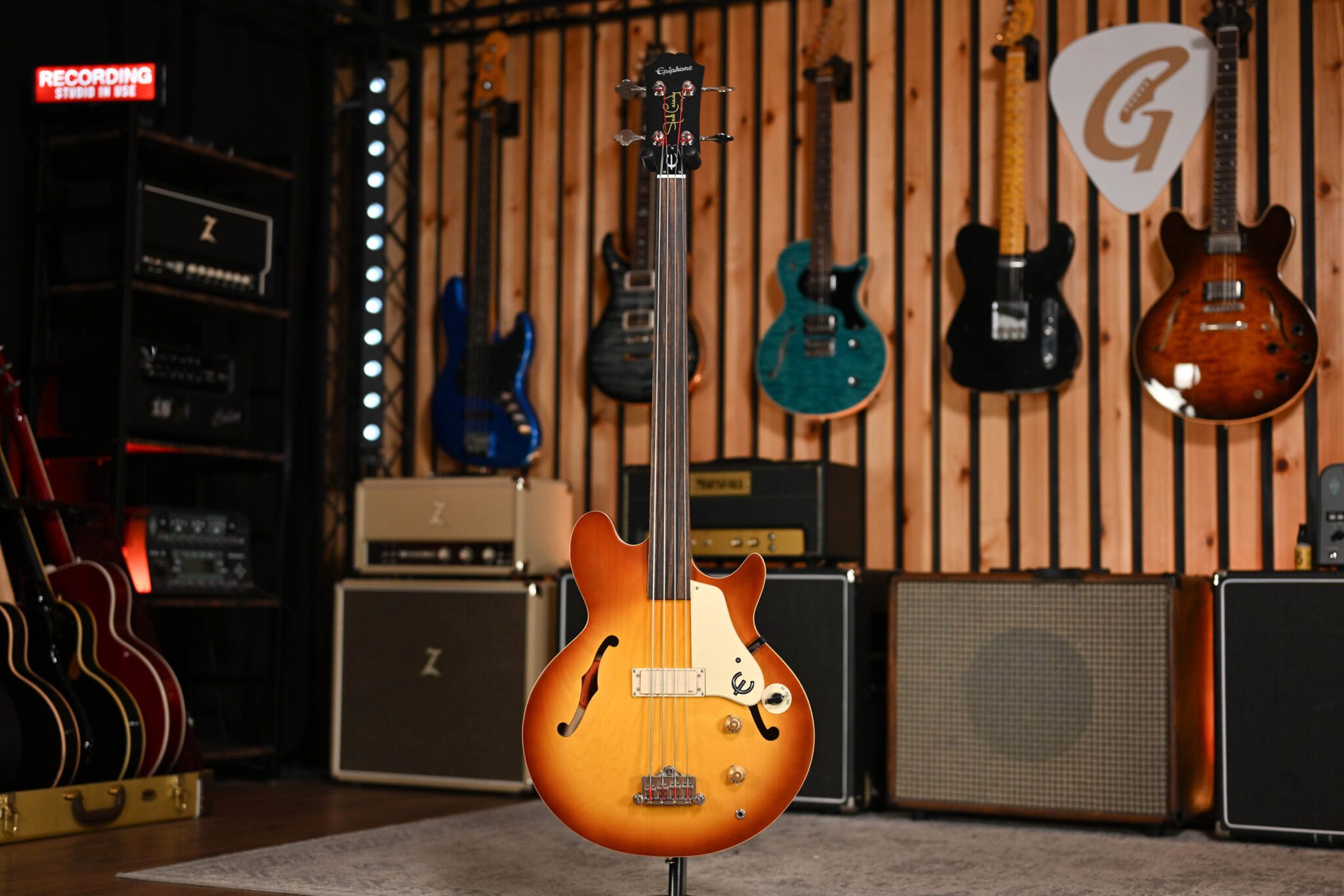 The Epiphone Jack Casady Fretless Bass is a unique semi-hollow instrument that blends vintage tone with smooth, expressive fretless playability. Featuring a lightweight maple body, signature low-impedance humbucker, and rich, woody resonance, it delivers warm, singing sustain and incredible dynamic response—perfect for players seeking both classic vibe and modern versatility.