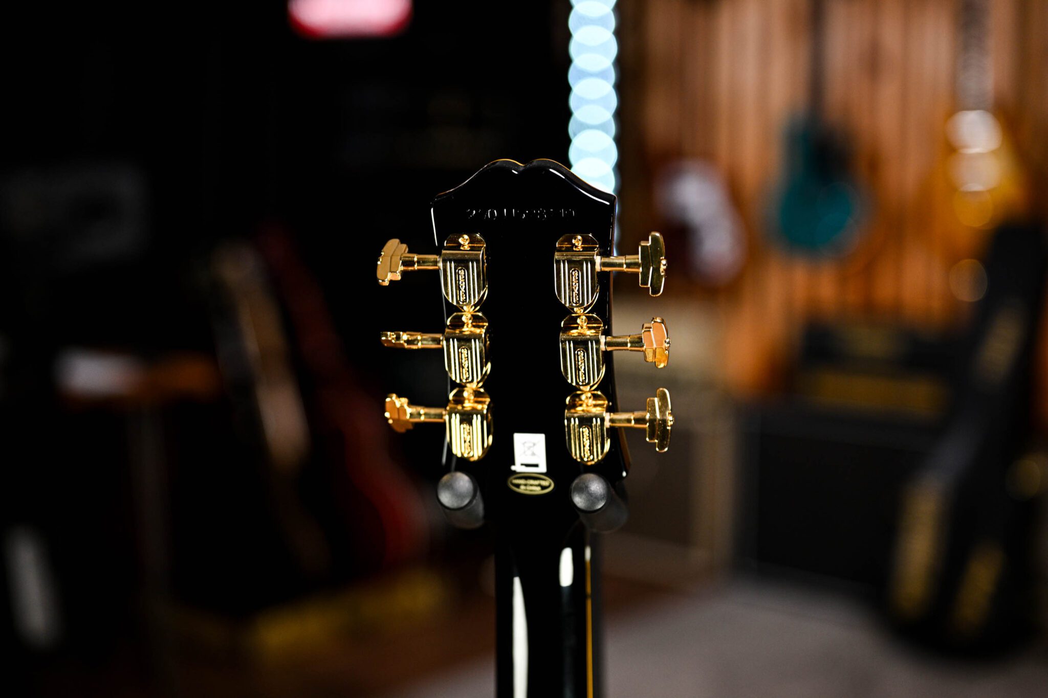 This Epiphone features a traditional and period correct all Mahogany body finished in Antique Ebony. The Mahogany neck sports a 1959 Rounded Medium C neck profile, which feels great in your hand.