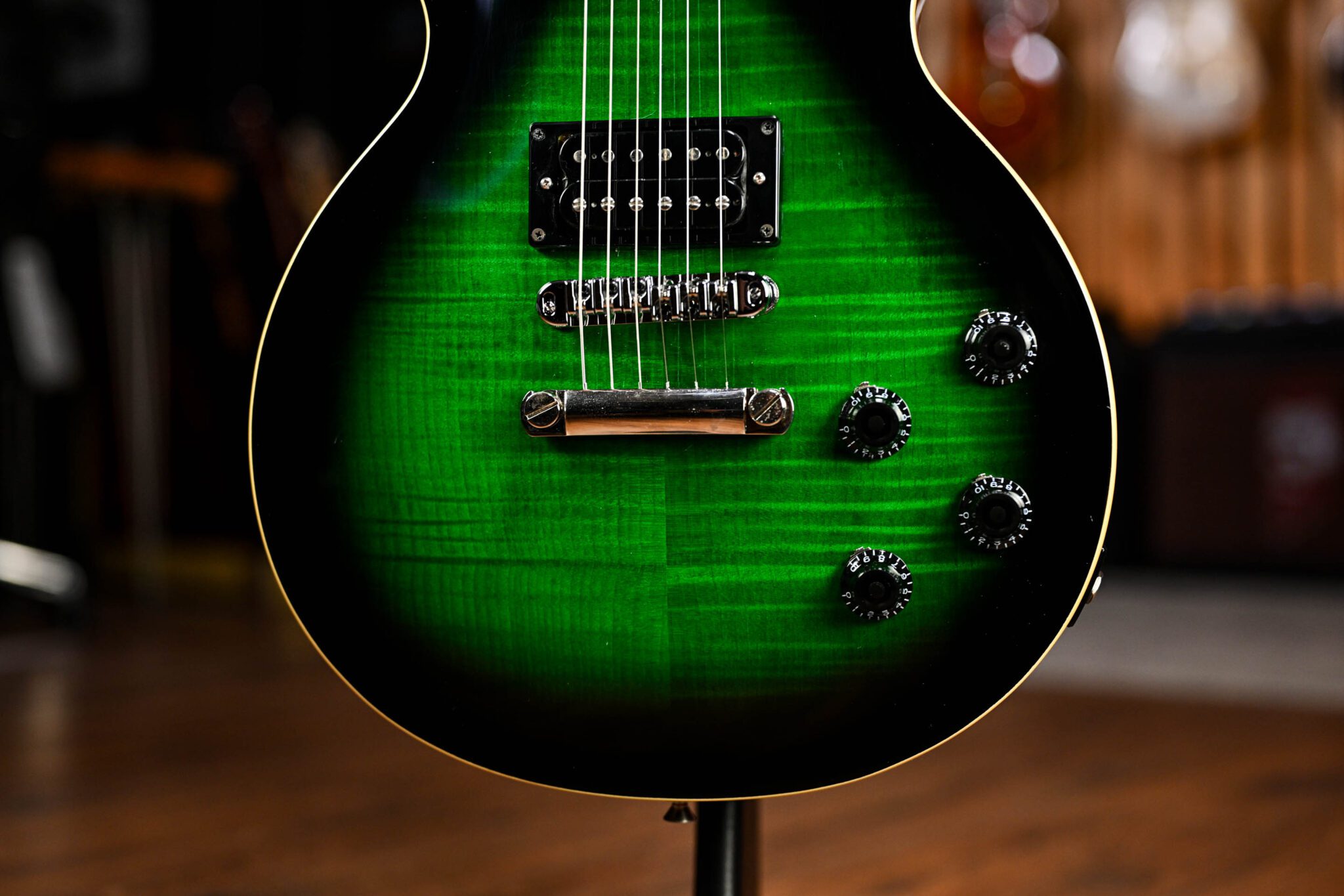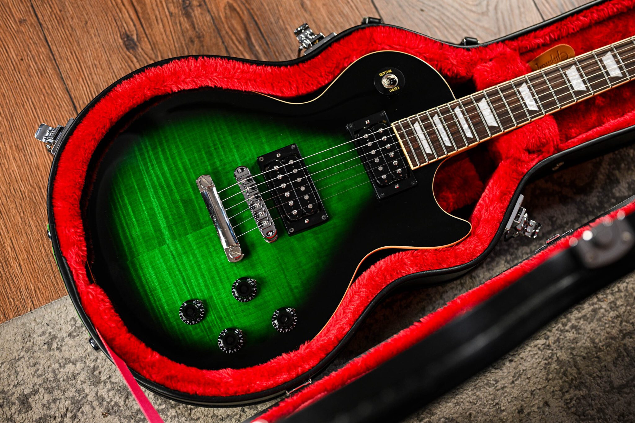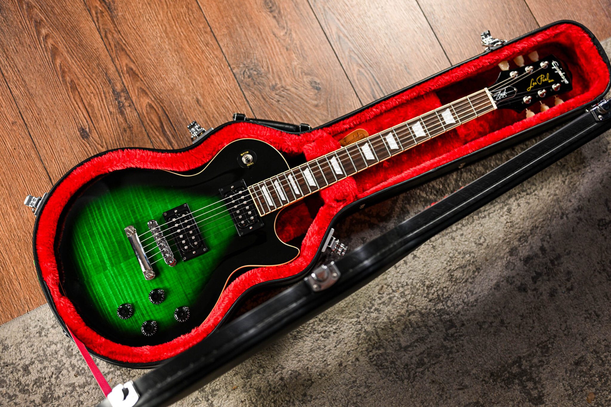 Featuring all the appointments the influential Guns N’ Roses guitarist preferred on his personal instruments. Wrapped in a green sunburst Finish with Slash’s “Skully” logo on the back of the headstock, the electric guitar comes in a classic set-neck design with a beefy neck profile and Custom ProBucker pickups for that signature Slashsound. Last but not least, indestructible Epiphone Hardware and a Custom hardshell case complete the Slash Les Paul Standard by Epiphone.