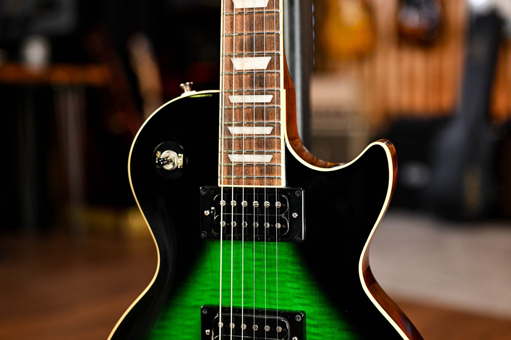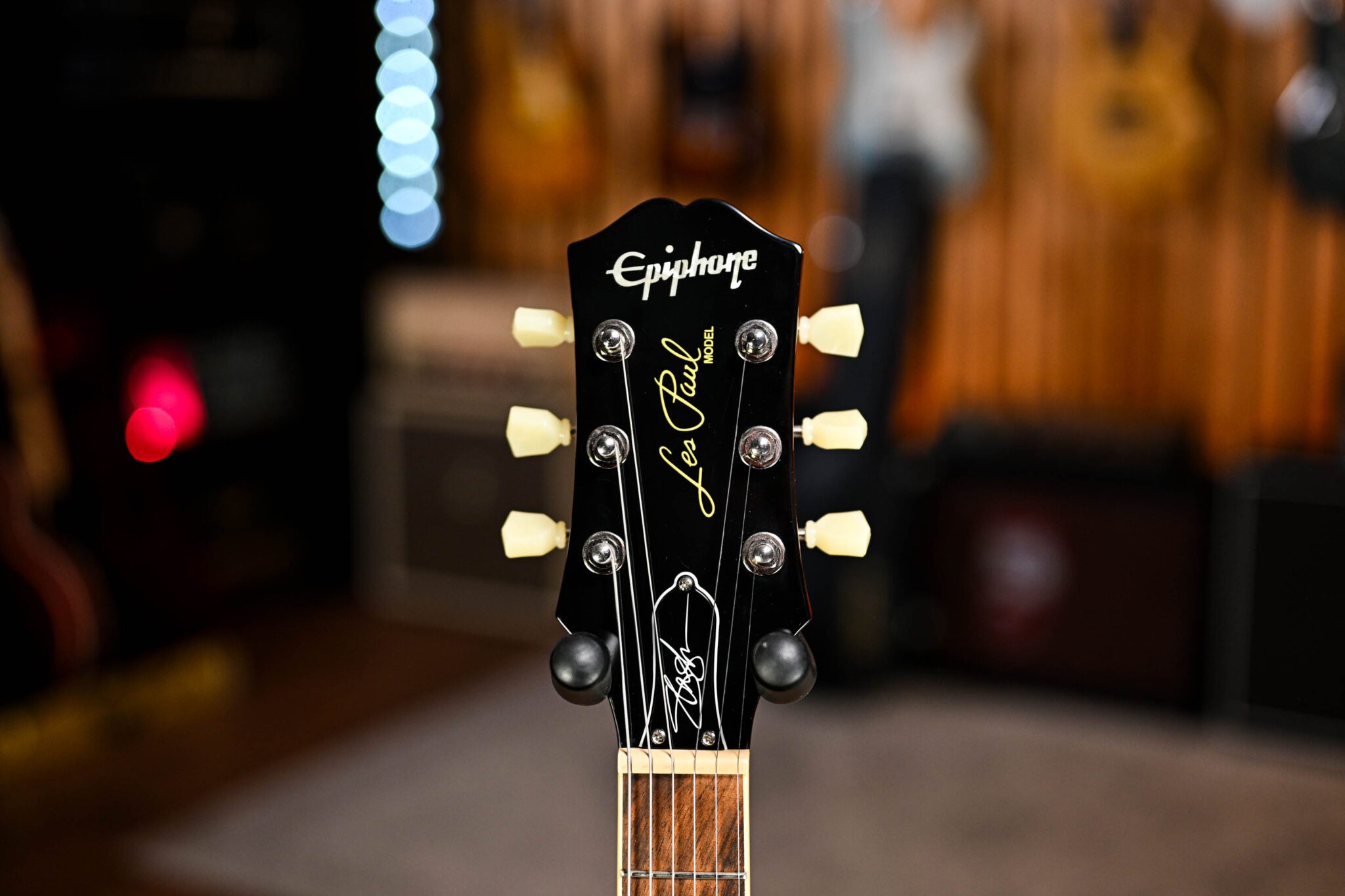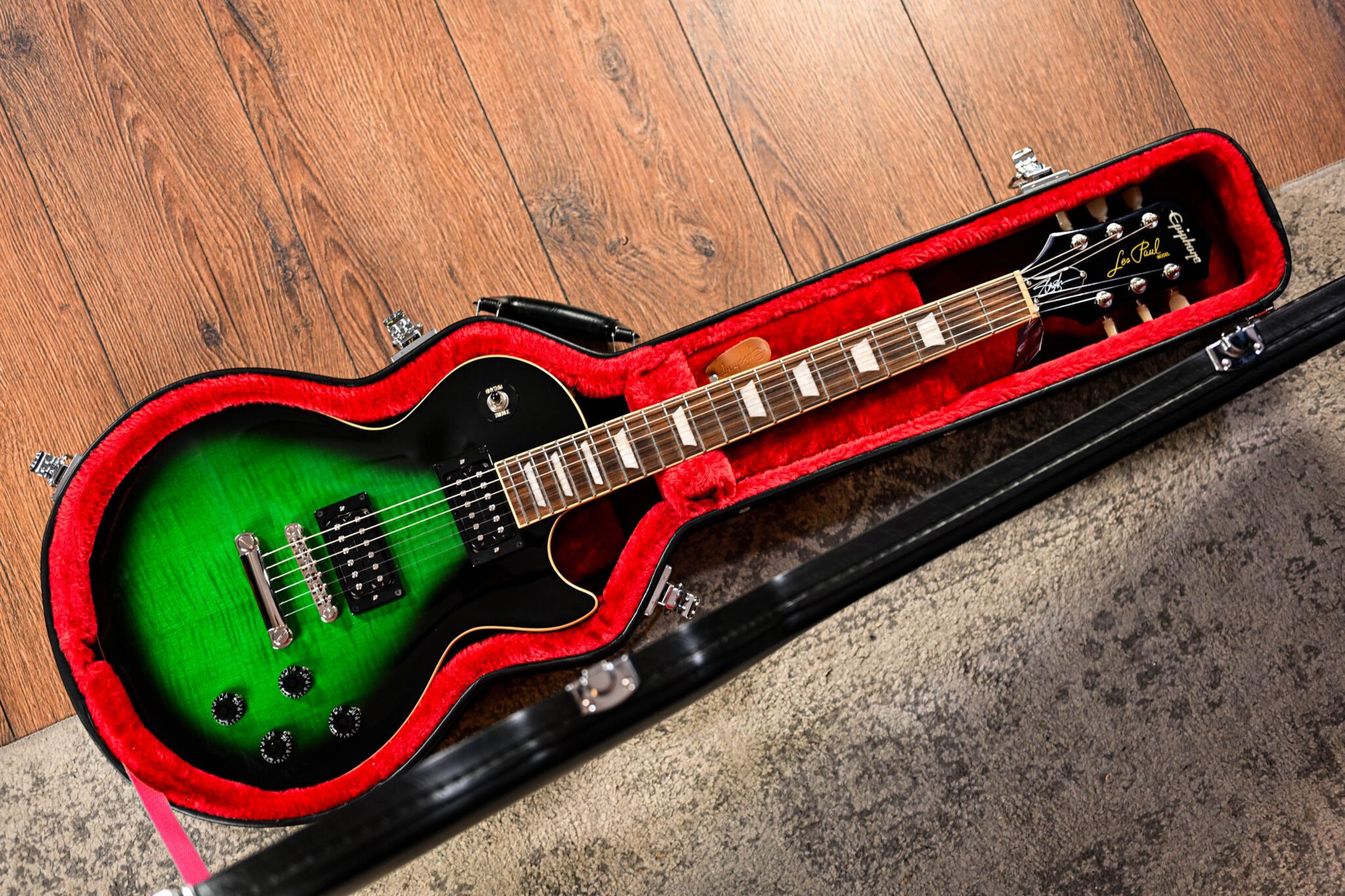 Featuring all the appointments the influential Guns N’ Roses guitarist preferred on his personal instruments. Wrapped in a green sunburst Finish with Slash’s “Skully” logo on the back of the headstock, the electric guitar comes in a classic set-neck design with a beefy neck profile and Custom ProBucker pickups for that signature Slashsound. Last but not least, indestructible Epiphone Hardware and a Custom hardshell case complete the Slash Les Paul Standard by Epiphone.