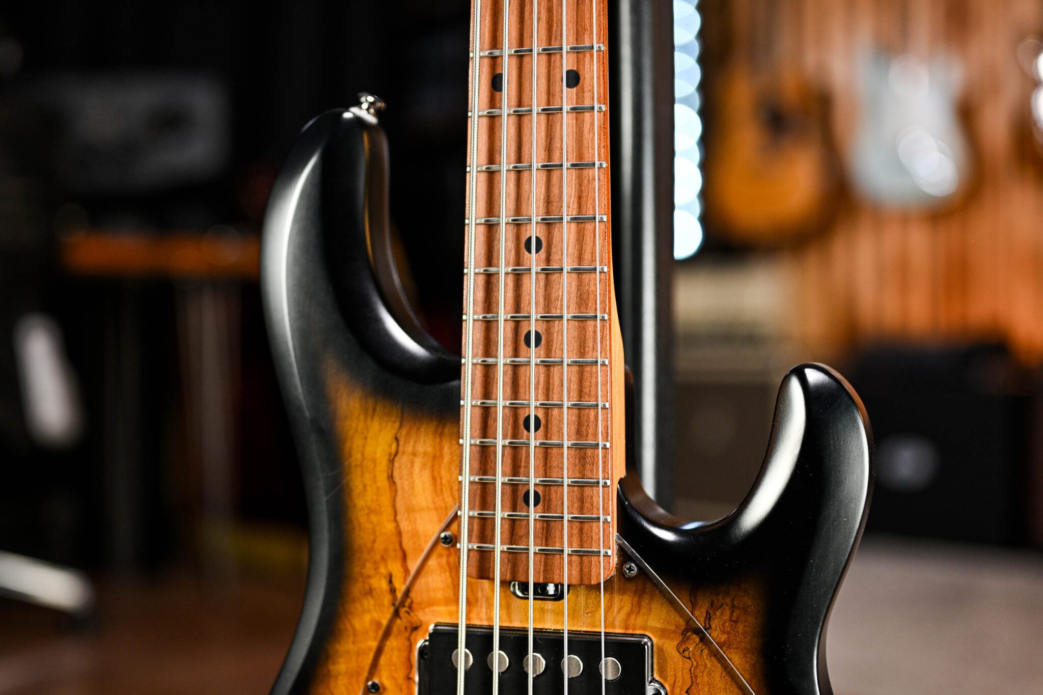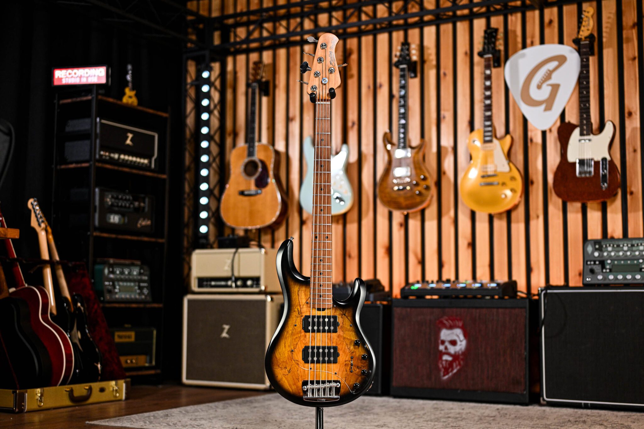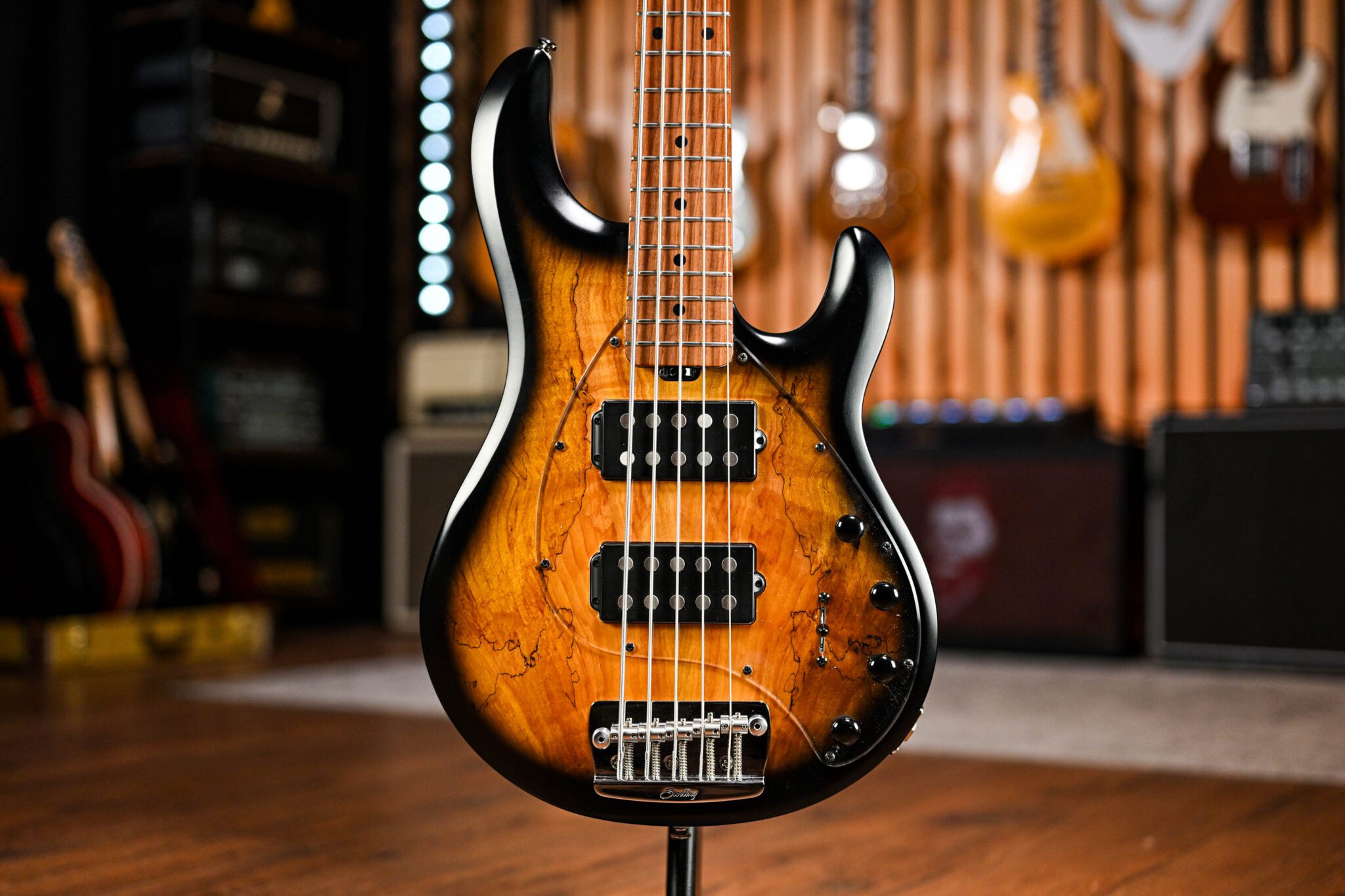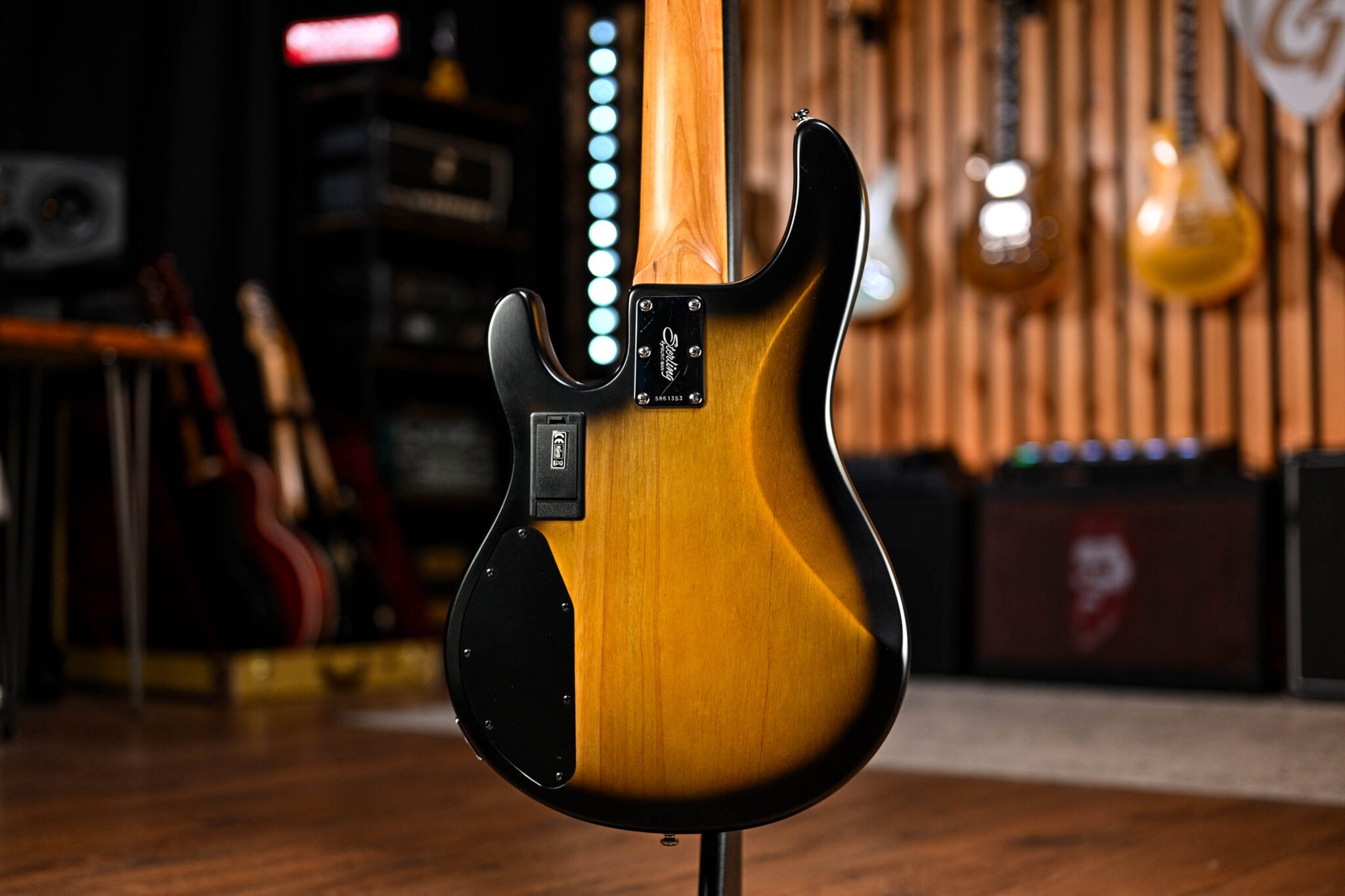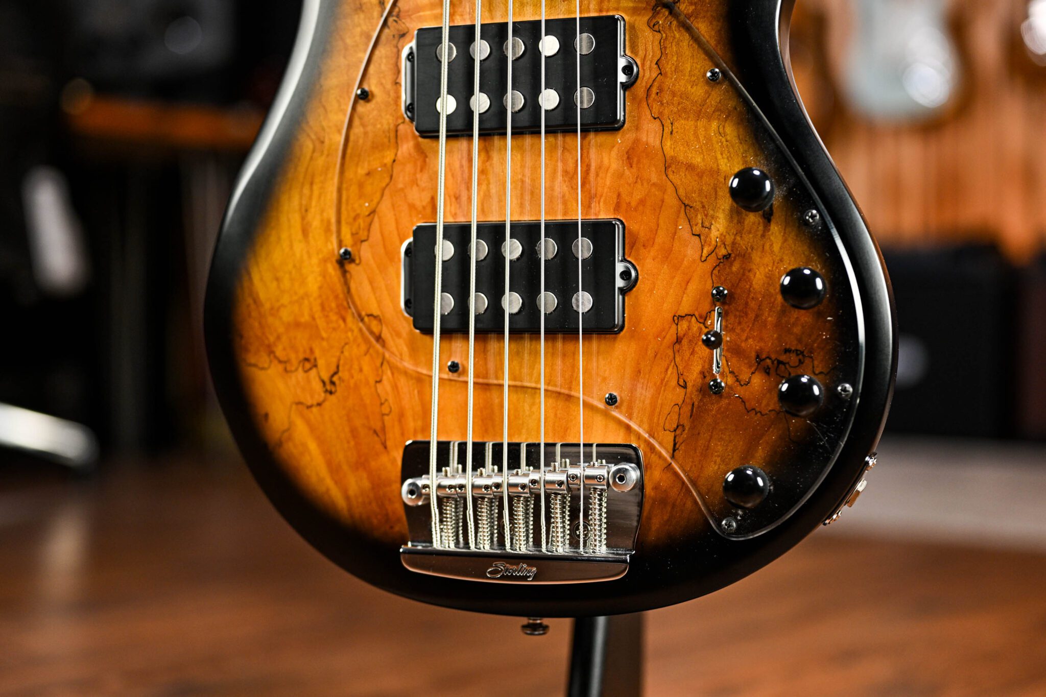 • Ernie Ball Music Man Sterling Stingray Ray35 HH in Three Tone Sunburst Satin Spalted Maple