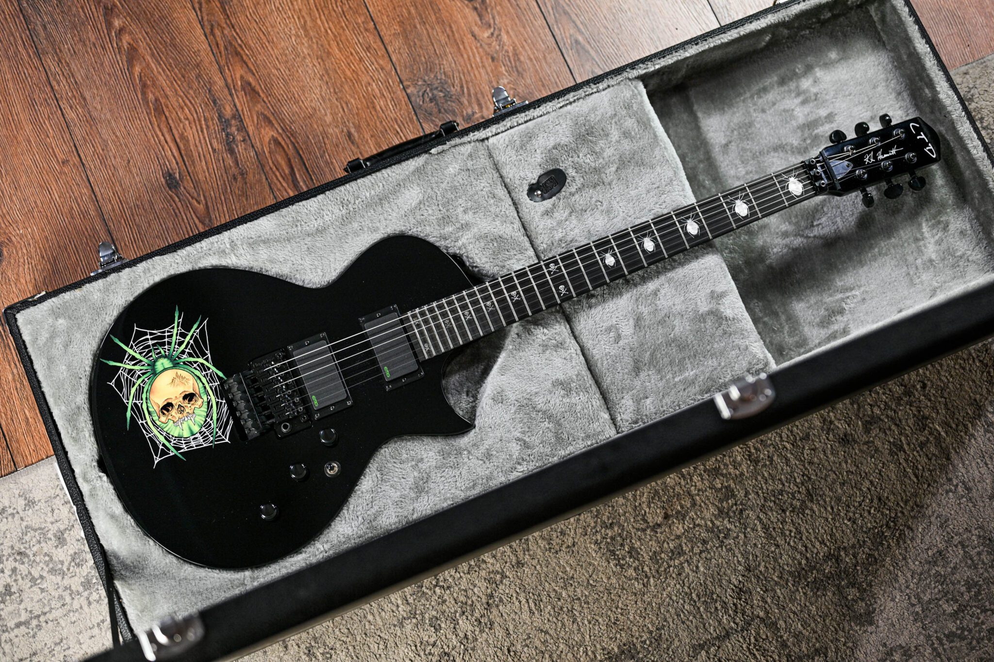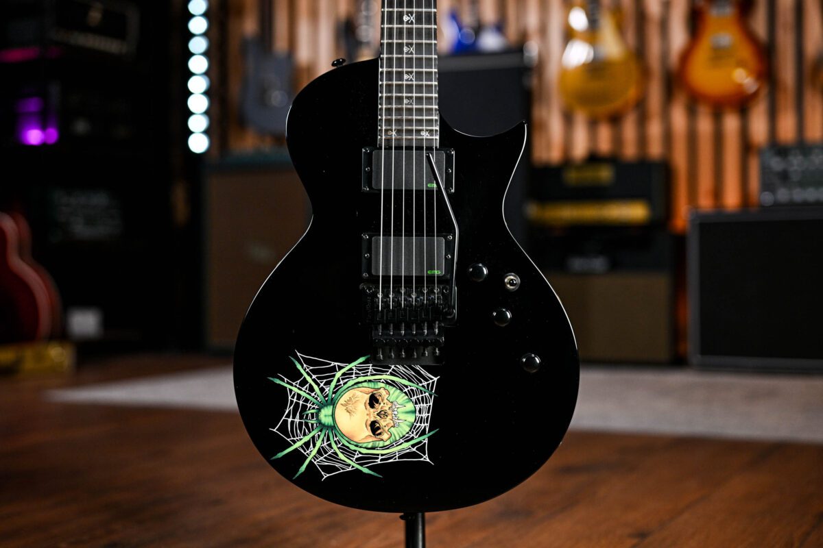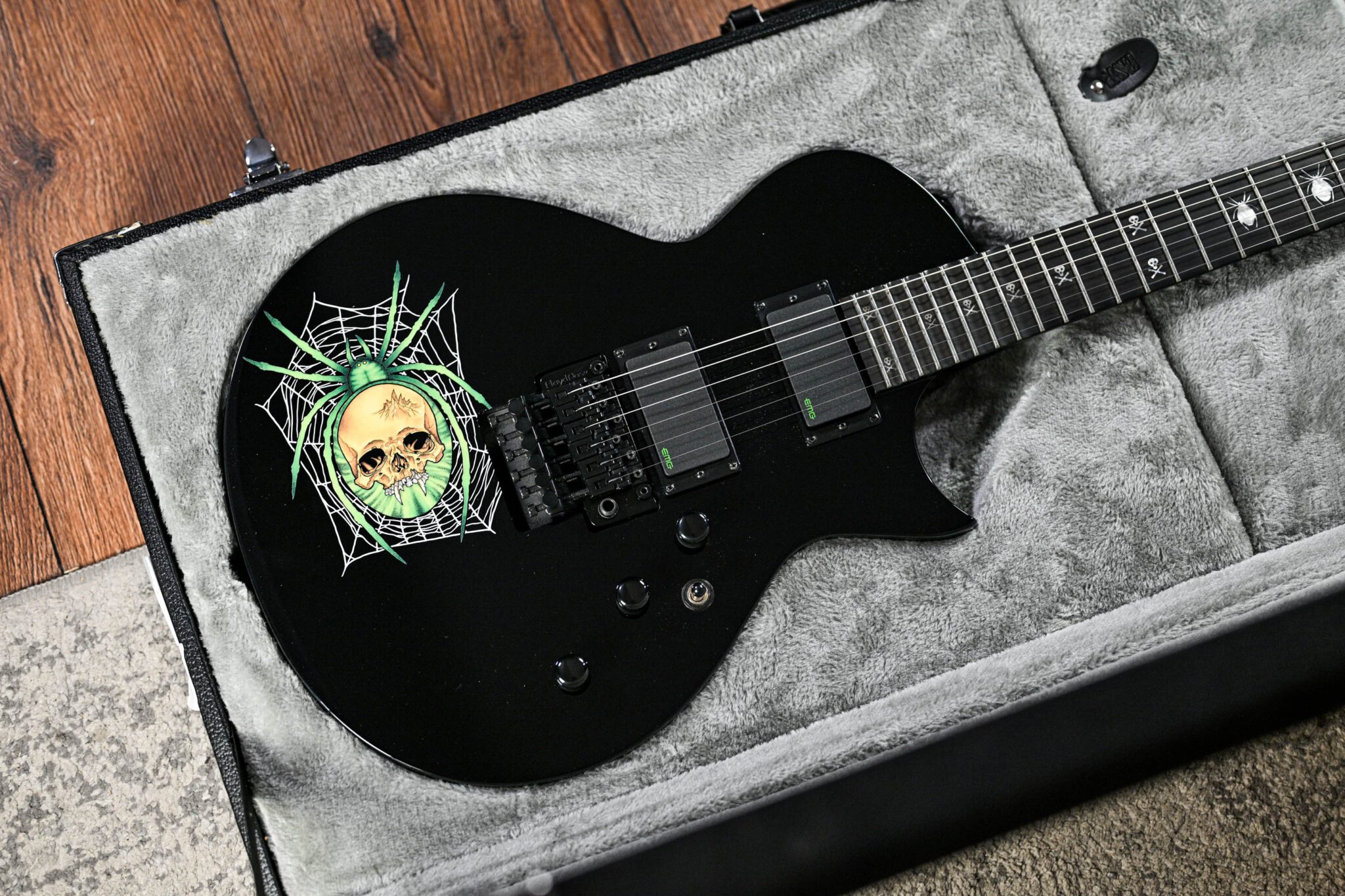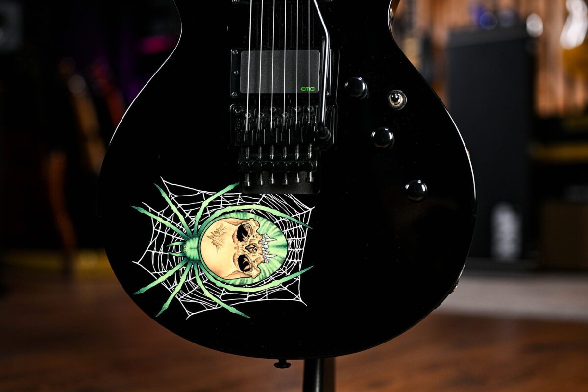 The KH-3 Spider is a dark, aggressive, and purpose-built shredder that nails Kirk Hammett’s tone and aesthetic. With the iconic Spider graphic, EMG pickups, and Floyd Rose system, this is as close to Metallica DNA as you can get! It is tight, fast, and absolutely screams with a dose of overdrive with the EMG pickup combo delivering that tight low-end crunch and soaring sustain!
