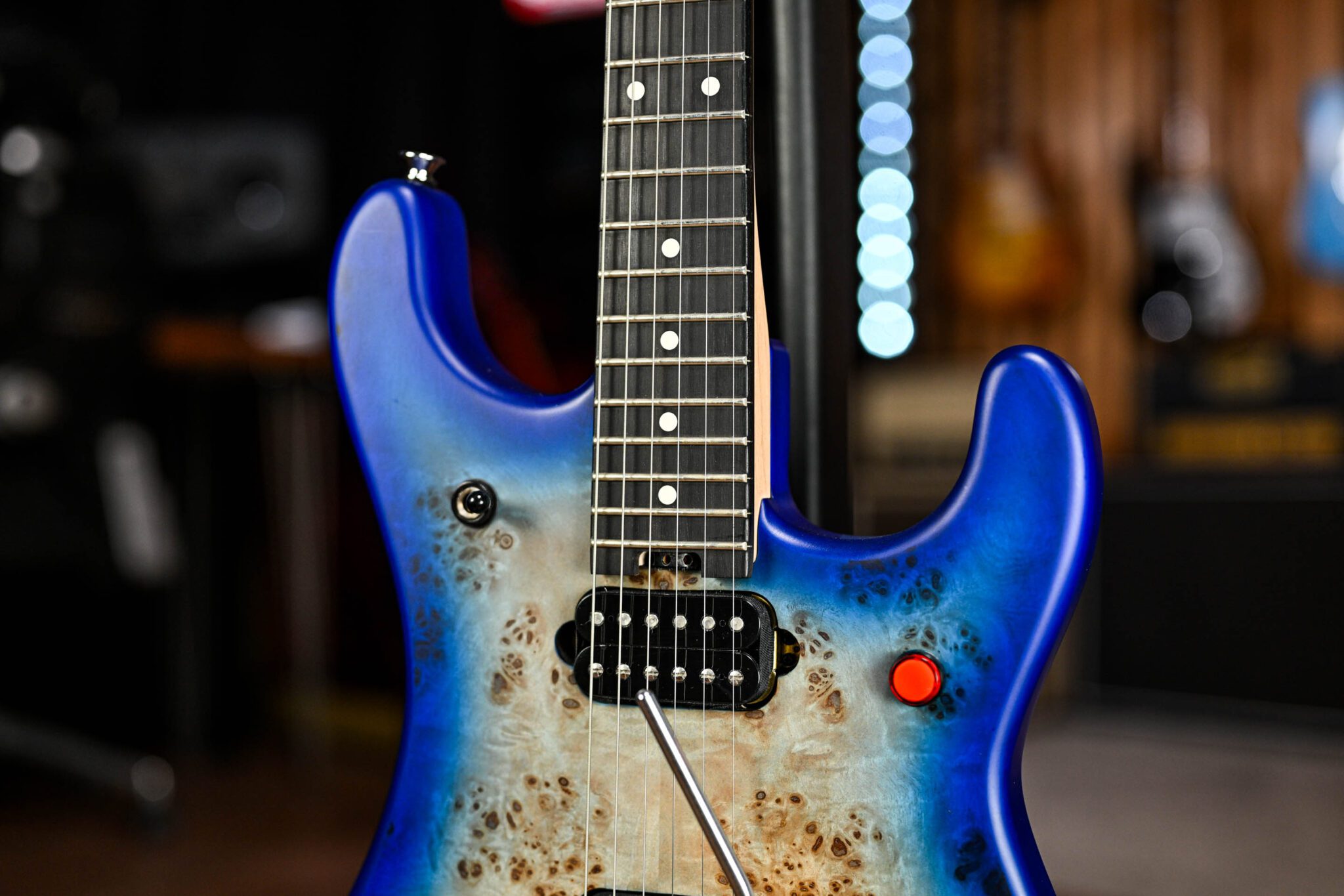 While the famed striped original had a single humbucking bridge pickup only, the all-new 5150 is outfitted with an HH pickup configuration controlled by a three-way toggle switch on the upper bout. The custom-designed EVH Wolfgang Alnico 2 humbucking bridge pickup delivers the perfect amount of punch and articulation with sweet sustain and thick chunky rhythms in a perfectly balanced EQ curve.