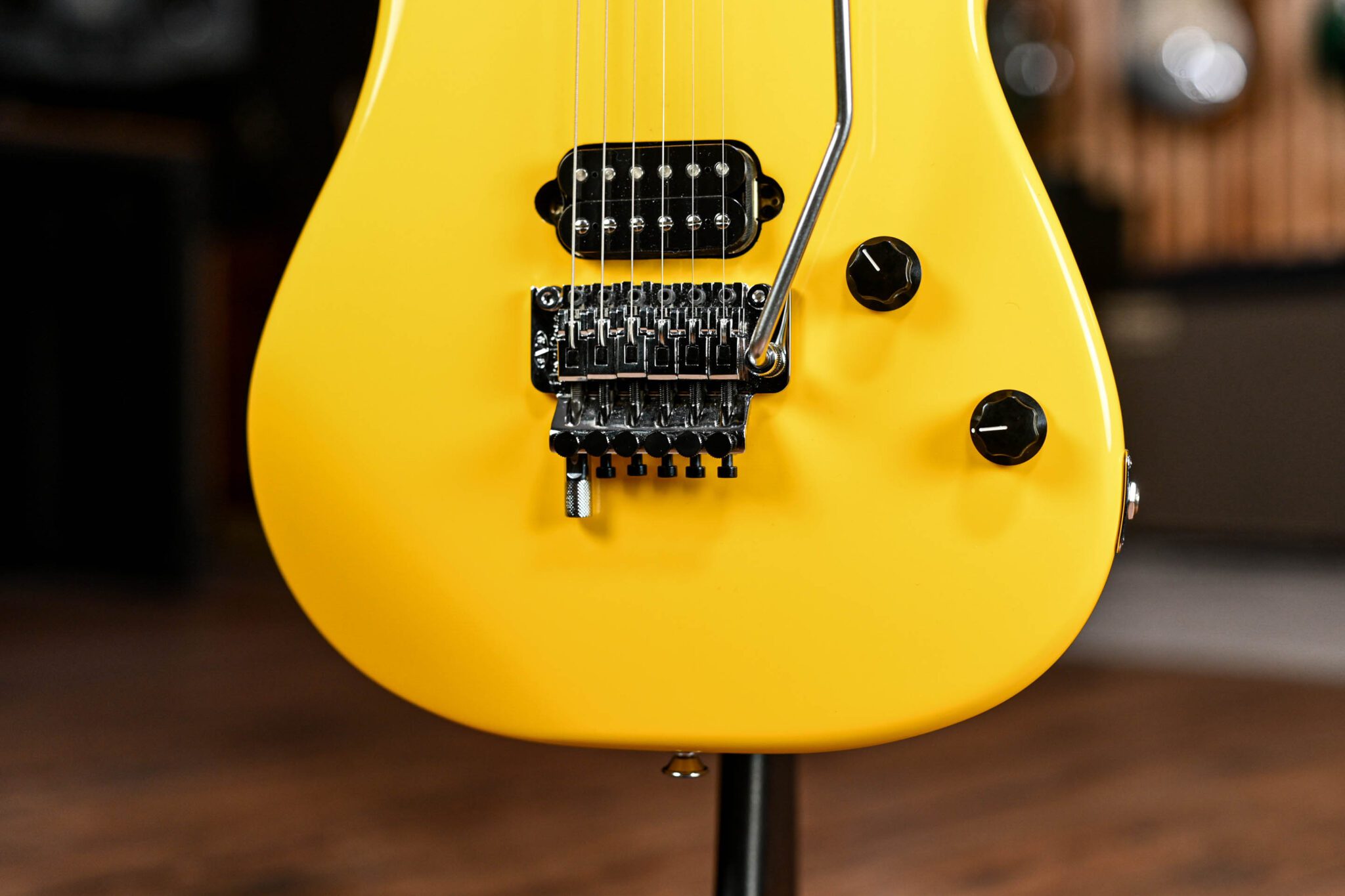 Like its predecessor, the 5150 Standard features a modified Strat-style Basswood body with a deeper upper body curve. The graphite-reinforced bolt-on quartersawn Maple neck features a comfortable modified “C” profile, hand-rubbed satin urethane back finish, heel-mount truss rod adjustment wheel and colour-matched “hockey stick” headstock with EVH logo decal.