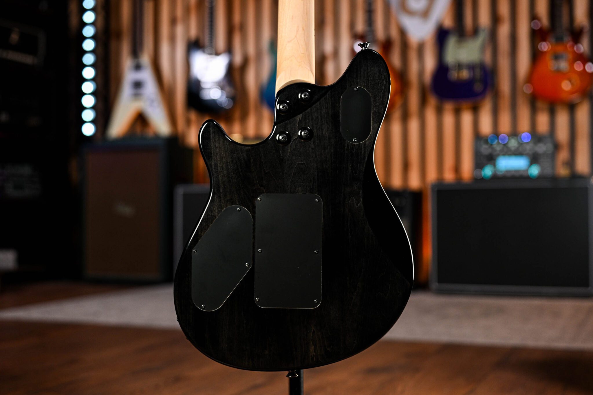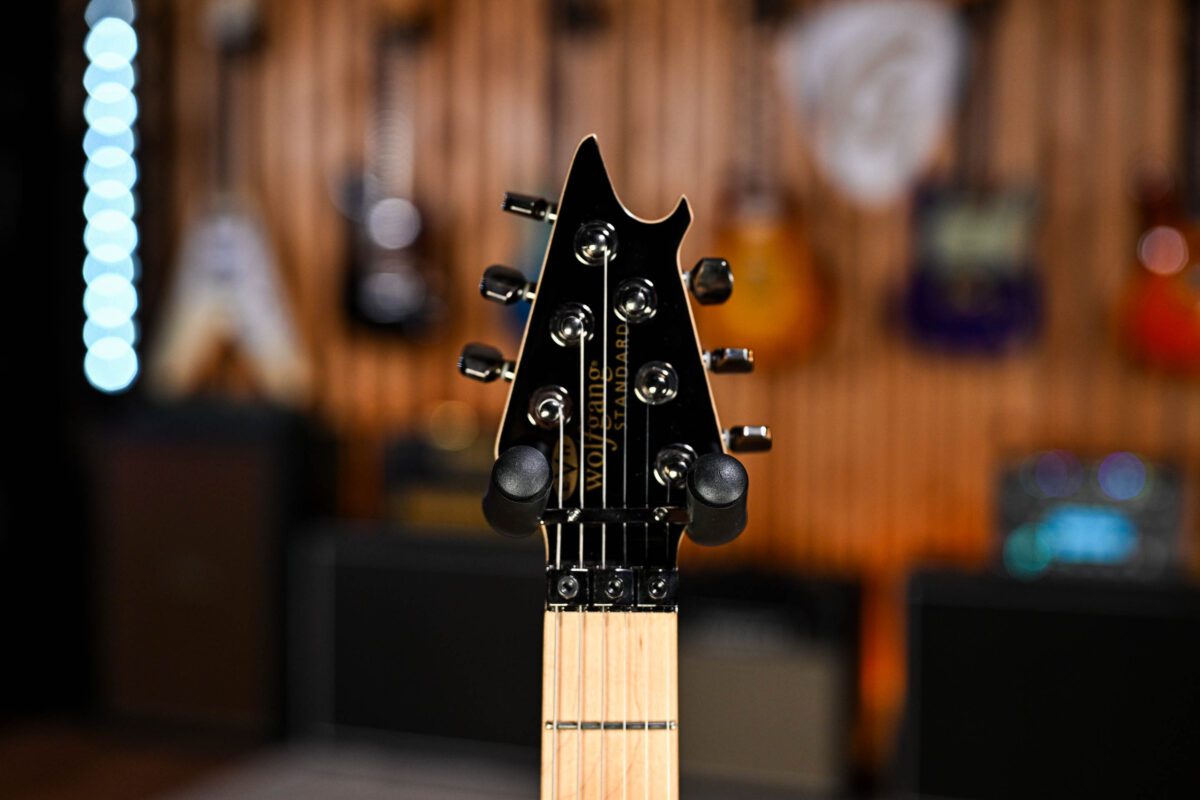 The excellent Wolfgang Standard benefits from a body cut with comfort and performance in mind, maple neck with graphite reinforcement rods ensuring things stay in place when things get serious and quick truss rod adjustments are made possible by the spoke wheel at the base of the neck. Dual EVH Wolfgang humbucking pickups mounted directly to the body ensure every bit of that huge tone and sustain directly from the body straight into your amp and we love it!