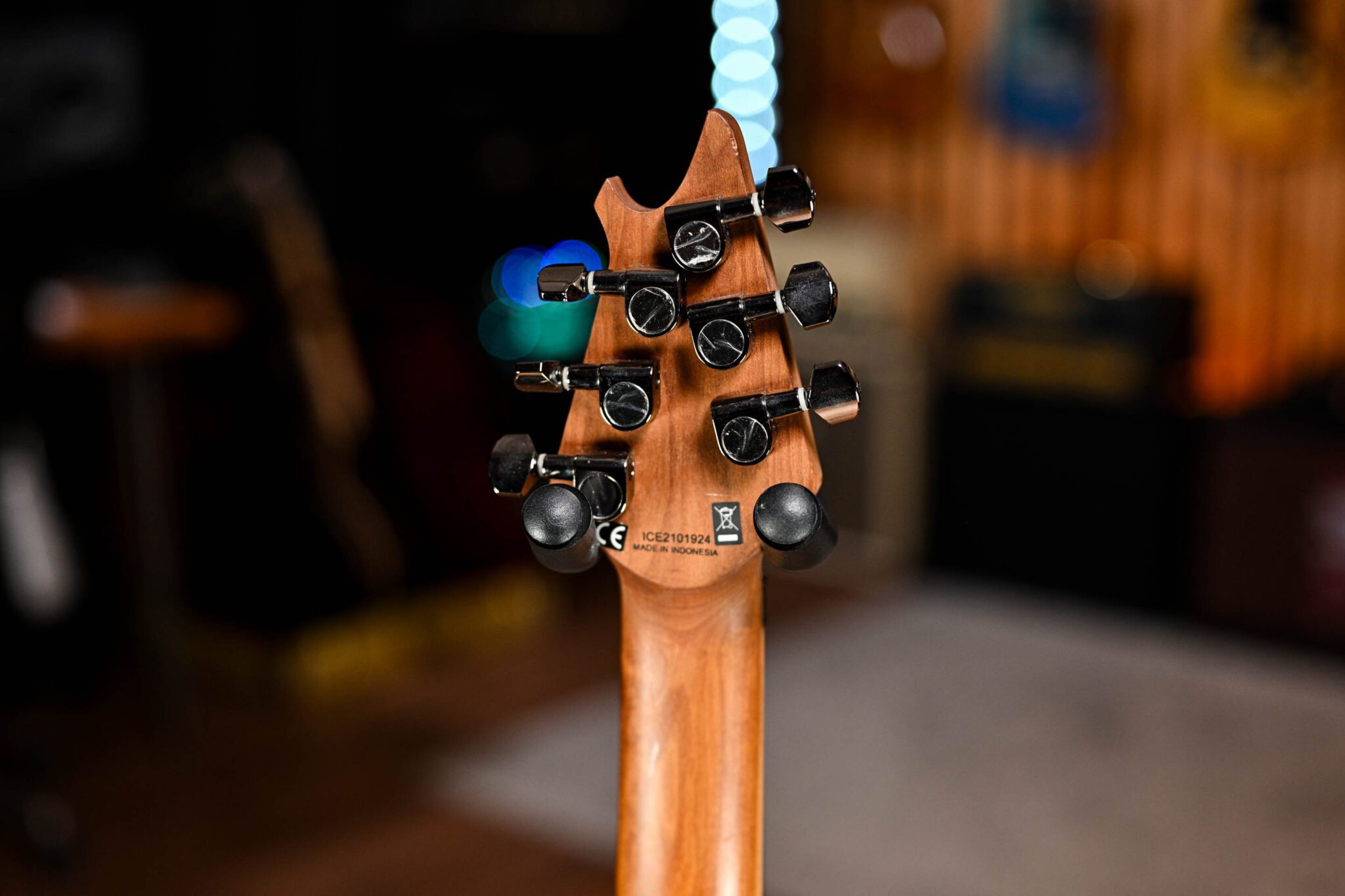 The excellent Wolfgang Standard benefits from a basswood body cut with comfort and performance in mind, baked maple neck with graphite reinforcement rods ensuring things stay in place when things get serious while quick truss rod adjustments are made possible by the spoke wheel at the base of the neck. Dual EVH Wolfgang humbucking pickups mounted directly to the body ensure every bit of that huge tone and sustain directly from the body straight into your amp and we love it!