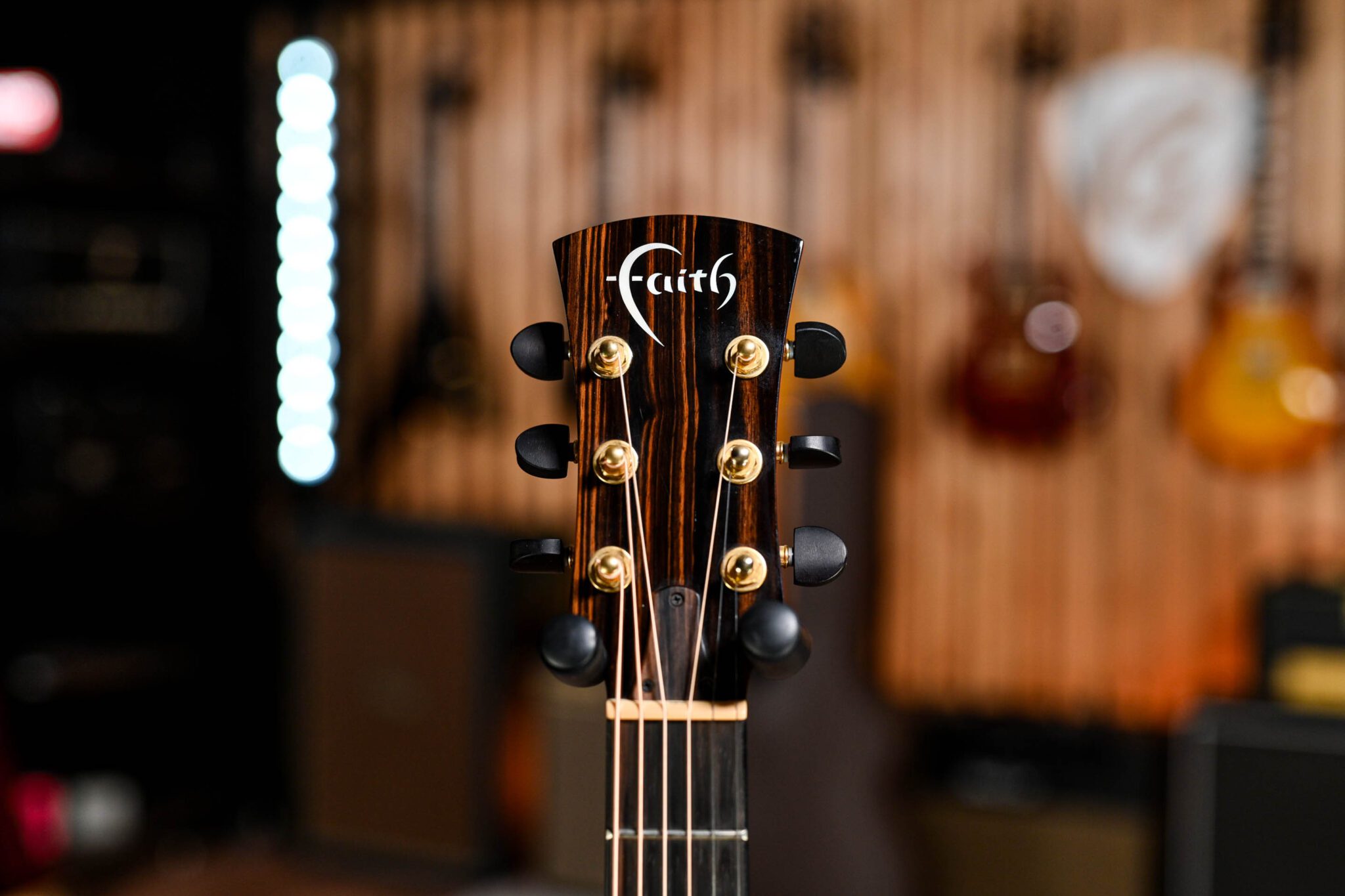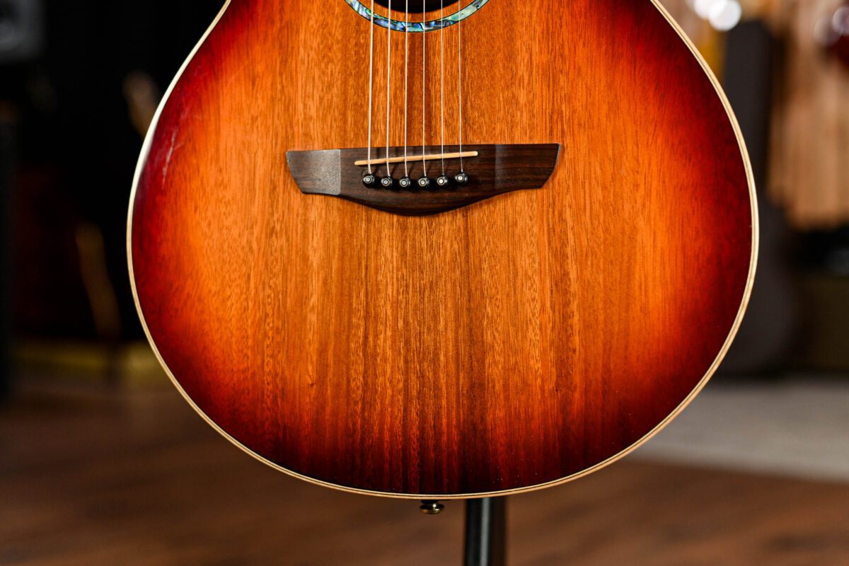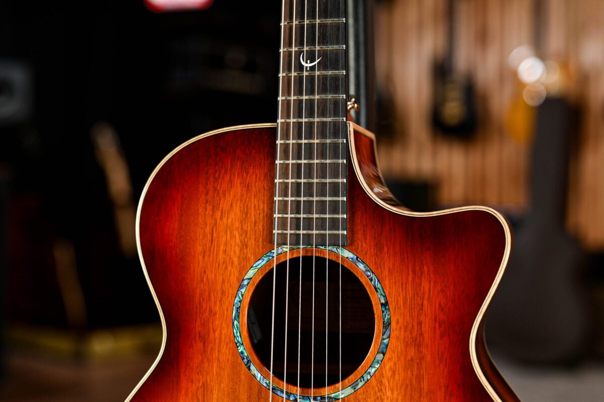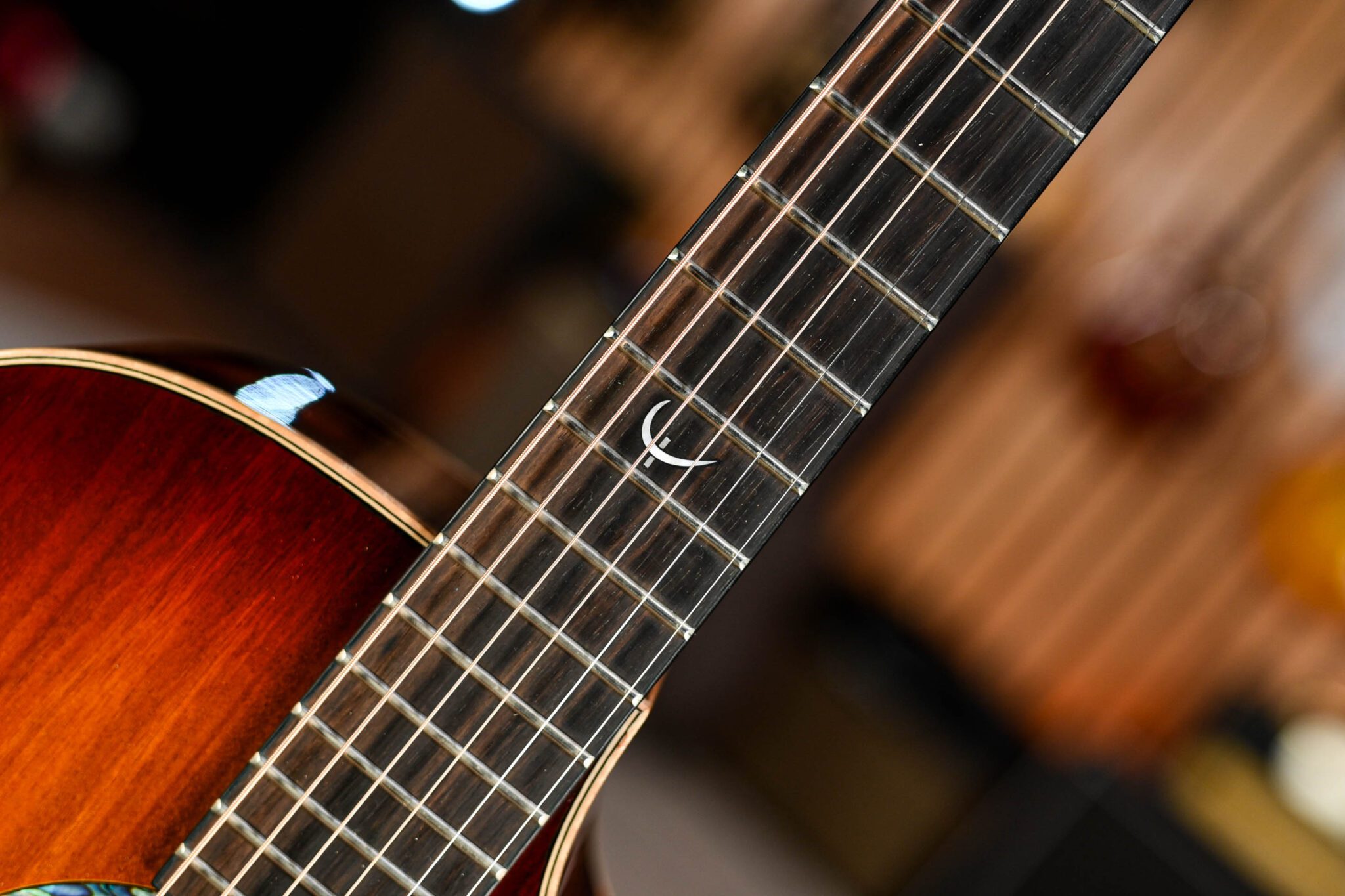 The Faith Venus Blood Moon is a visually stunning and tonally rich electro-acoustic guitar that blends world-class craftsmanship with dramatic beauty. Featuring a solid figured trembesi top, back, and sides. The guitar delivers a balanced, powerful voice, that shines through whether fingerpicked or strummed.