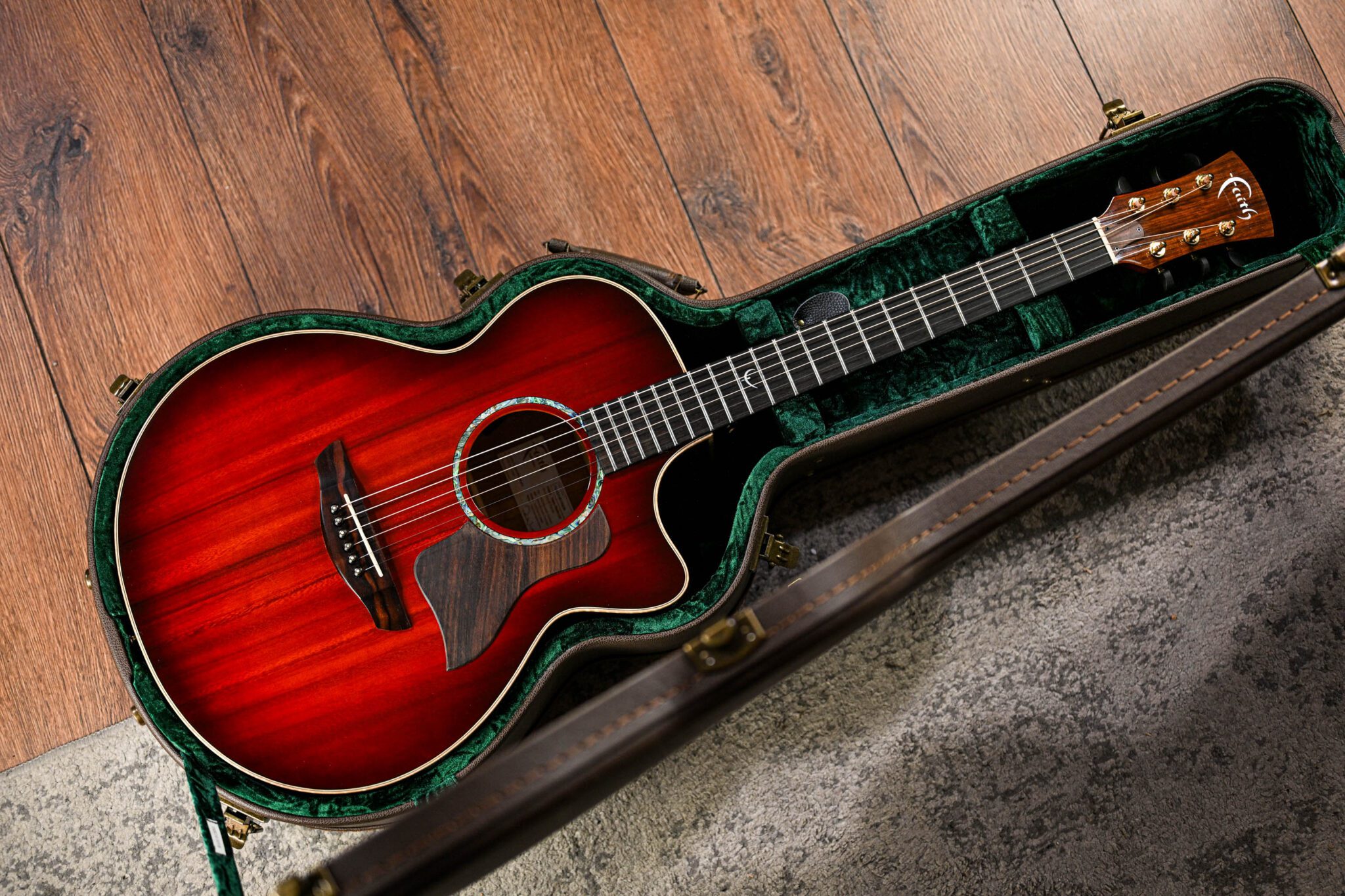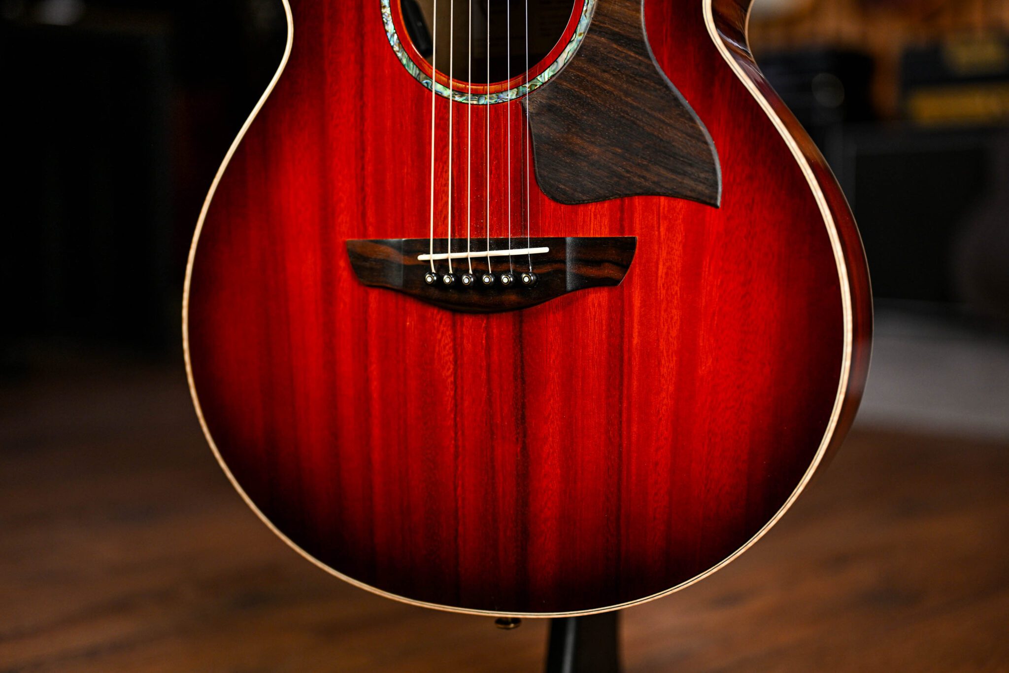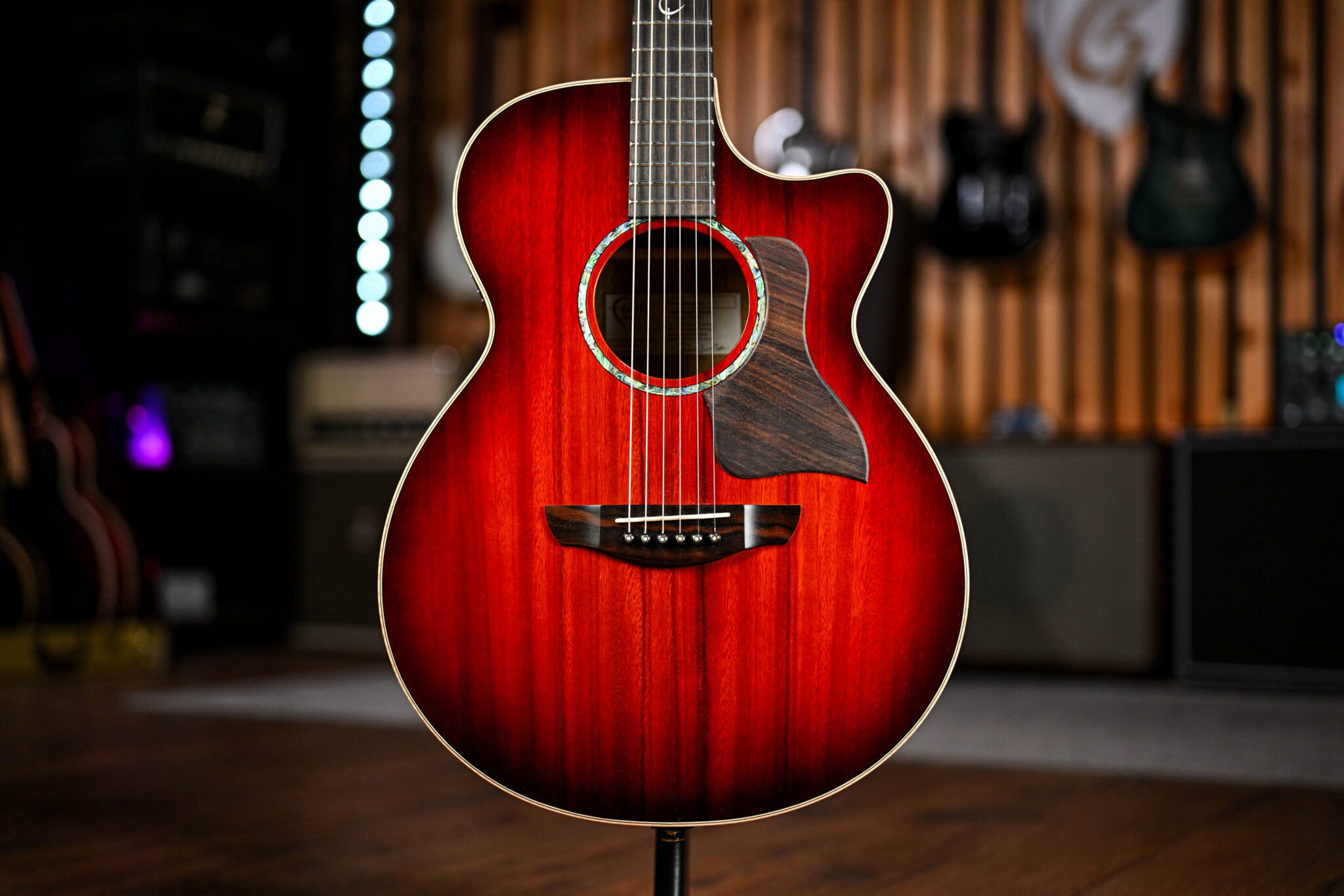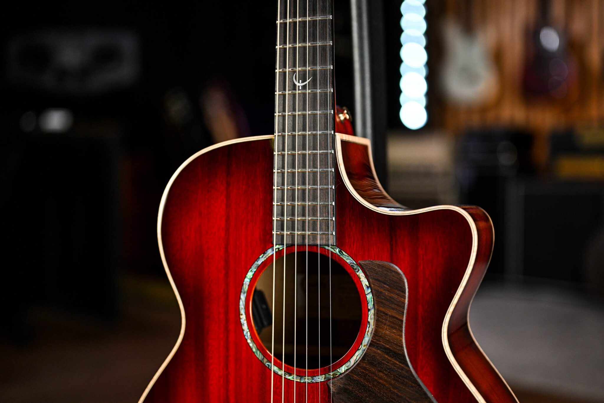 The Faith Venus Blood Moon is a visually stunning and tonally rich electro-acoustic guitar that blends world-class craftsmanship with dramatic beauty. Featuring a solid figured trembesi top, back, and sides. The guitar delivers a balanced, powerful voice, that shines through whether fingerpicked or strummed.
