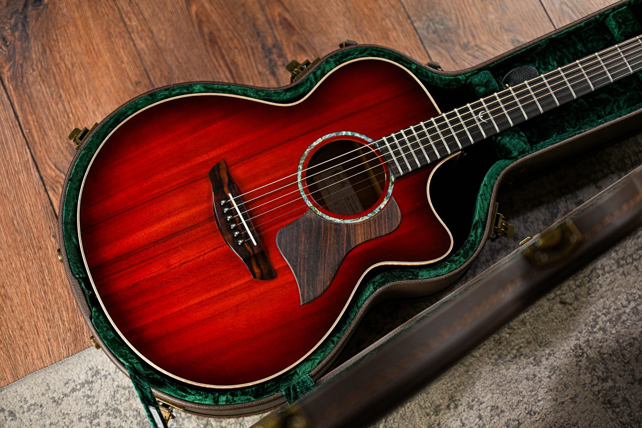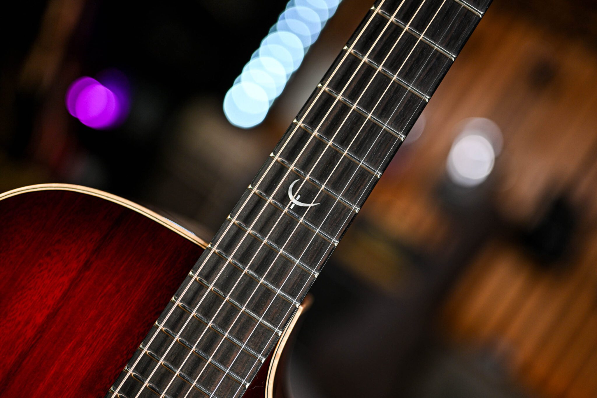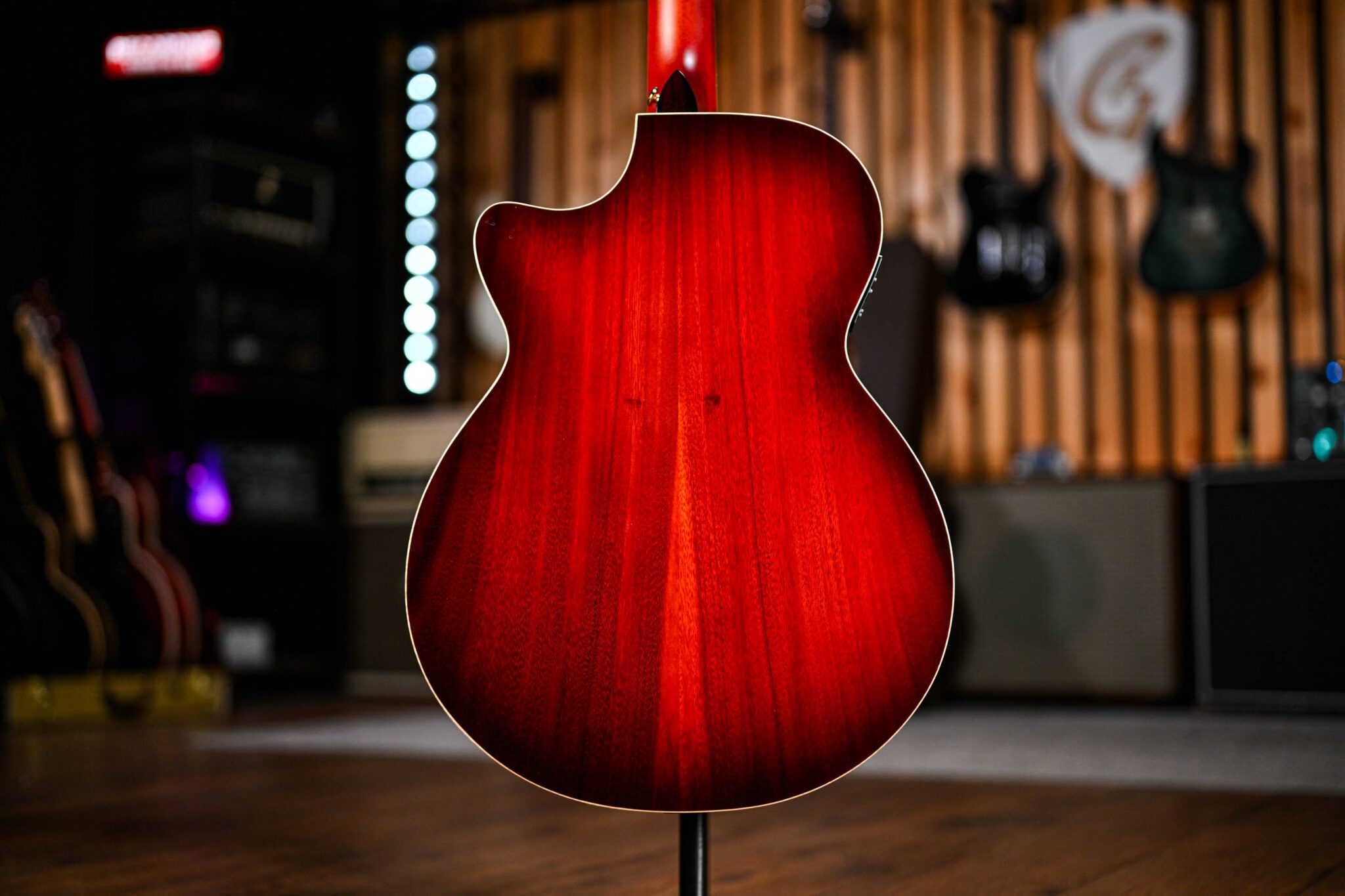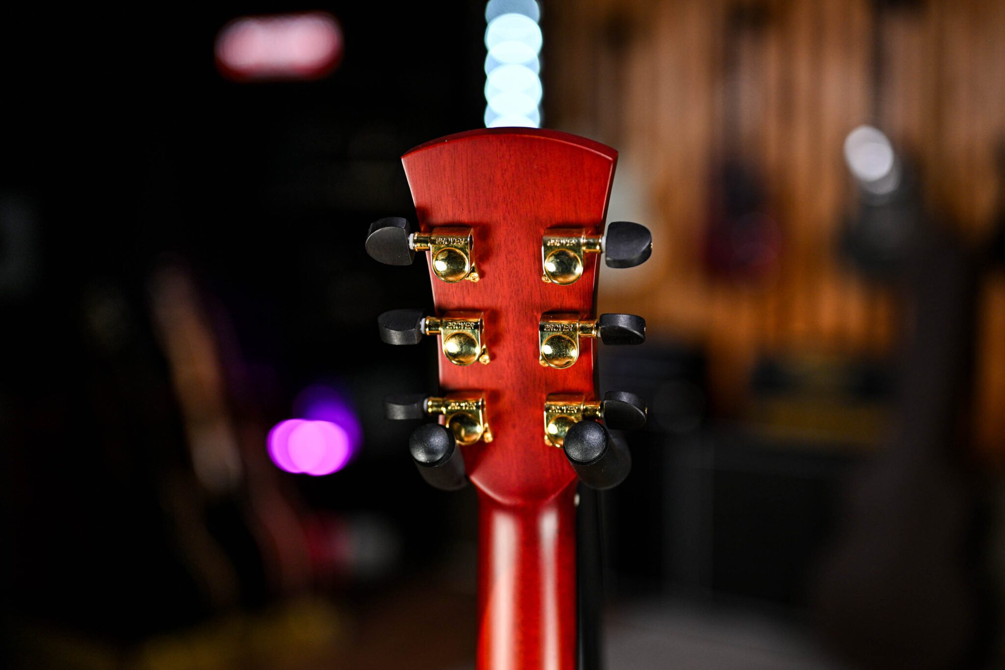 The Faith Venus Blood Moon is a visually stunning and tonally rich electro-acoustic guitar that blends world-class craftsmanship with dramatic beauty. Featuring a solid figured trembesi top, back, and sides. The guitar delivers a balanced, powerful voice, that shines through whether fingerpicked or strummed.