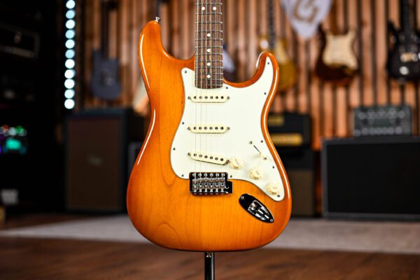 What we have here is a beautiful example of a vintage 70s Strat seen on stages rocked by many of our legendary heroes! This guitar has all the vintage character and vibe we love with a cool look. Set up and playing like a dream the guitar sounds incredible with all the brightness, bite, and sparkling tones you look for, this is one inspirational guitar to play. It comes complete with original tags and owner’s manual making it an excellent collector’s or investment piece too!