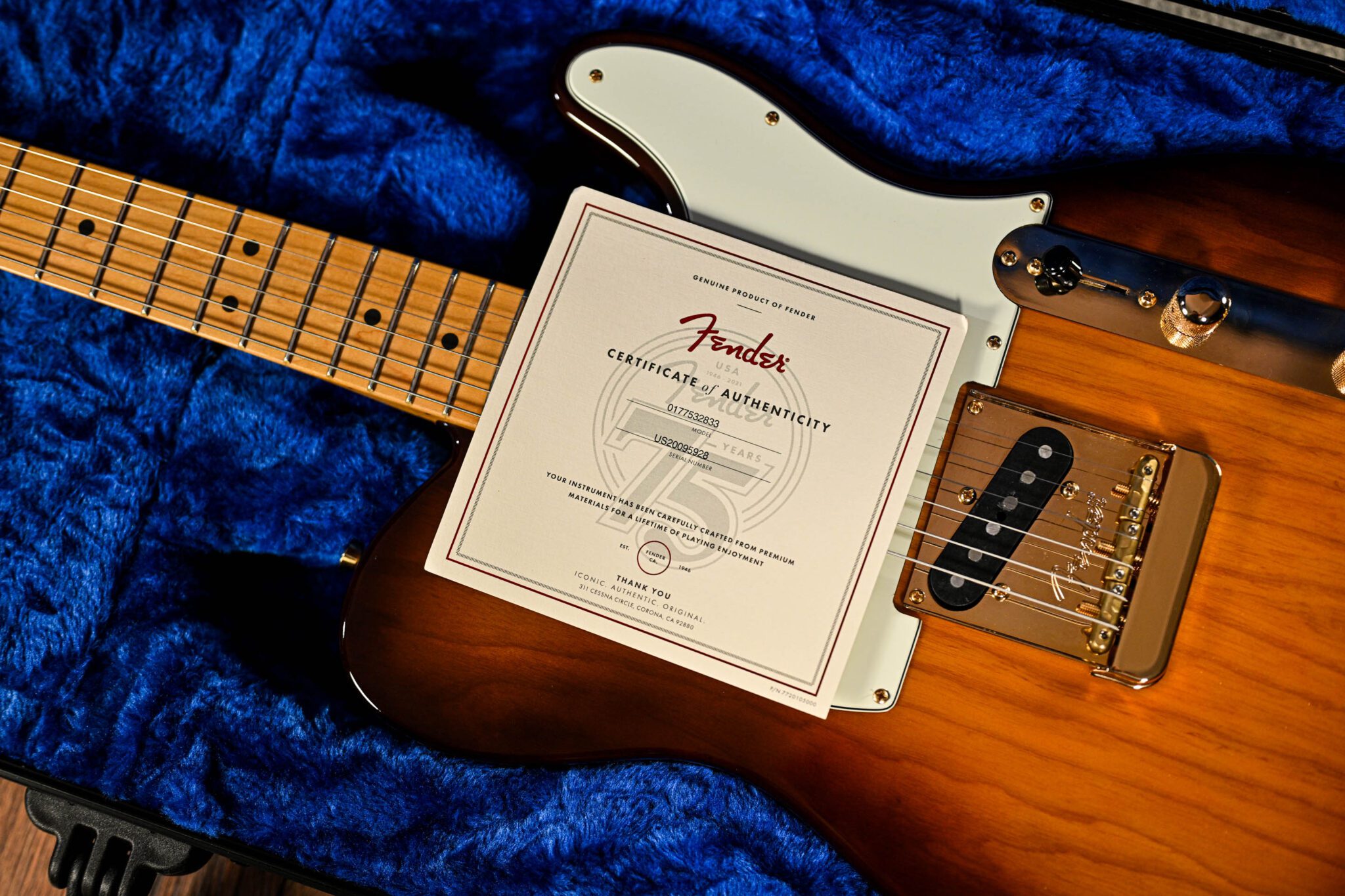 This 75th Anniversary Commemorative Telecaster is super classy, and we love it, in tasty 2 Tone Bourbon Burst – we are sure you will too!