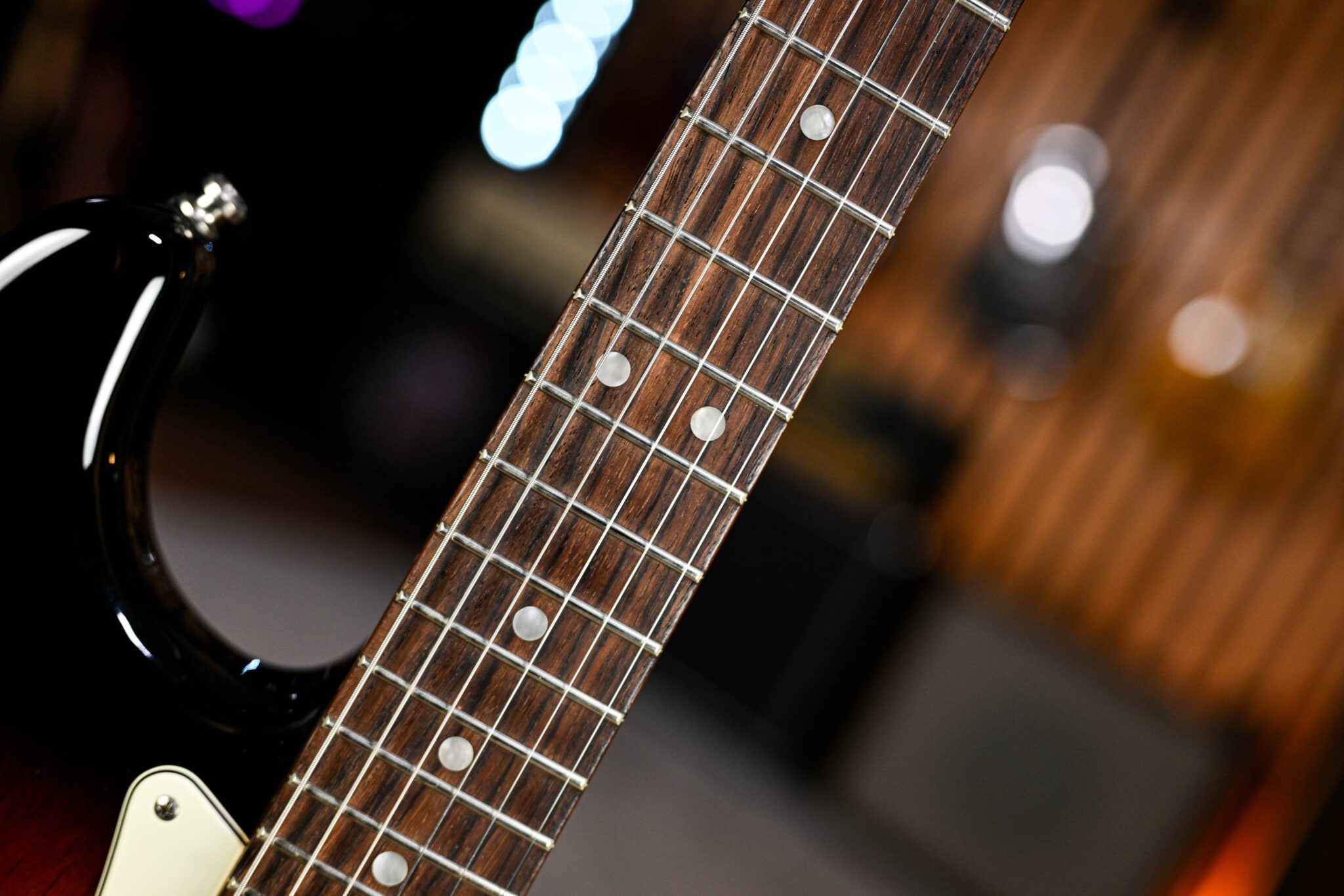 All the tones we look for in a Strat are delivered in this guitar, from woody rhythm pickup blues to all out quacky funk through the in-between position to the bite and snap of the bridge pickup. Playing made a breeze through the additions of a carved neck heel, compound radius fretboard and perfect set up ensuring you always sound your best.