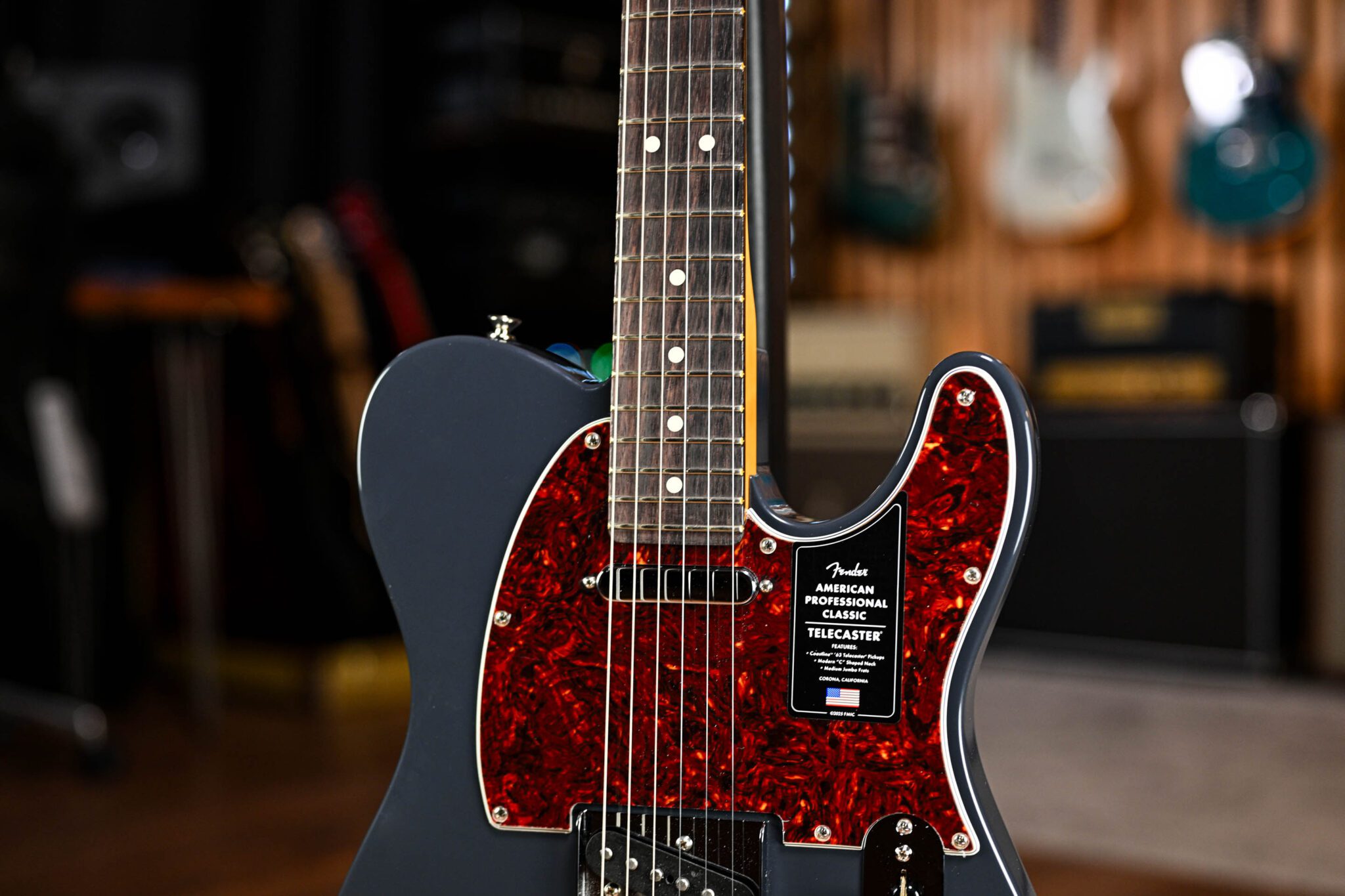The Fender American Professional Classic Telecaster Faded Black Rosewood Fingerboard draws on the classic design of the Telecaster with the benefit of modern appointments. This makes it an incredibly reliable professional instrument for both stage and studio. The duo of vintage-inspired Coastline ’63 Telecaster pickups deliver the iconic depth, punch and sparkle of a 1963 Telecaster and the colour pays homage to Fender’s extensive back catalogue of classic finishes.