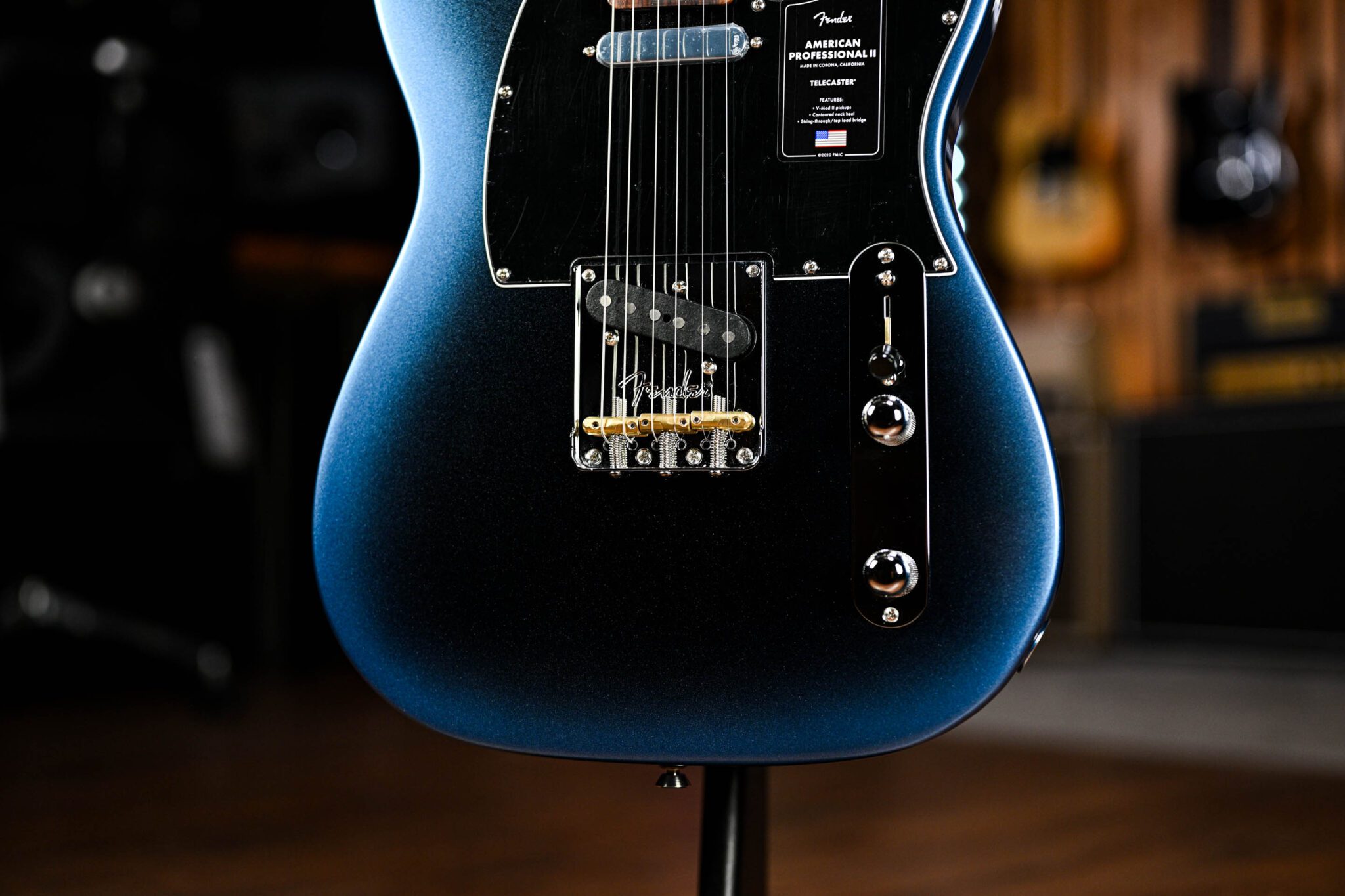 This American Professional II Telecaster is a subtle and excellent evolution of the legendary guitar, while retaining the finest qualities of its predecessor. It’s brought up to date with features such as: compensated 3-saddle string-through-body bridge, staggered tuners, V-Mod II pickups, 9.5’’ radius rolled fretboard and a super smooth satin finish neck bring the guitar right into the present day while retaining everything we love about the Fender Telecaster.