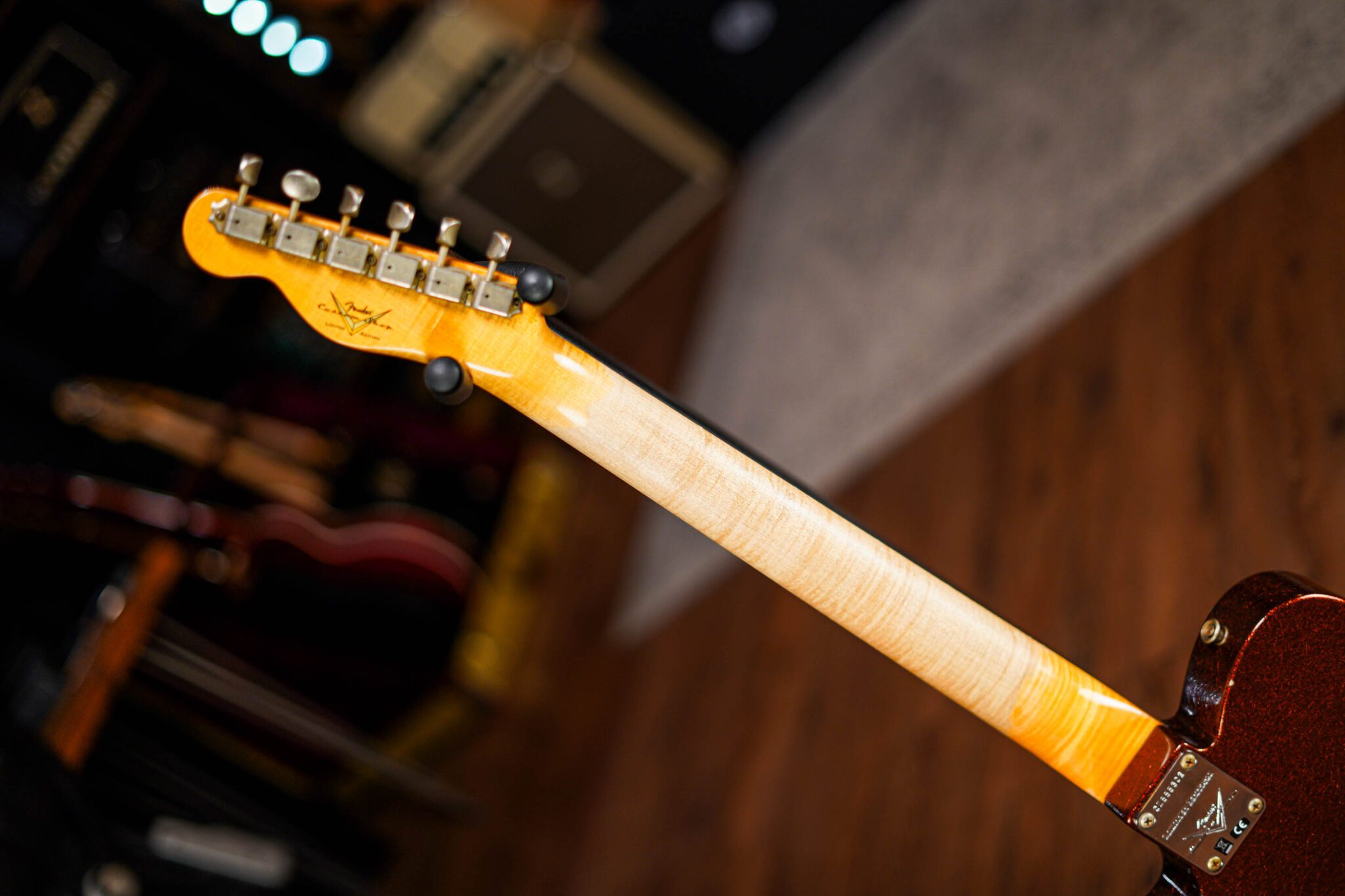 Meticulously put together by some of the finest craftsmen in the world. The Fender Custom Shop have made some classy additions with a AA flame maple neck, AAA 9.5” rosewood fretboard making this an amazing playing guitar with huge tone, bite and all the twang you look for in a top end Tele. This is a truly outstanding Limited-Edition guitar to play, listen to and just look at!