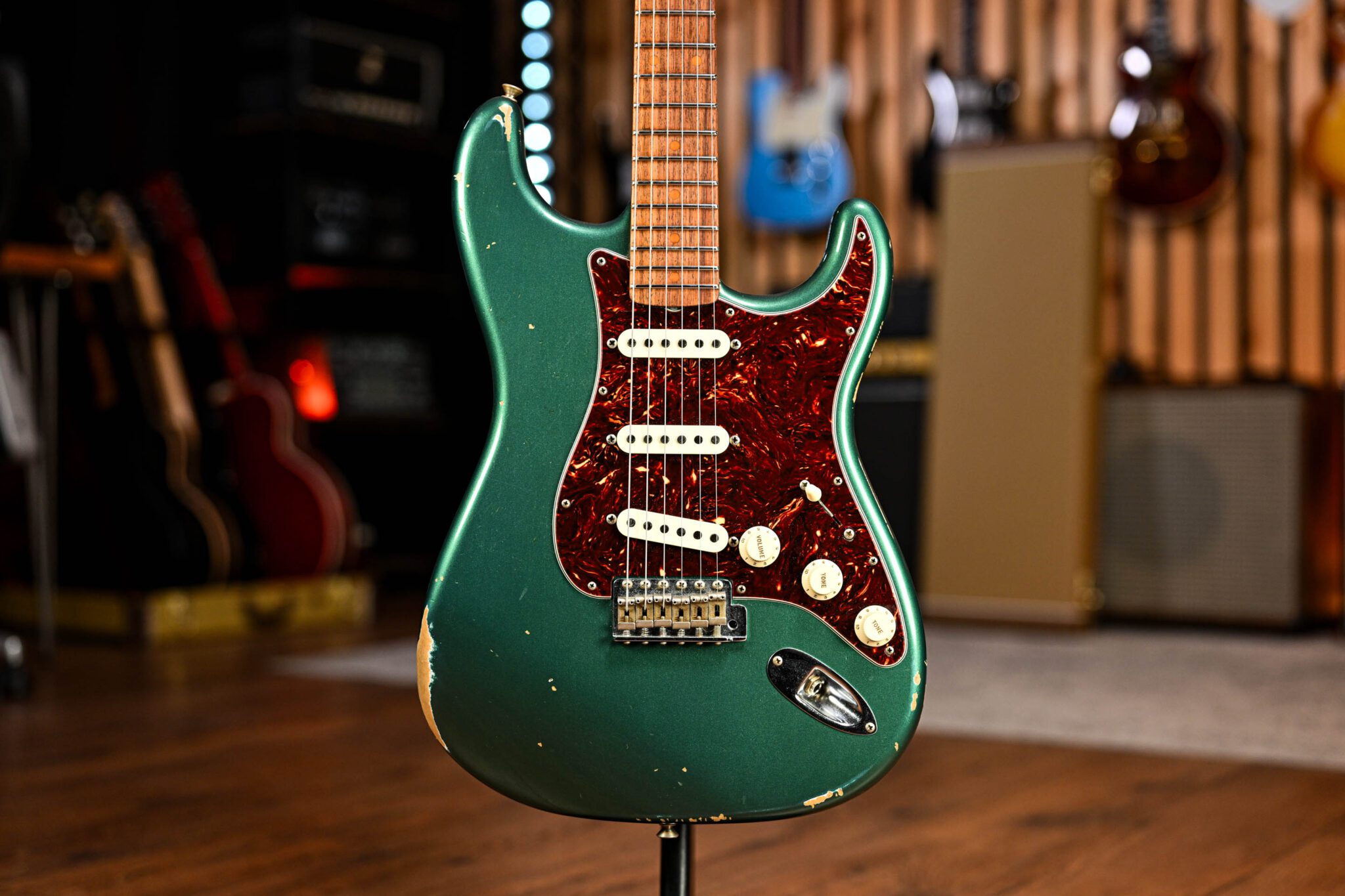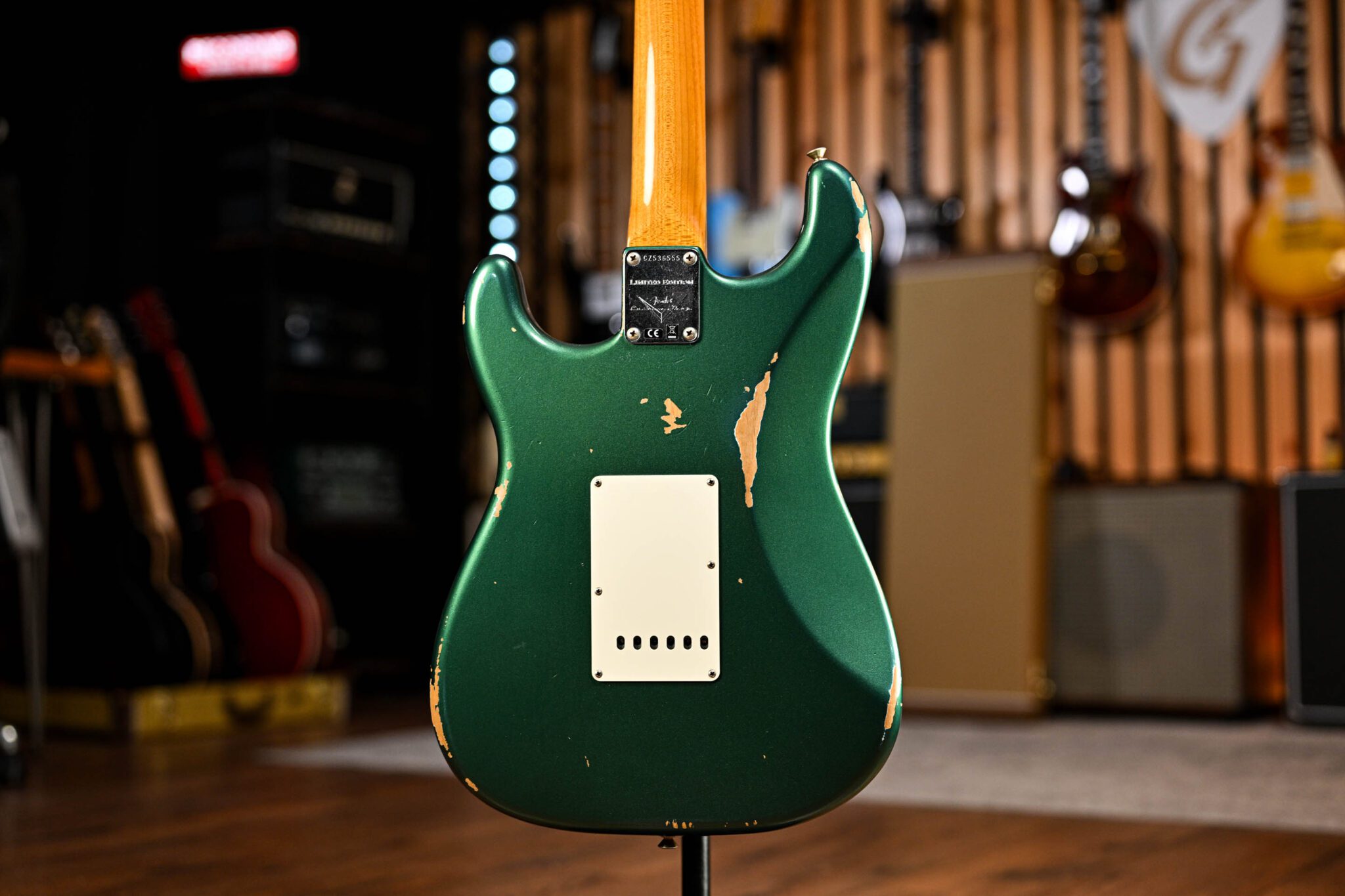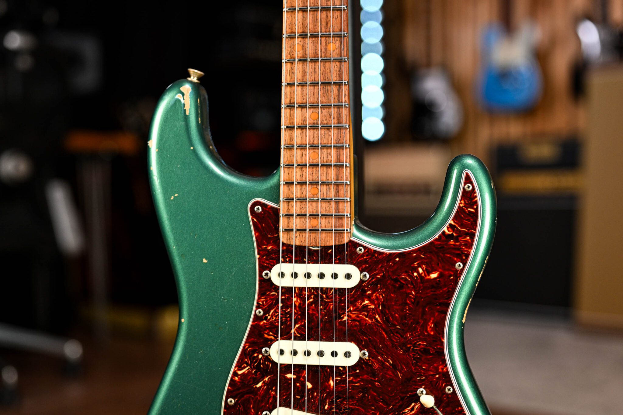 The alder body is finished in the stunning ‘Relic’ Aged Sherwood Green, one of Fender’s most iconic finishes. Authentically aged, this finish will wear beautifully with time and develop its own character even further. The thin nitro finish also allows the natural resonance of the body to sing and sustain much more effectively.