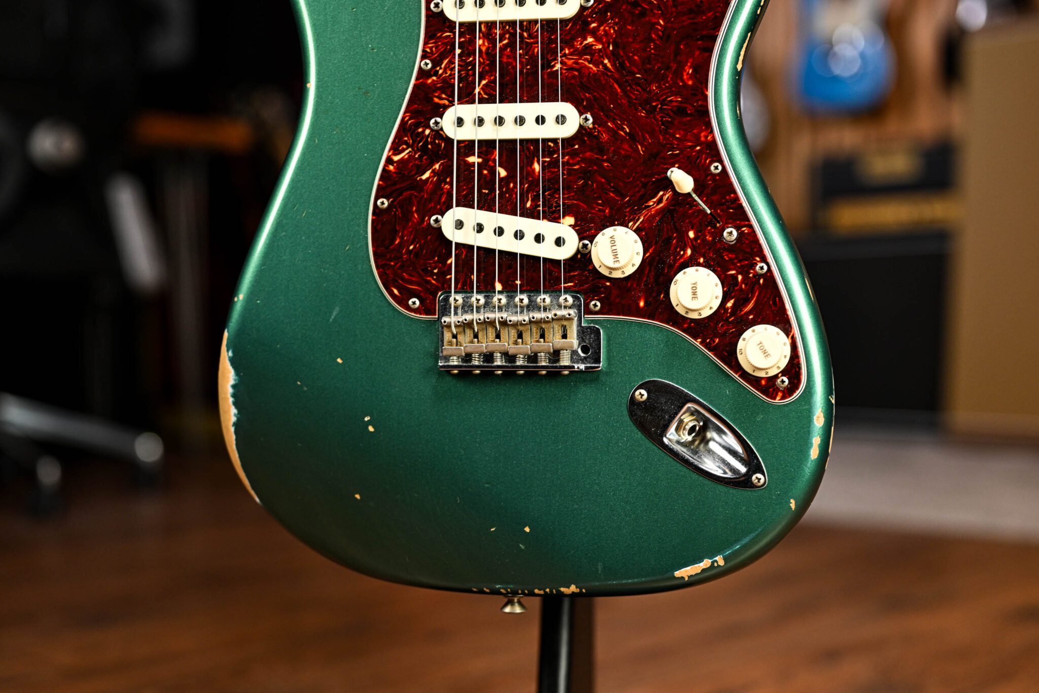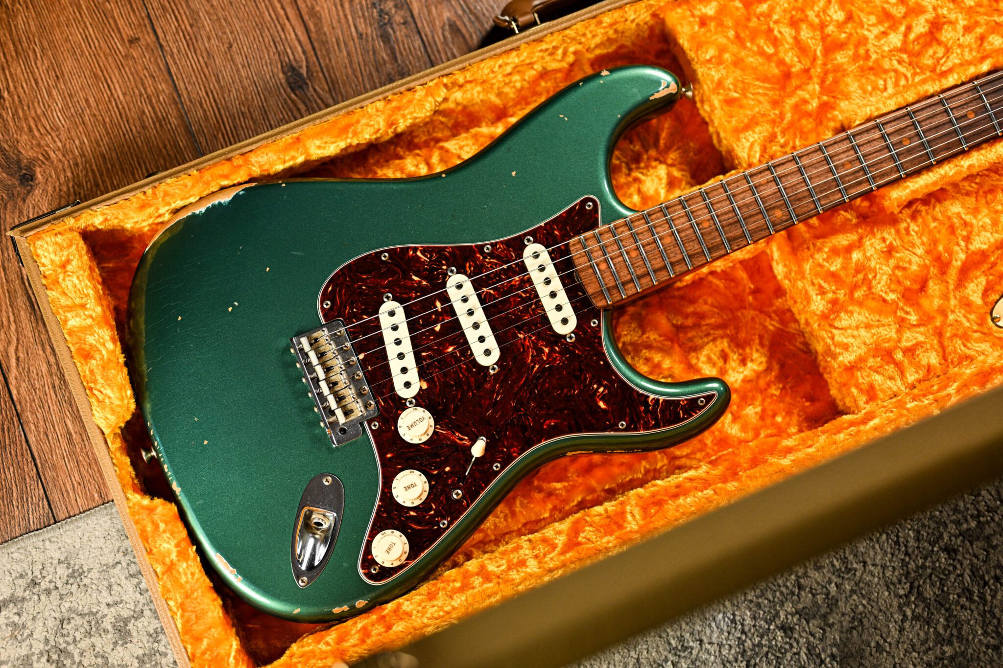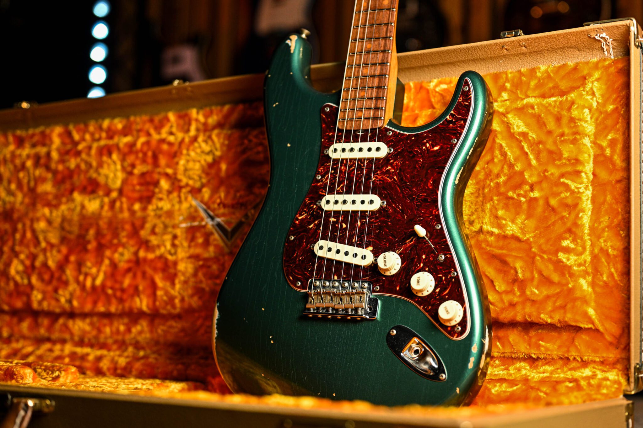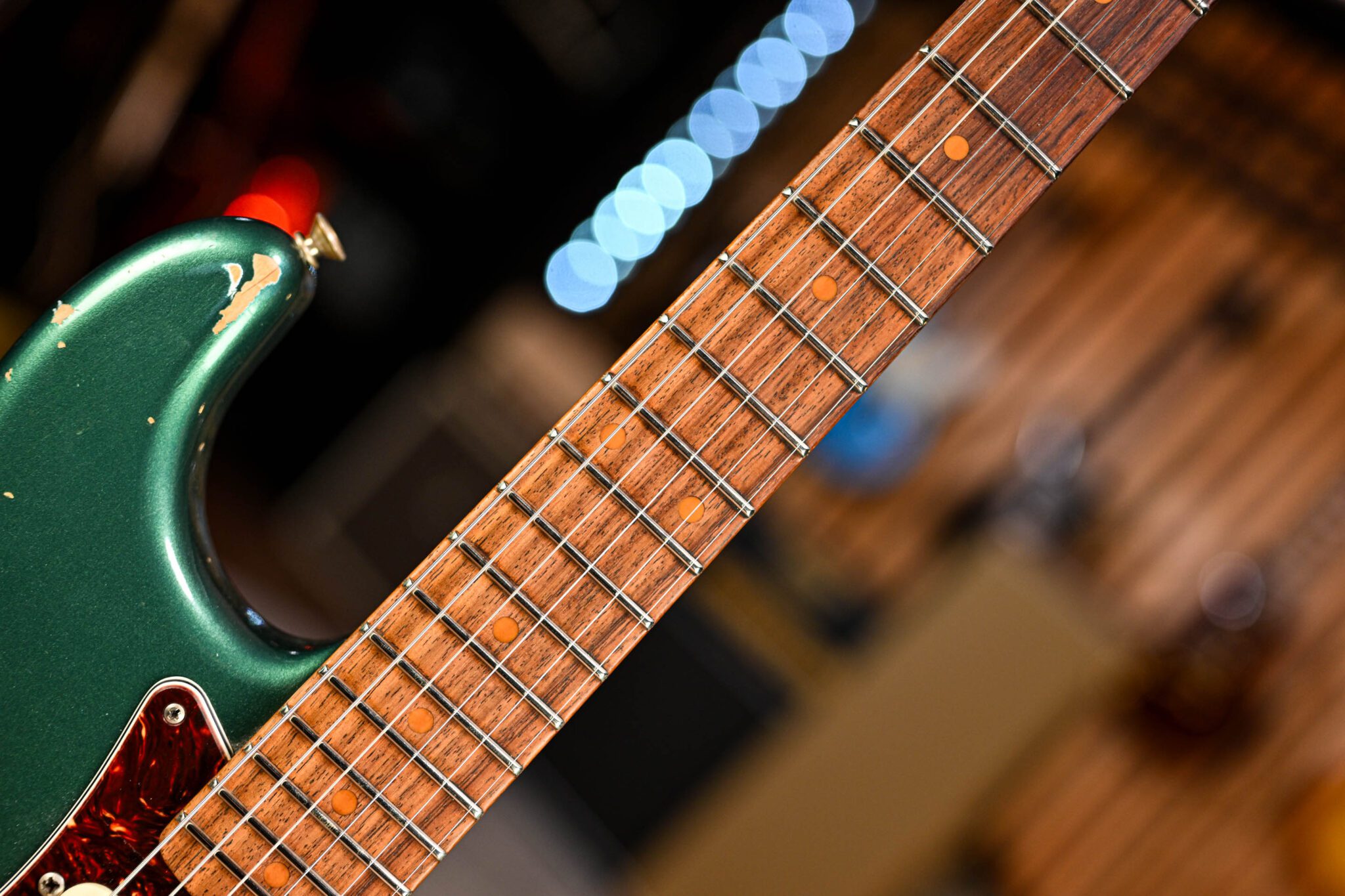 The alder body is finished in the stunning ‘Relic’ Aged Sherwood Green, one of Fender’s most iconic finishes. Authentically aged, this finish will wear beautifully with time and develop its own character even further. The thin nitro finish also allows the natural resonance of the body to sing and sustain much more effectively.