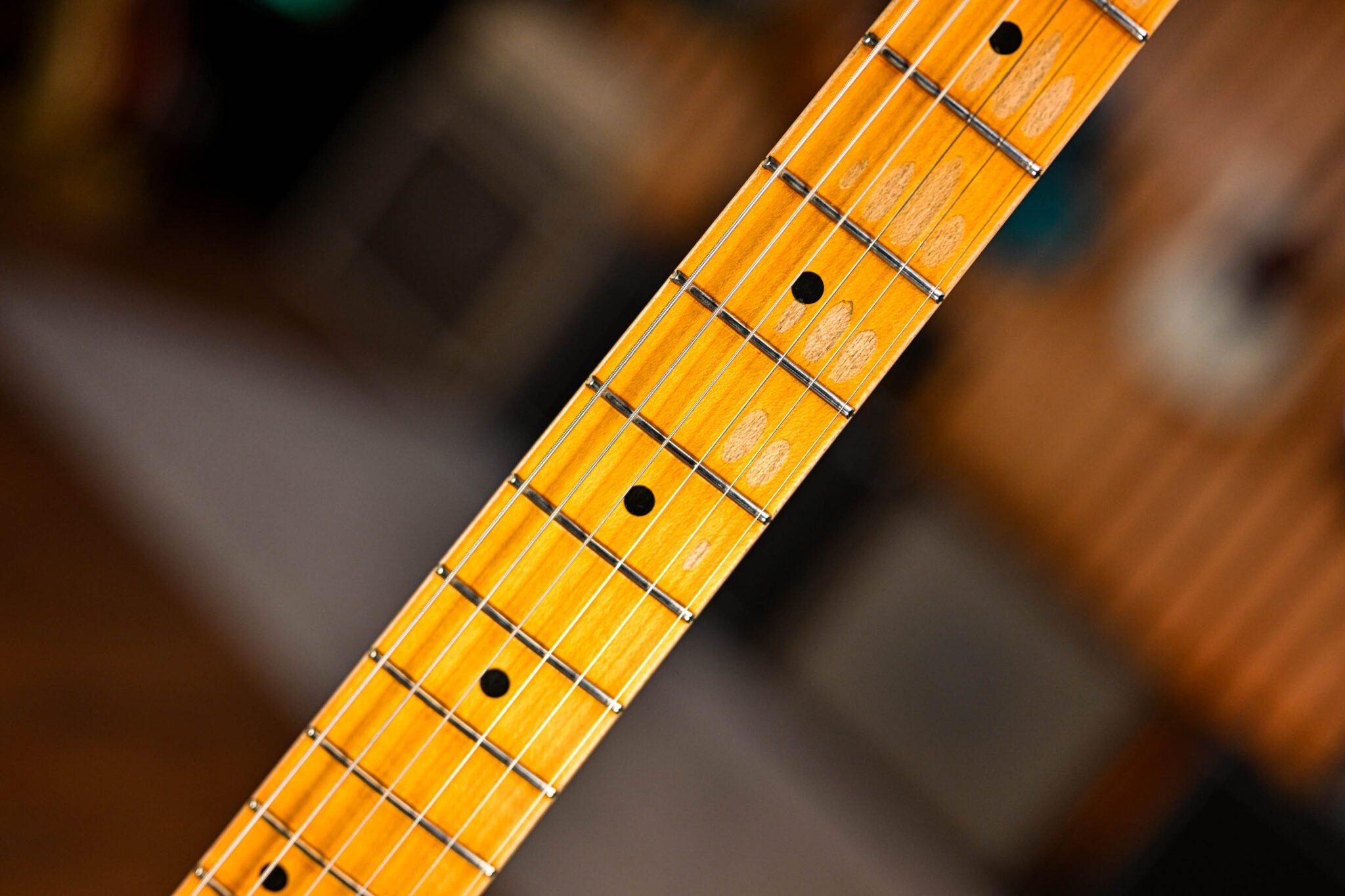 The neck is crafted from rift sawn Maple and features a 50 Blackguard profile and features a 7.25″-9.5″ compound radius and 21 medium vintage frets – it’s smooth and at home playing slick runs and crisp chords right up the neck. Classic Fender tones come curtosy of a pair of Hand Wound Blackguard 50-51 pickups. A real mix of vintage specs, classic vibes and modern playability!
