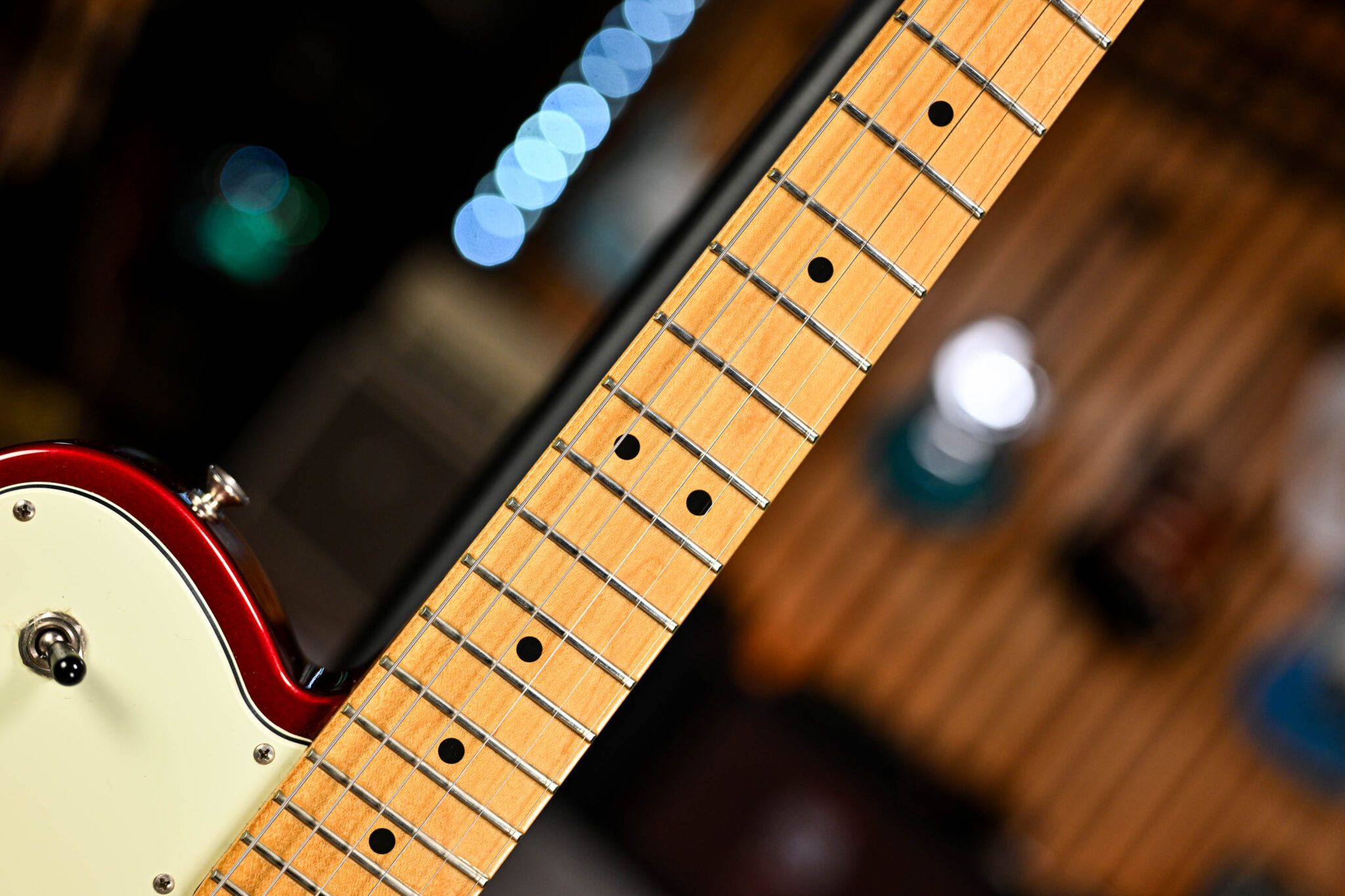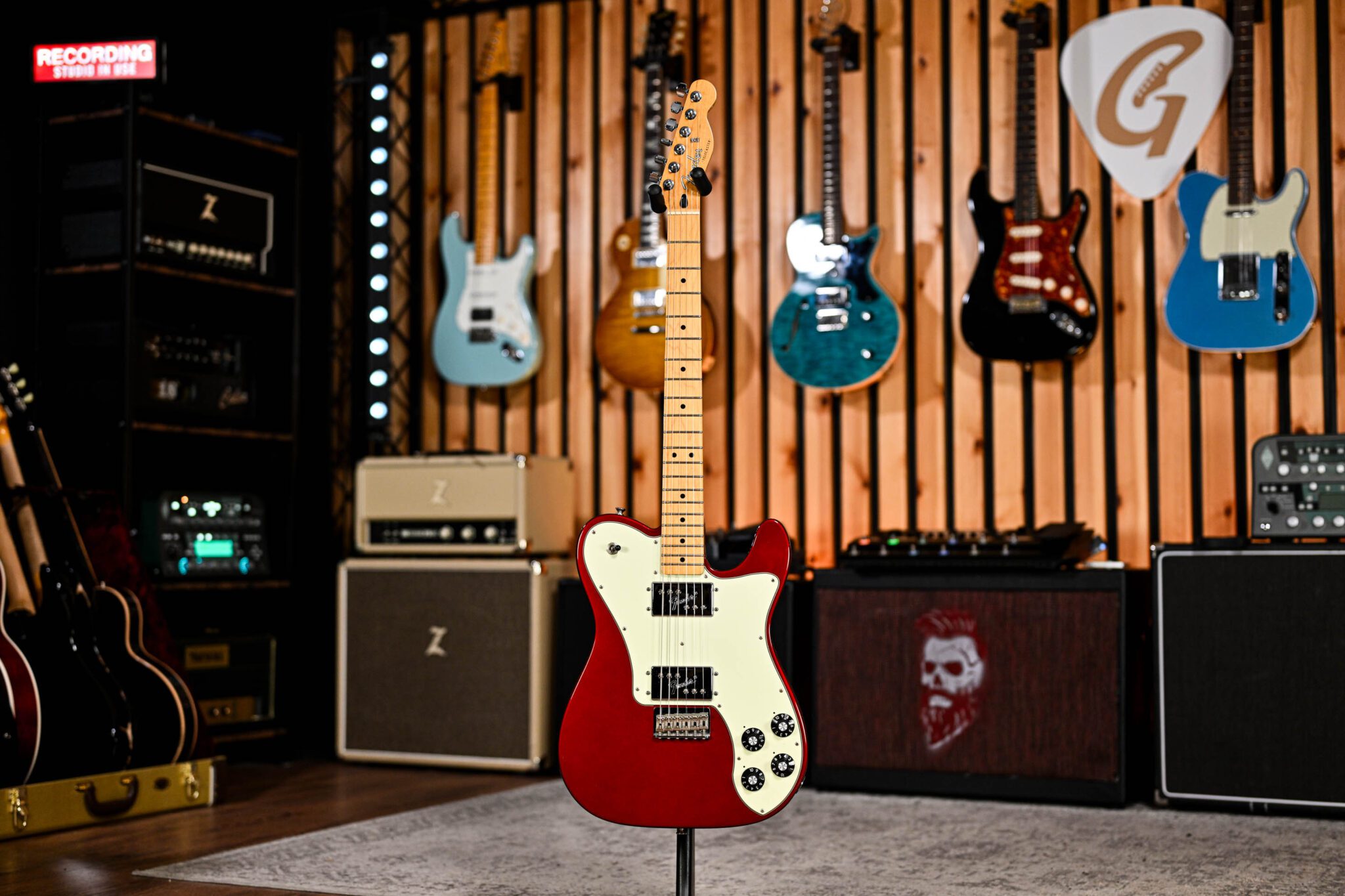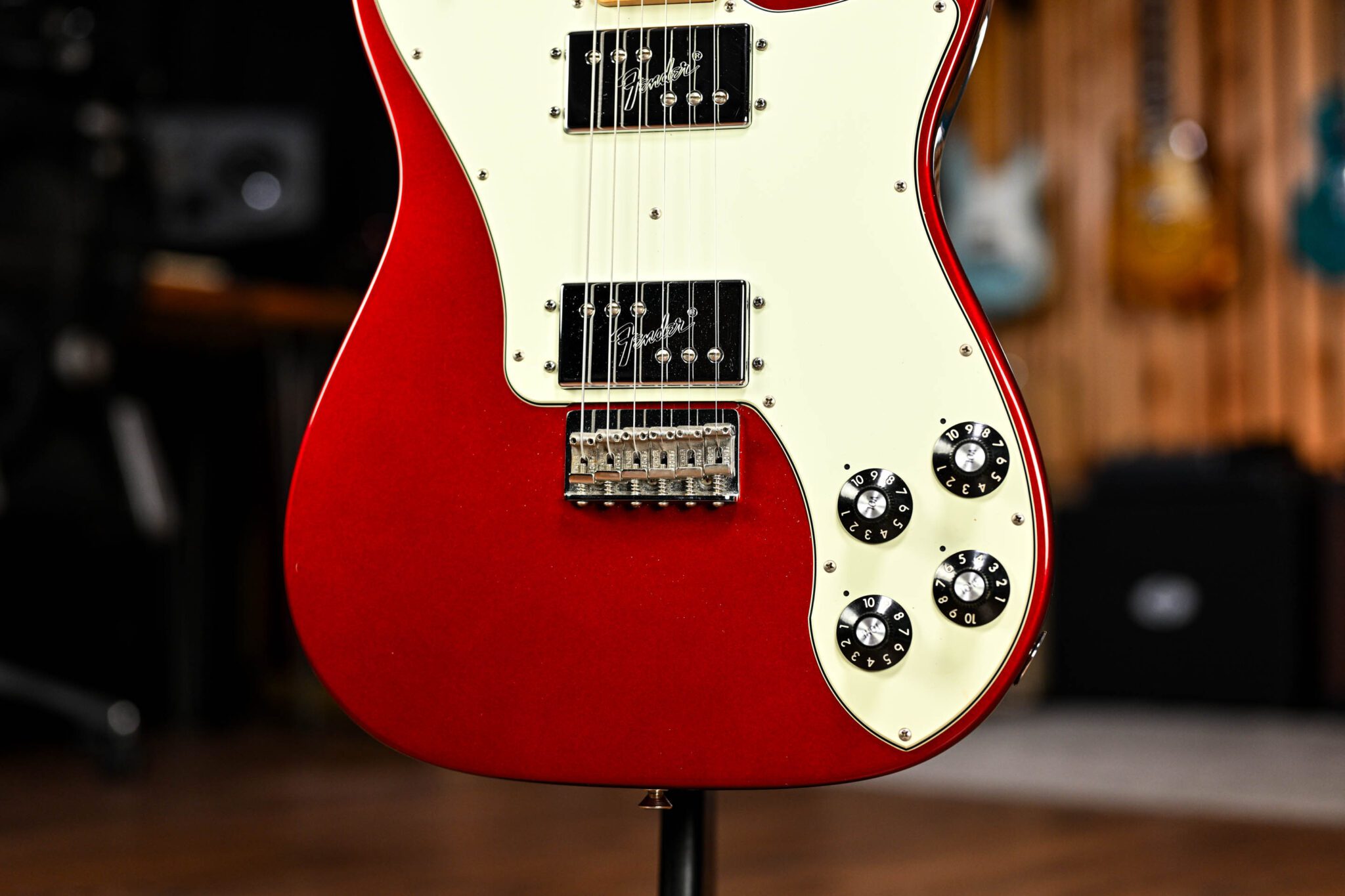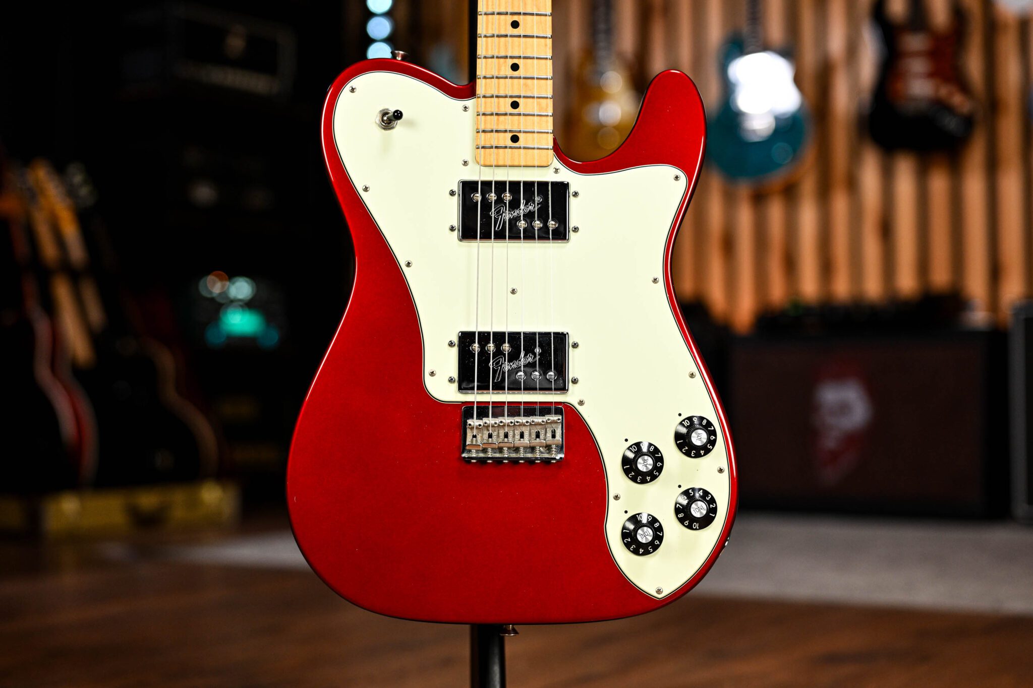 This 72 reissue Deluxe Tele features a cool looking FSR Candy Apple Red finish, it is brilliantly weighted and offers up some incredible sustain and spank! The Maple neck and humbucking pickups work together to deliver a wonderful playing experience and a solid degree of punch and dynamics.