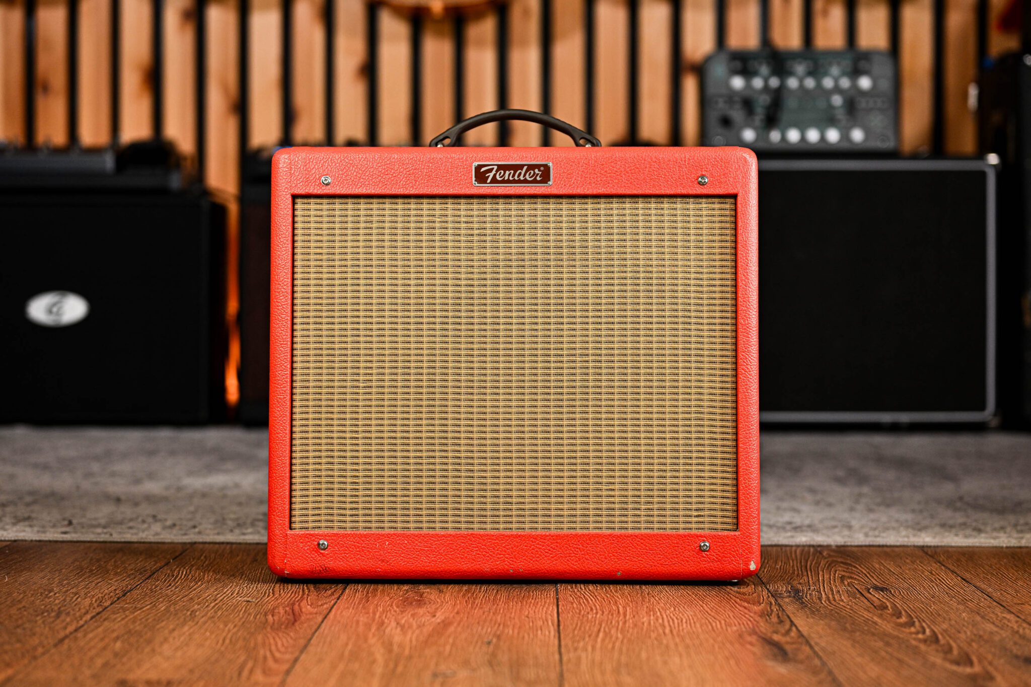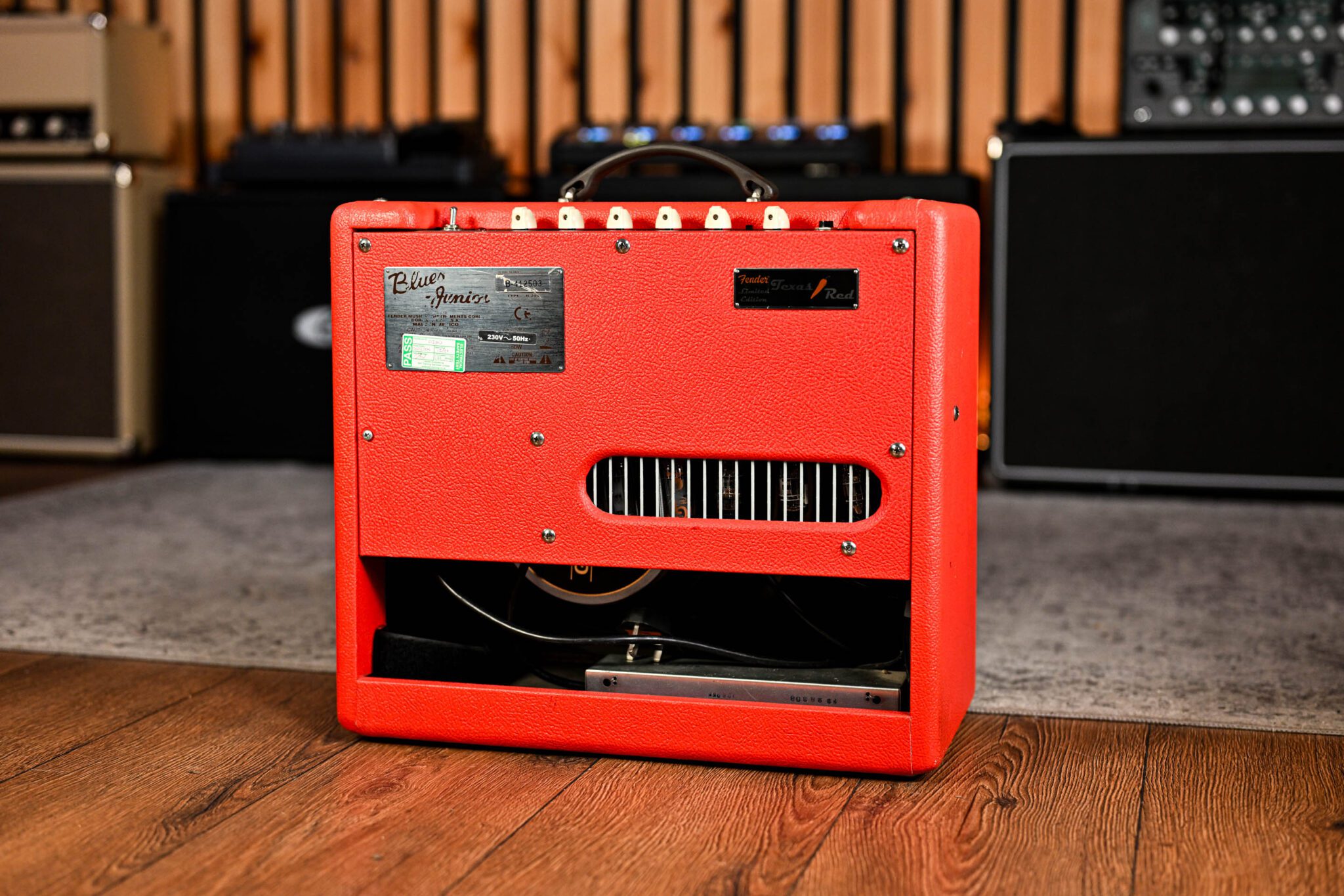 The Fender Blues Junior Texas Red is a Limited- Edition 15-watt all-tube guitar amplifier that combines classic Fender tone with distinctive British-inspired aesthetics. Part of a special Fender run, this model features a striking Red tolex covering with a tan grille cloth and white chicken-head knobs. And of course it has a range of amazing Fender and slightly British tones on offer in a cool and tasty portable package.