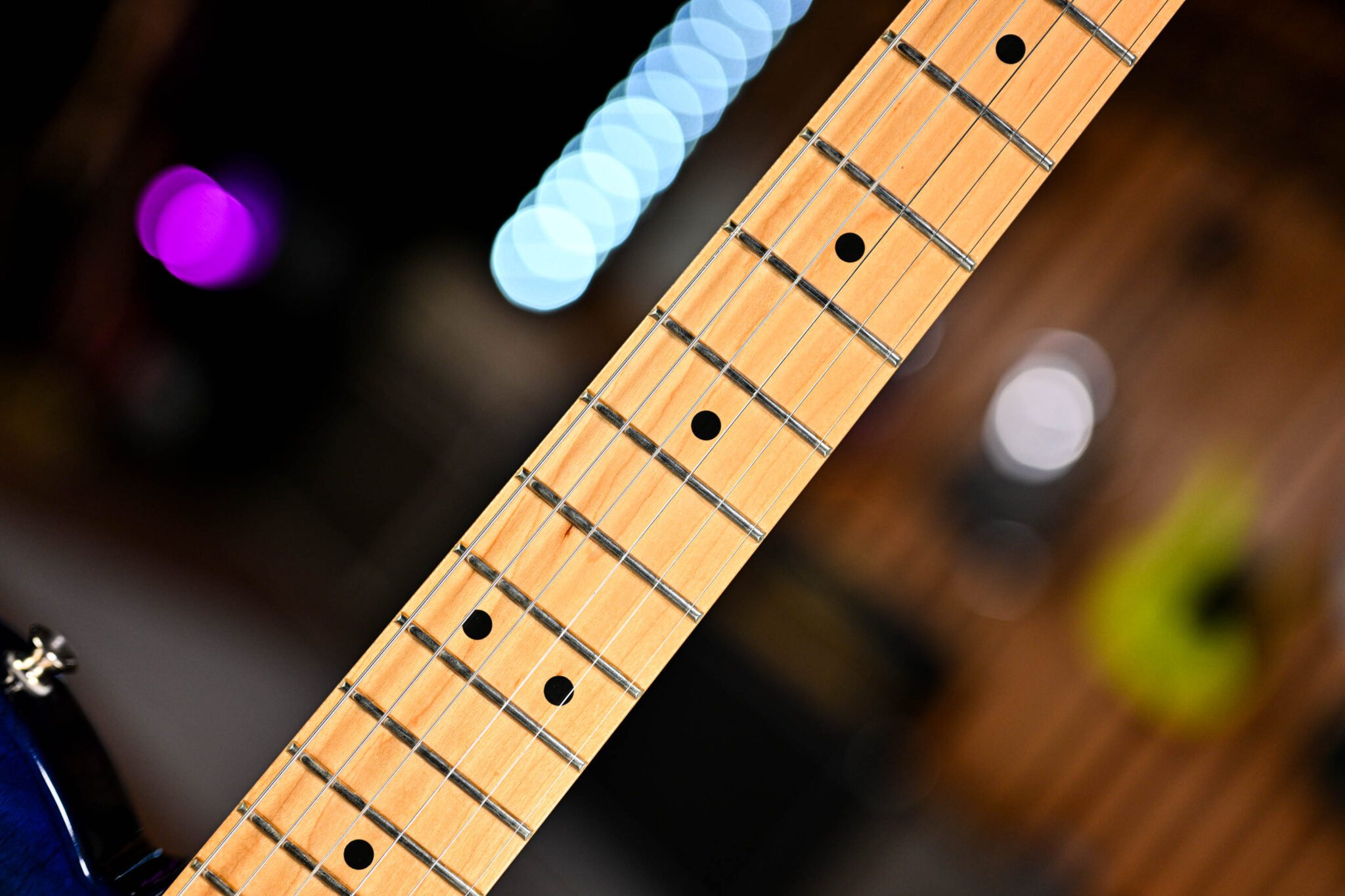 With all the hallmarks of a classic Tele, plenty of bite and sustain and distinctive tonality allowing the player’s character to shine through the mix. Featuring contemporary and time-honoured historical features like the spaghetti logo, Fender vintage spec single coil pickups, 9.5” fretboard, string through body design and comfortable “C” shape neck and of course that stunning top!