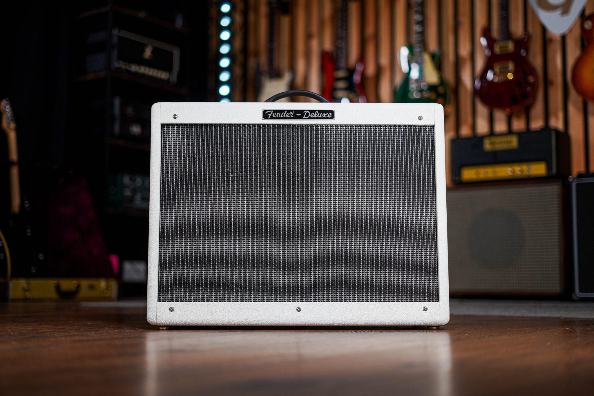 Powered by 40 watts of pure tube-driven energy, the Hot Rod Deluxe “White Lightning” offers three distinct channels—Normal, Drive, and More Drive—allowing for seamless transitions between clean tones and powerful, gritty overdrive. It’s equipped with Fender’s classic spring reverb, adding depth and dimension to your sound, whether you’re performing in an intimate venue or a full-blown concert hall.