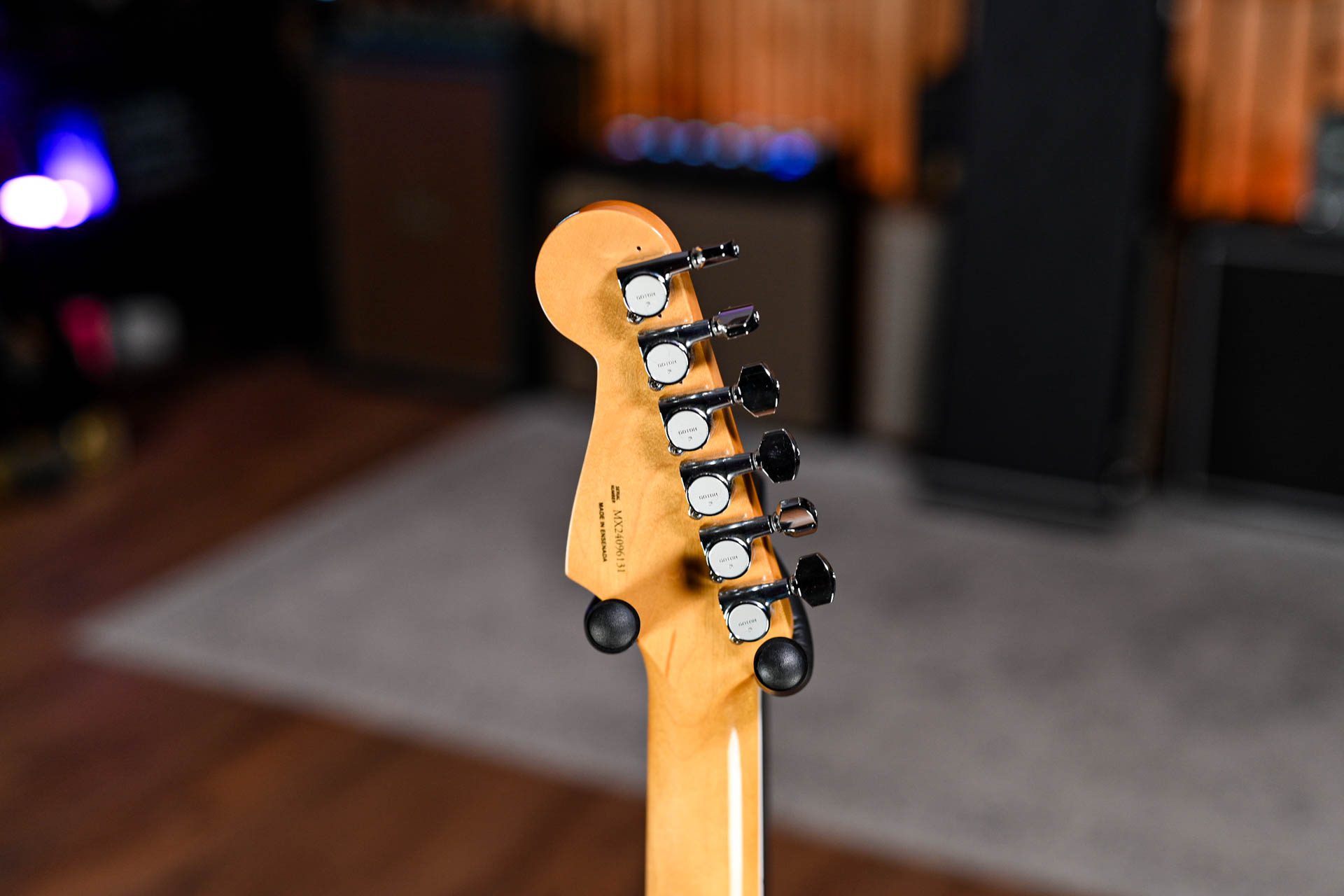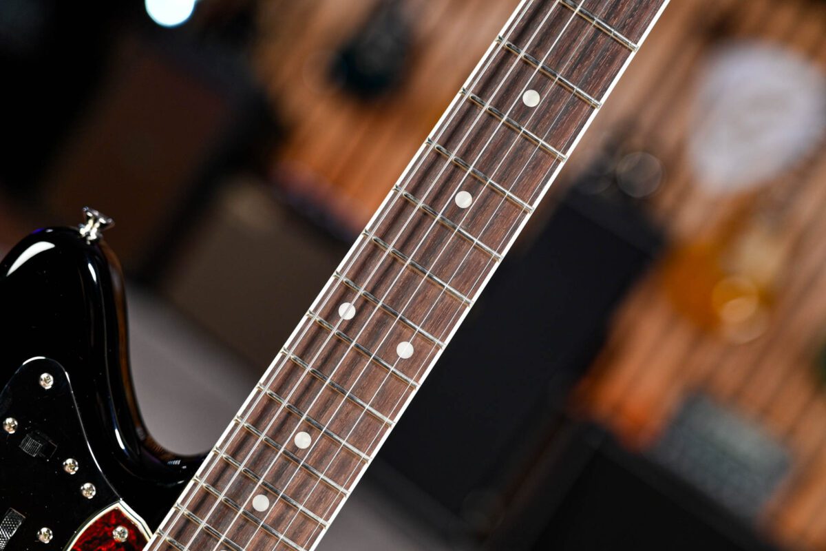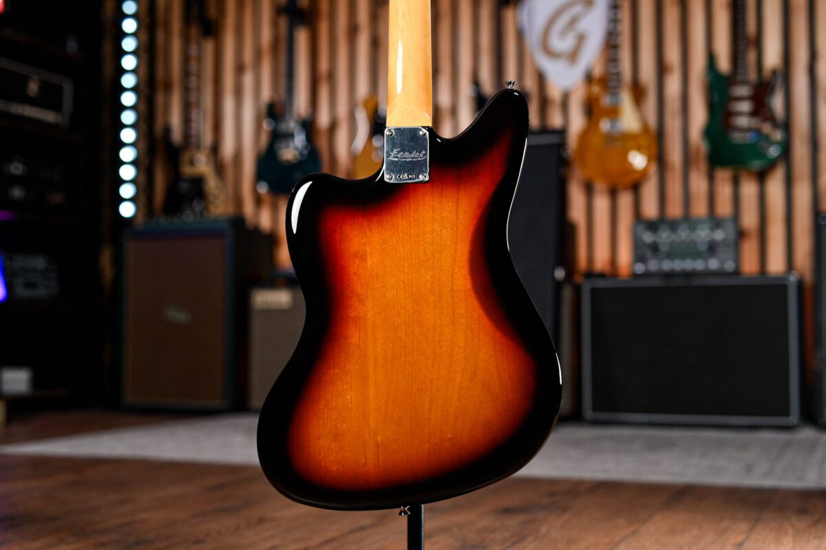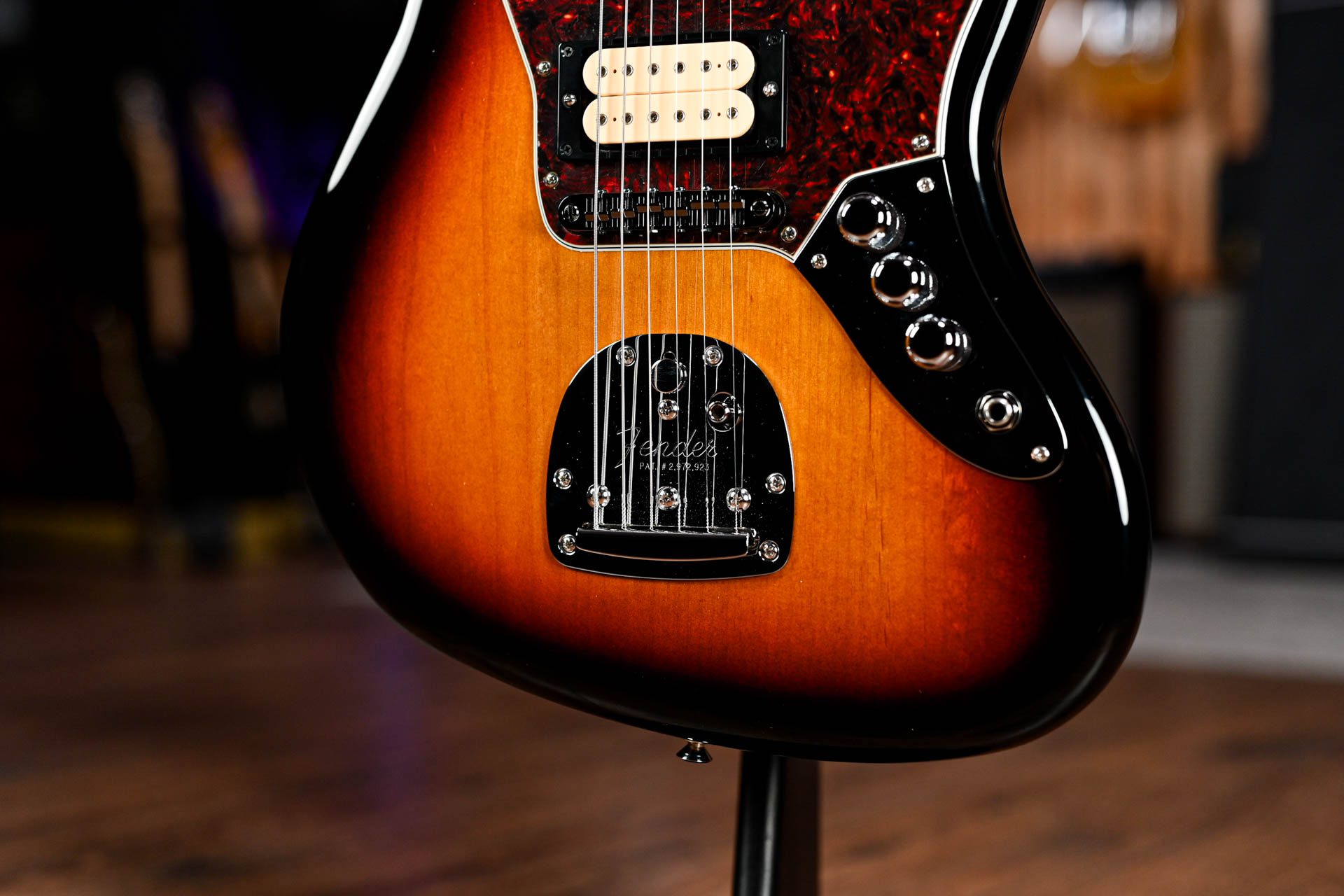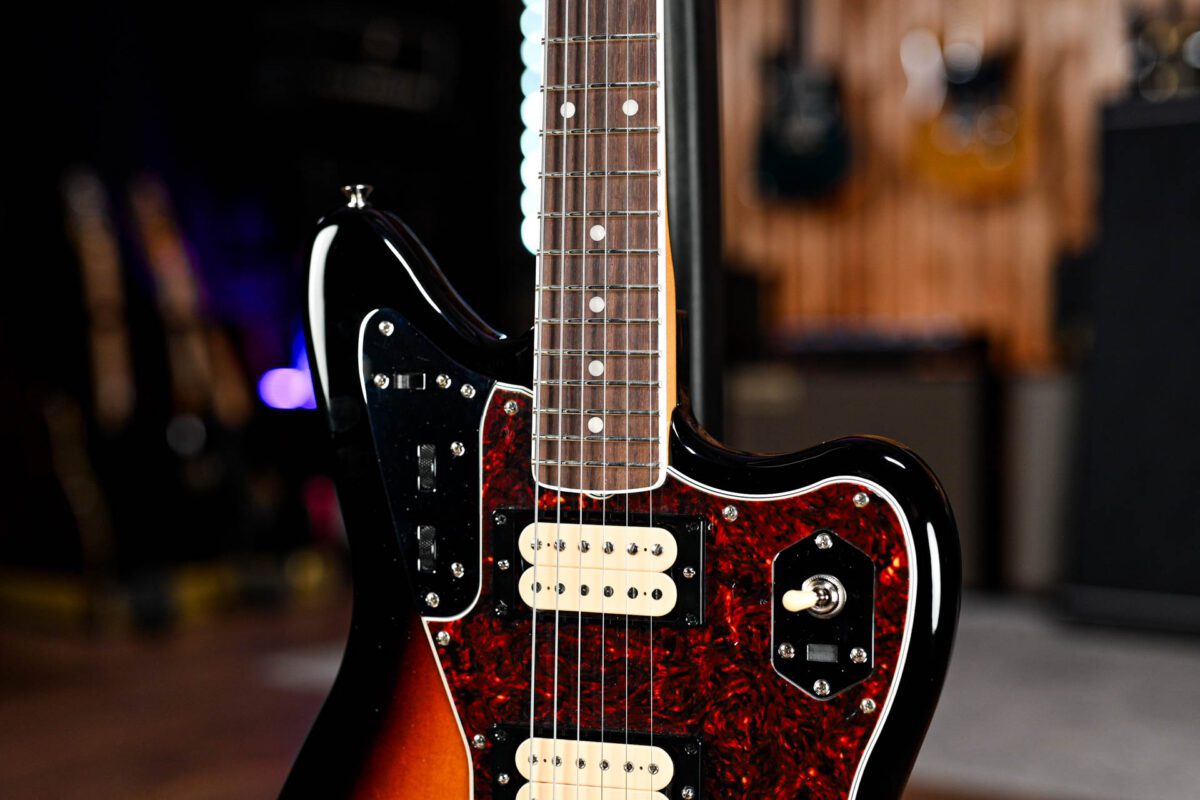 With dual humbucking pickups and unique electronics found on the Jaguar Kurt attained in the summer of 1991, this really is a throw-back and a testament to that unique tone and sound. This iconic guitar is packed with special features including DiMarzio DP103 PAF 36th Anniversary neck and DP100 Super Distortion pickups providing Kurt’s unique tone, while a triple knurled “chrome-dome” knob configuration (volume-volume-tone), three-position toggle switch, and black chrome Adjusto-Matic bridge complete the composition.