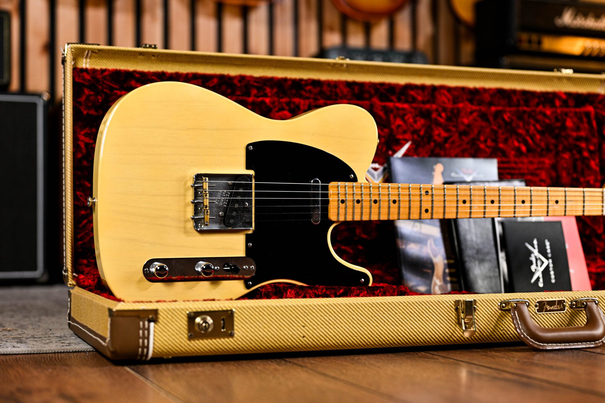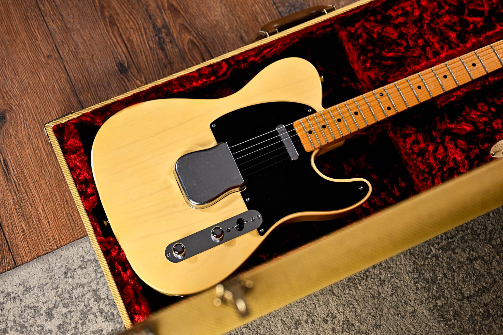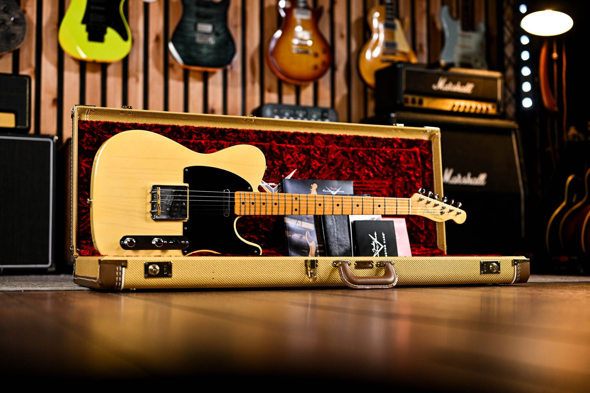 Built to capture the magic of an early 50s Telecaster in timeless “Closet Classic” Faded Nocaster Blonde finish, the super resonant ash body paired with the lightly aged maple fretboard produces a thick tone that has that familiar spank and clarity that a 50s Tele is known for. The Custom Shop pickups are clear, responsive and have that magical contrast between the bridge and neck positions with the funky mid position, ensuring you have an array of classic and inspirational tones at your fingertips.