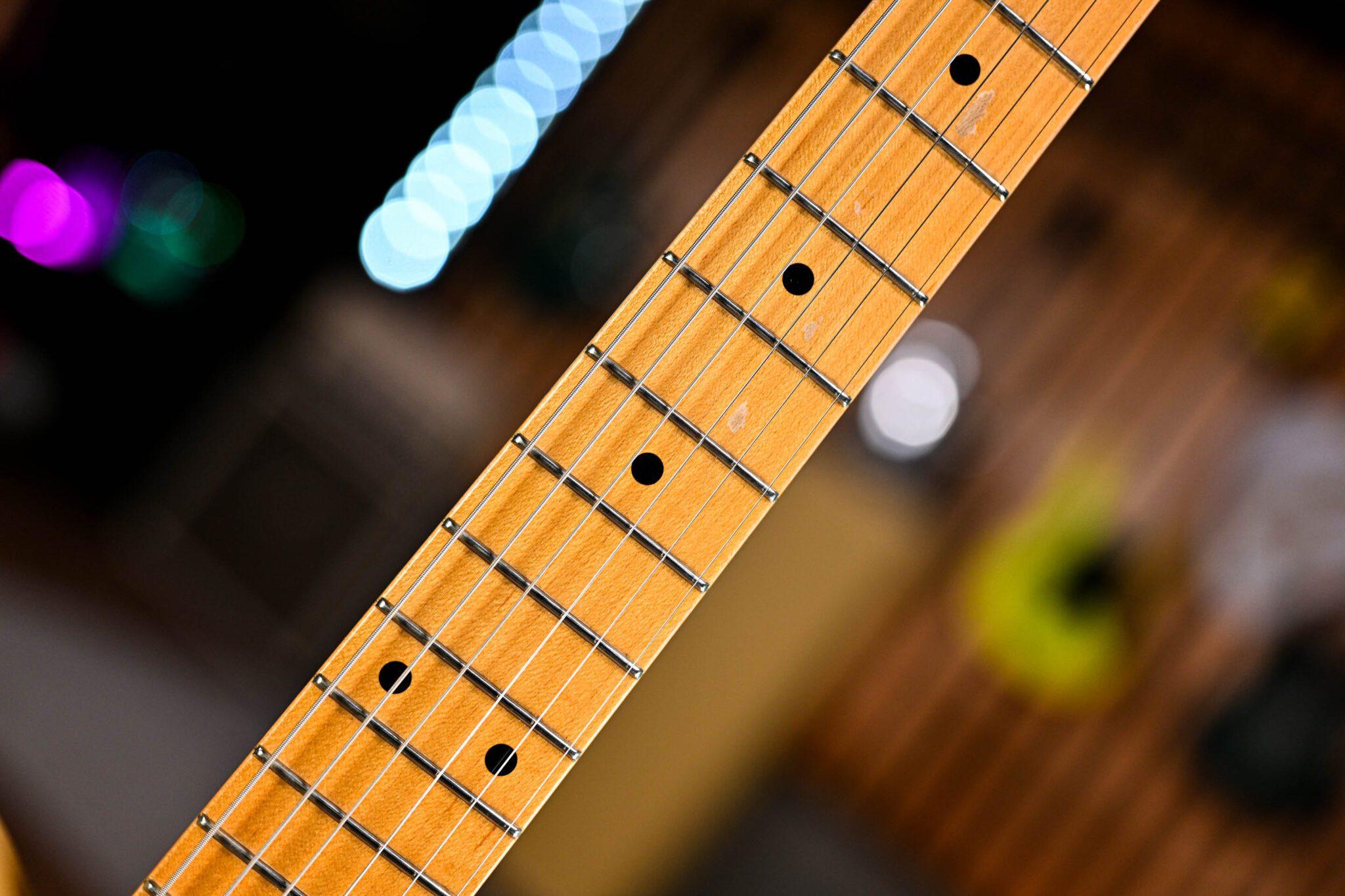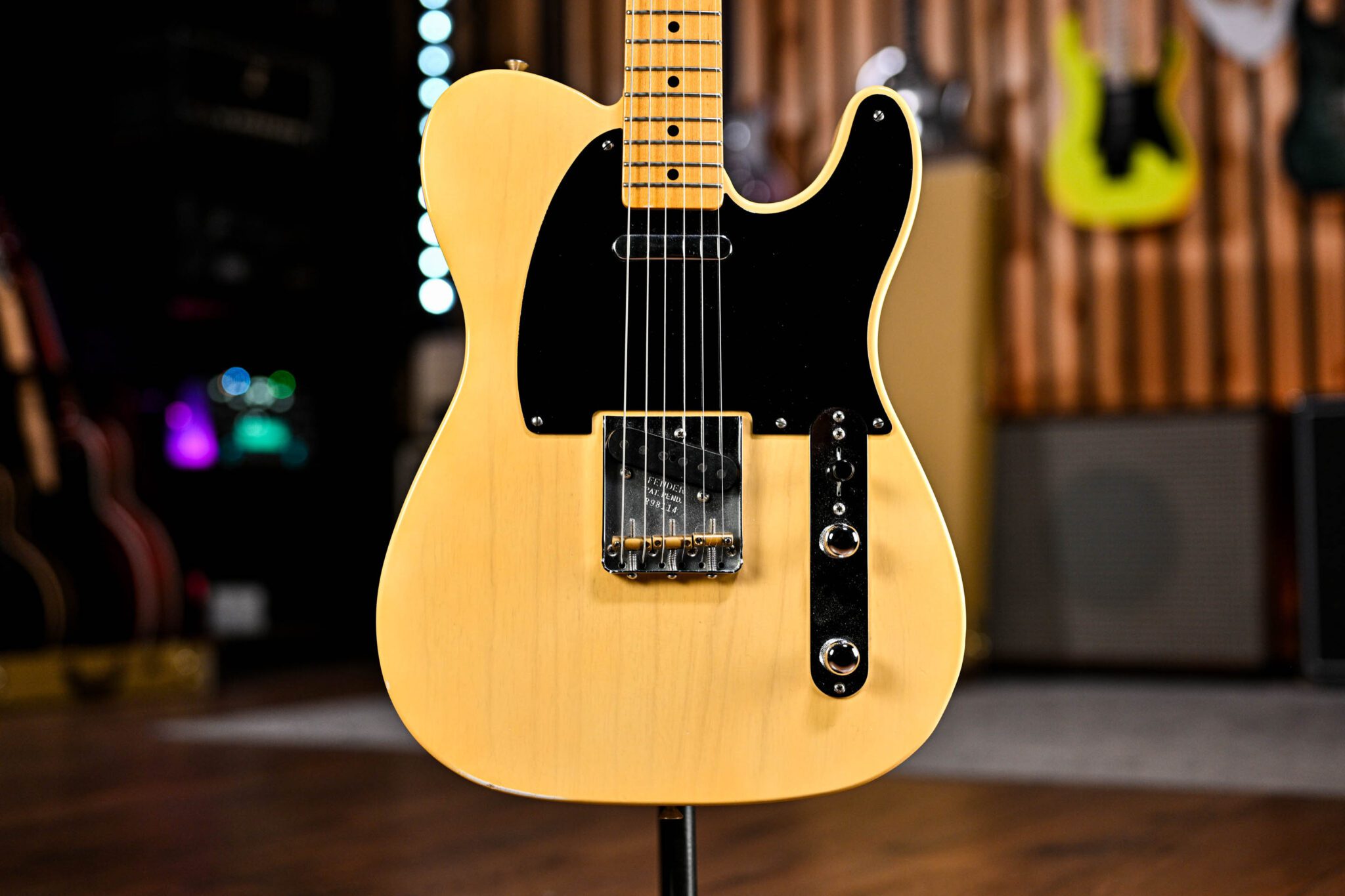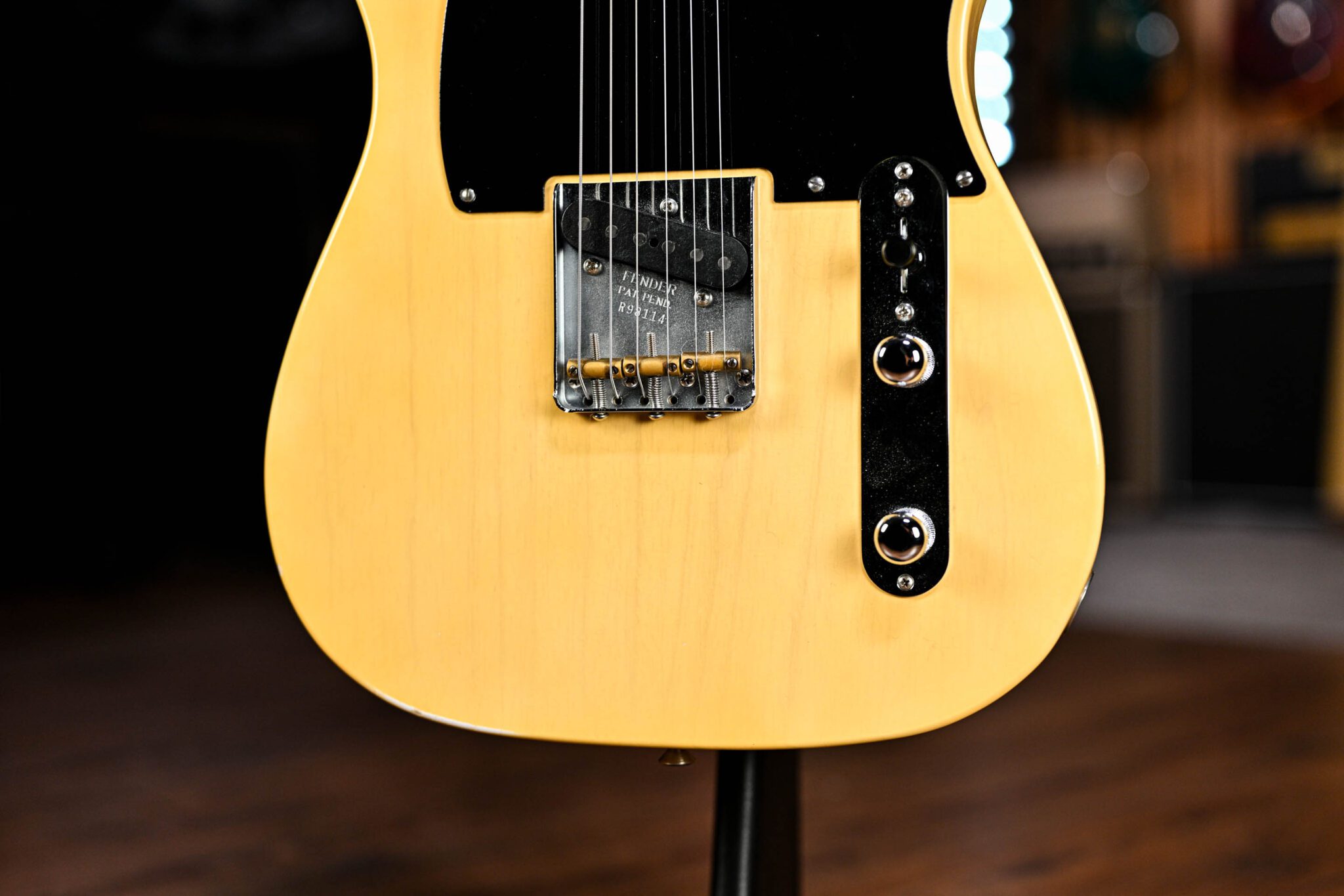 Built to capture the magic of an early 50s Telecaster in timeless “Closet Classic” Faded Nocaster Blonde finish, the super resonant ash body paired with the lightly aged maple fretboard produces a thick tone that has that familiar spank and clarity that a 50s Tele is known for. The Custom Shop pickups are clear, responsive and have that magical contrast between the bridge and neck positions with the funky mid position, ensuring you have an array of classic and inspirational tones at your fingertips.