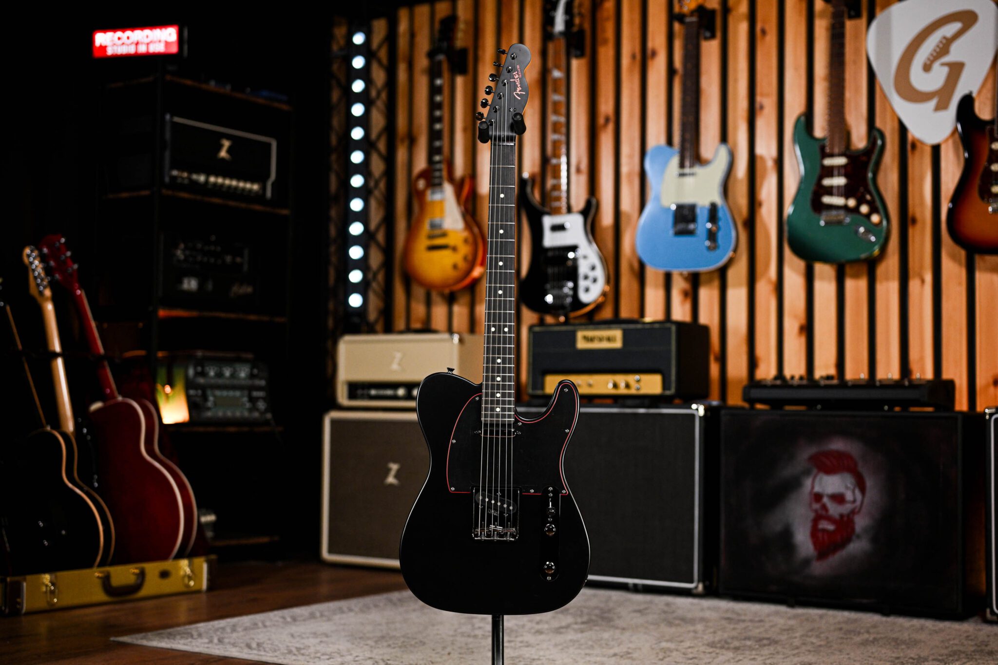 Boasting a pair of vintage-style single-coil pickups and a “U”-shaped neck, this Telecaster is sure to appeal to fans of the classic Fender tone and feel. However, a black-stained Rosewood fingerboard, black nickel hardware and a 3-ply black/red/black pickguard give this model plenty of modern flair!