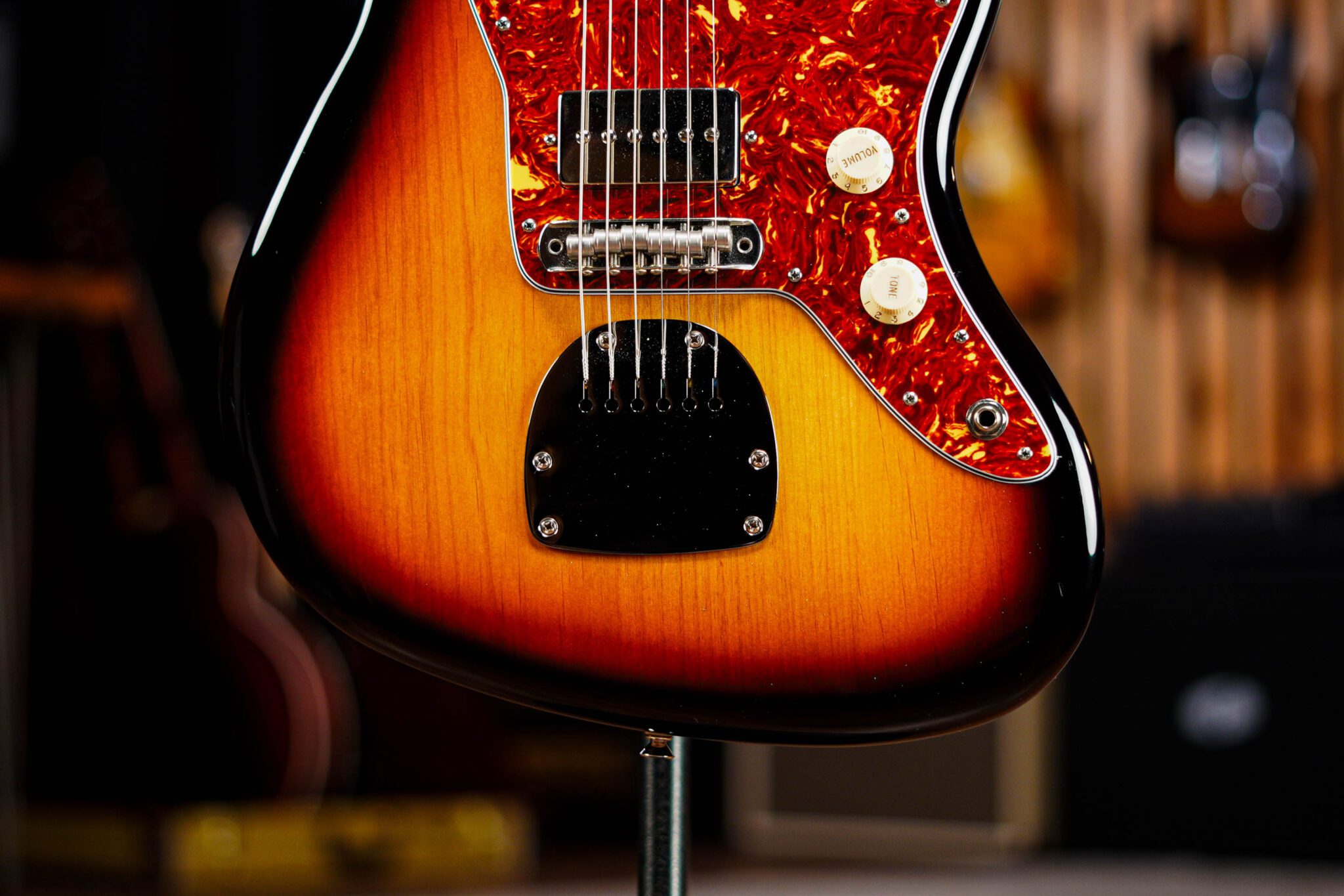 First introduced in 1958 as a feature-rich, top of the line guitar by Fender, originally designed for slinky cleans with plenty of twang, this Jazzmaster is a different animal! While retaining all those vintage looks, we have a pair of upgraded Tonerider Rebel 90 pickups delivering a powerful midrange and bite alongside a hardtail bridge for a stable playing platform.