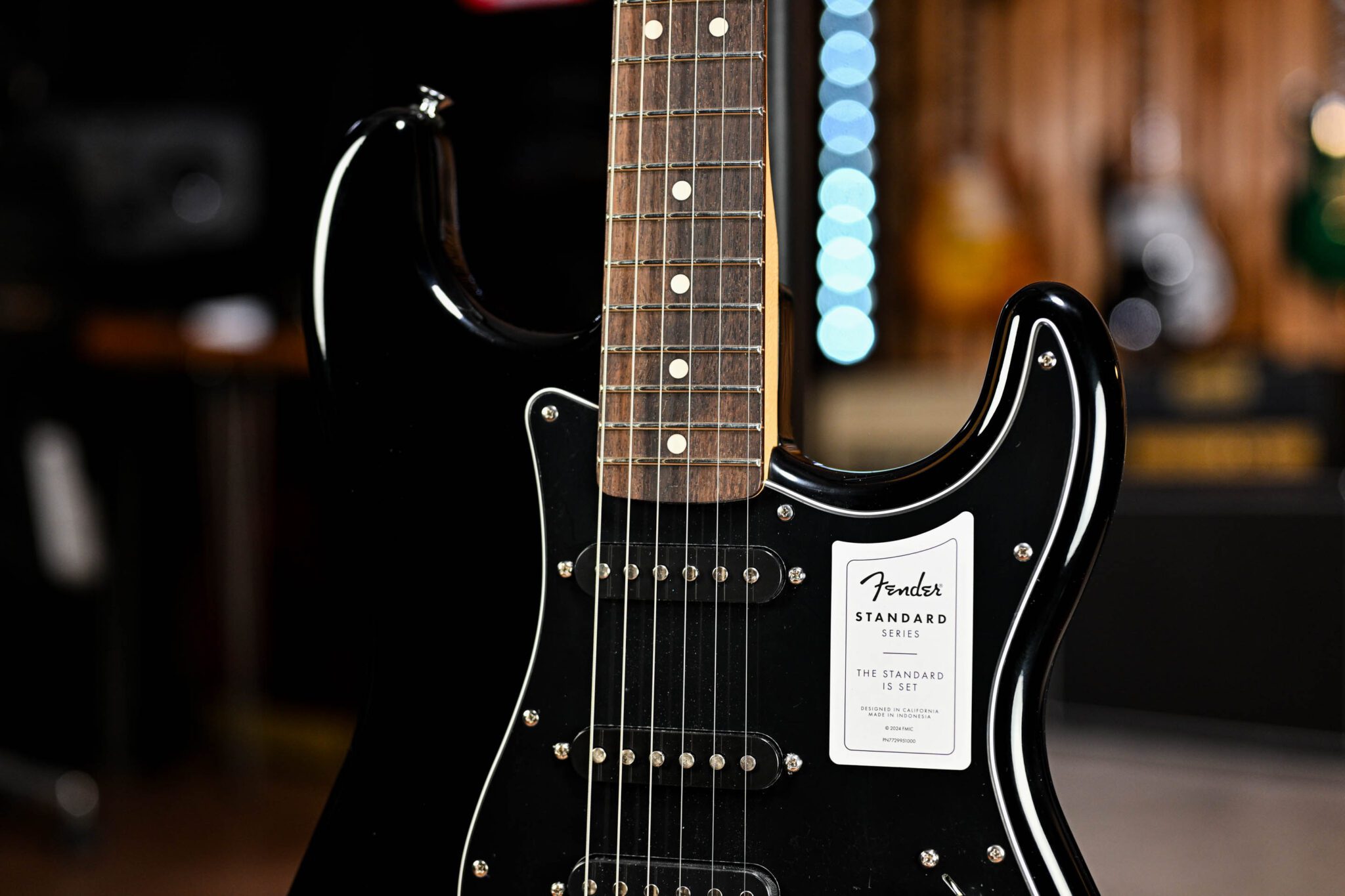 The Fender Standard Stratocaster HSS blends classic Strat sparkle with unexpected muscle. Its single-coil neck and middle pickups deliver the familiar glassy chime, while the bridge humbucker adds a punchy, modern edge—perfect for jumping from clean blues to high-gain riffs without switching guitars. It’s the Strat for players who want tradition, versatility, and a little attitude under the hood.