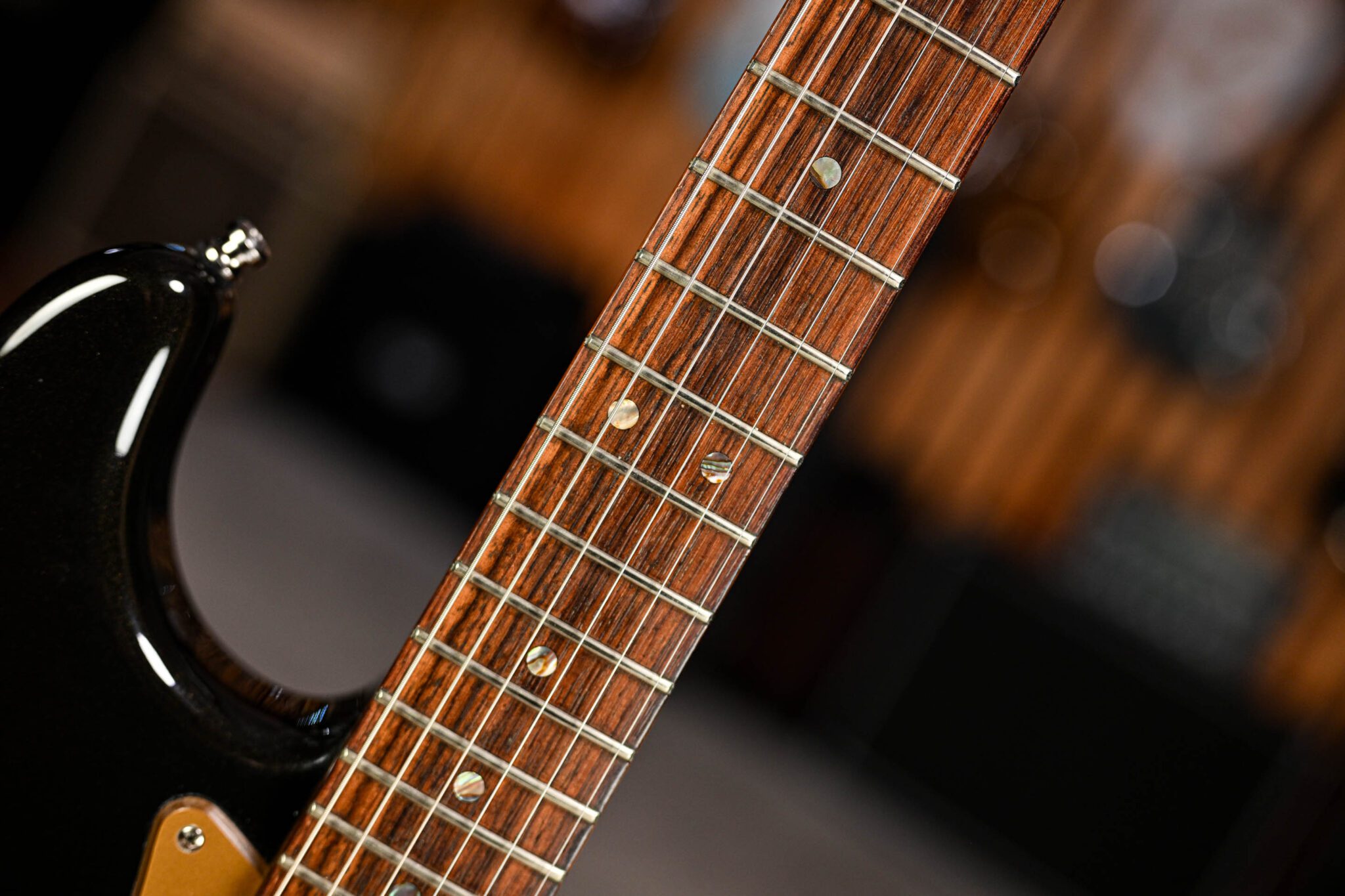 • Tuning Machines: Deluxe Staggered Cast/Sealed Locking Tuning Machines