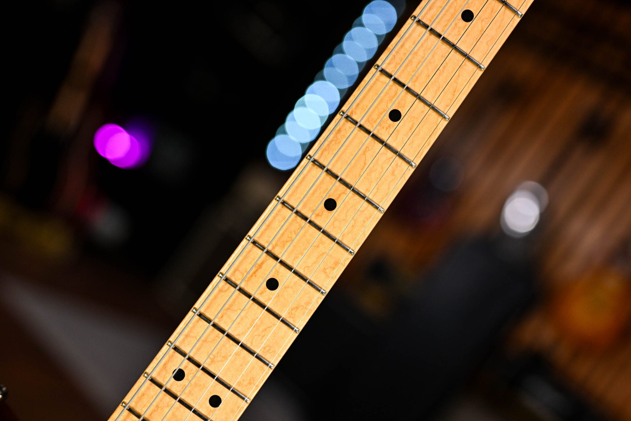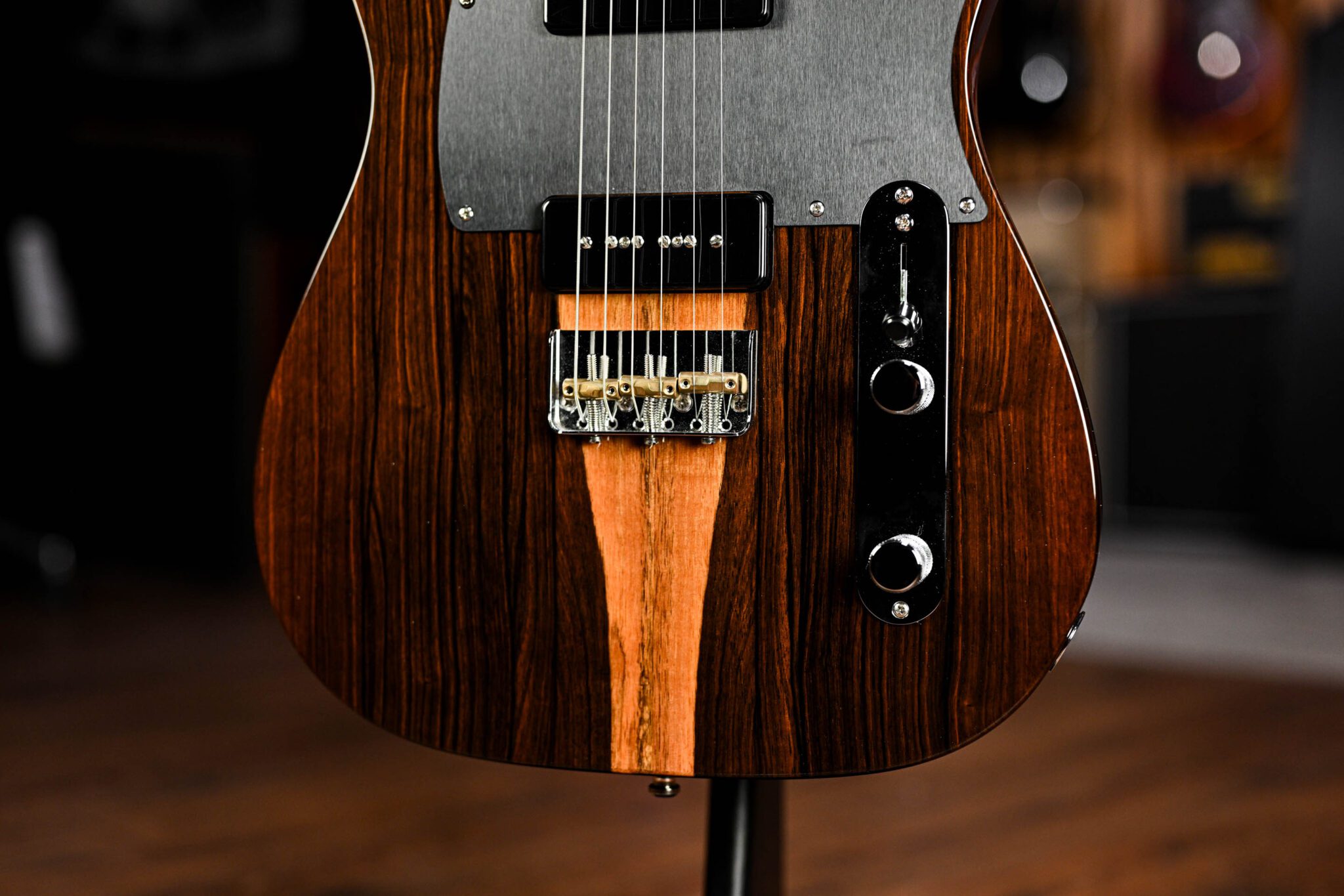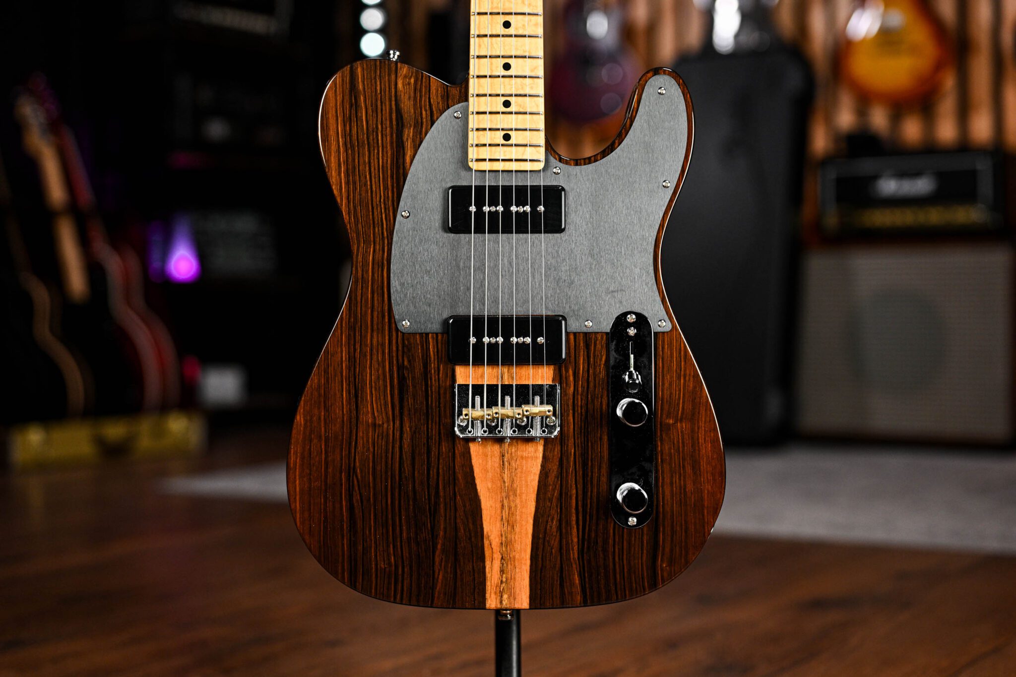 Loaded with two excellent JP-90 single-coil pickups, the 9.5”-radius maple fingerboard offers enough arc for comfortable chording while remaining flat enough for wide bends. The custom string-through-body short- plate Tele bridge features compensated brass saddles for accurate intonation along the entire length of the neck making this one stunning looking and amazing sounding guitar!