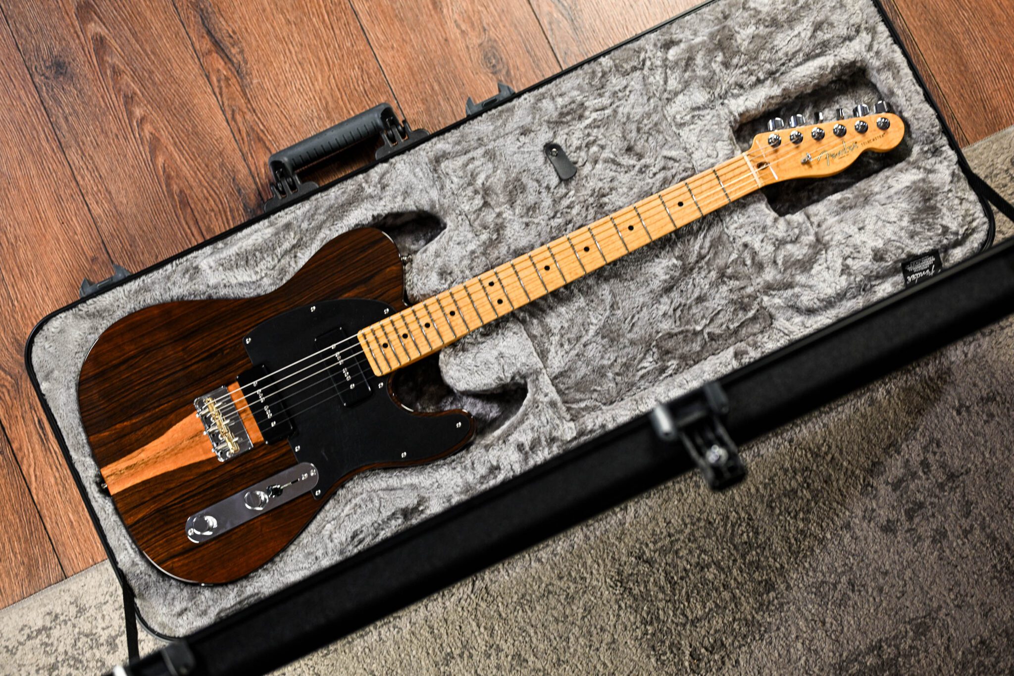 A departure from Fender’s traditional tone wood choices, this Limited-Edition Malaysian Blackwood Telecaster enhances the traditional Tele style with the elegant look of a Malaysian blackwood top. Strong and dense, Malaysian blackwood has plenty of sustain, perfect for soaring lead lines and raucous rhythm work.