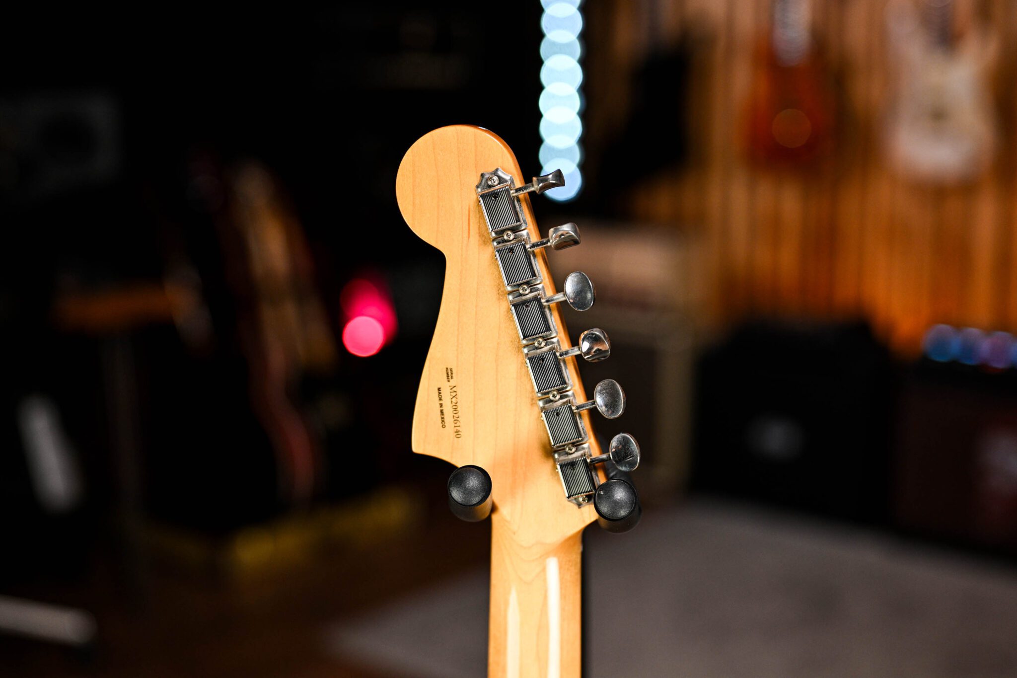 First introduced in 1958 as a feature-rich, top of the line guitar by Fender, it offers a generous supply of tones, from slinky cleans with plenty of twang, to creamy leads, all of which sounds great when utilising the guitar’s smooth vibrato. Benefiting from the wide field single coil pickups offering the spank of a classic single coil with the added bottom end and mids thanks to the wider magnetic field along with the classic smooth vibrato and versatile switching system its every bit the classic Jazzmaster.