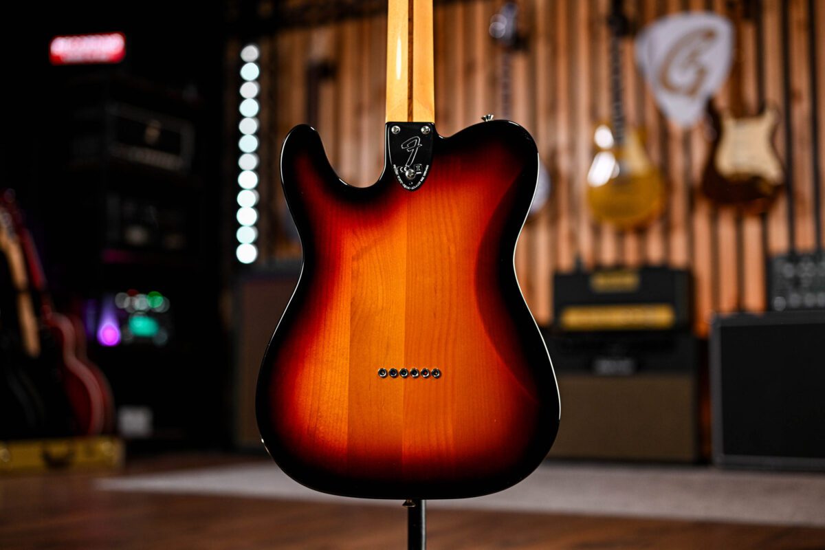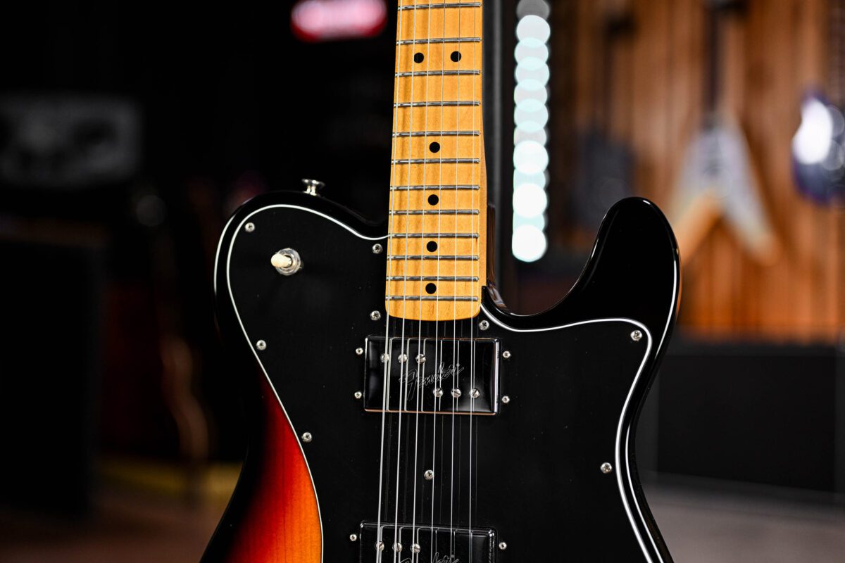 Telecasters shouldn’t sound this fat but when equipped with the famously full sounding Fender Wide Range humbuckers the guitar is transformed. These beasts are perfect for handling higher gain, but equally produce smooth cleans if you like to dial back every now and again. There’s plenty to explore with this sonic combination and with the C shape neck is effortless to navigate and a monster of huge tele tone.