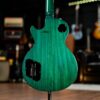 The stunning book matched quilt maple top and perimeter finish alongside the green-tinted body and neck result in one of the most incredible guitars we have ever seen! The asymmetrical neck is a perfect shape feeling amazing in the hand and thanks to a good set up, the action is buzz-free perfection, and the tones are incredible. Signed by the Gibson employee that book matched the top and the 120th Anniversary banner on the 12th fret position and this is a future collector’s item.
