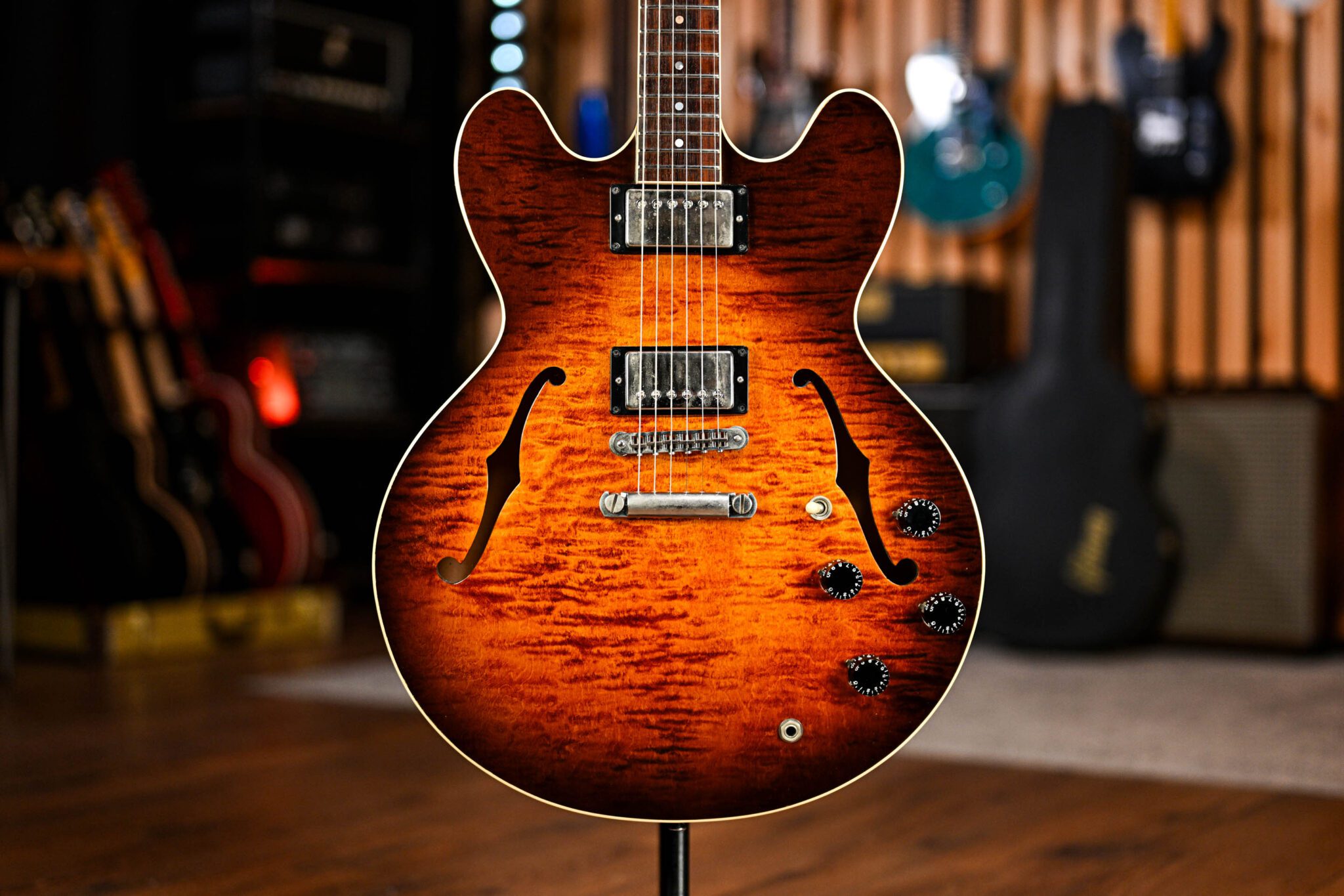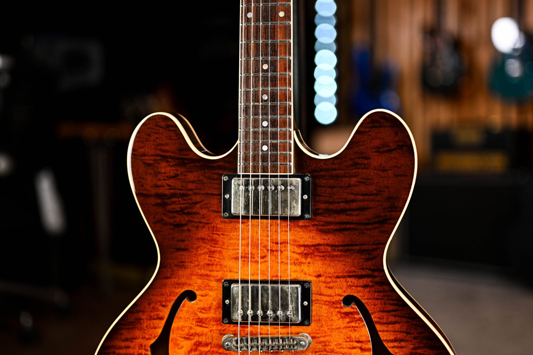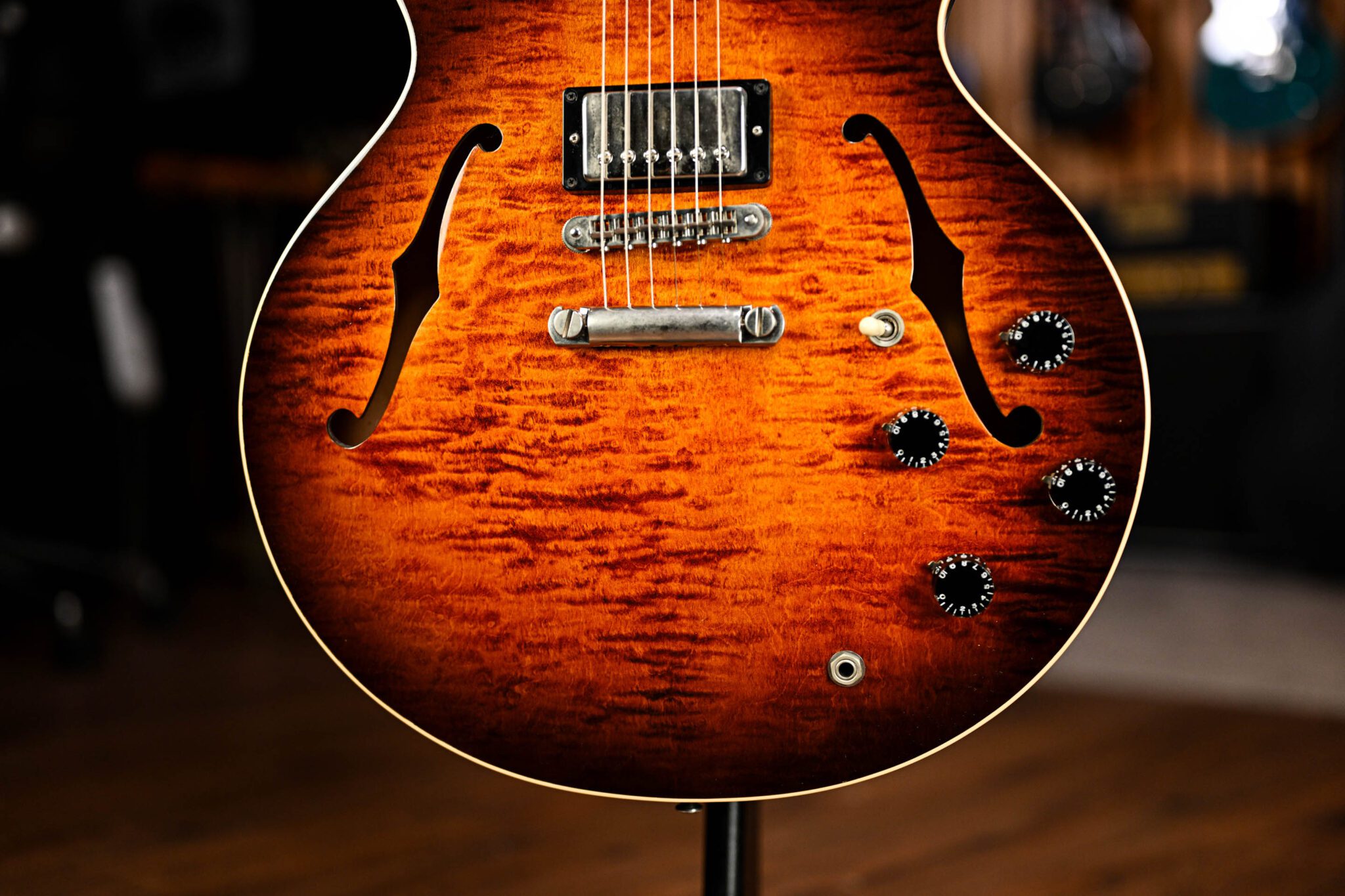 All the most loved classic ES-335 features are present; maple, popular, maple top and back with a solid maple centre block and of cause semi hollow construction and a figured top and back beautifully crafted into one totally stunning instrument. First produced by Gibson in 1958, the classic formula thankfully hasn’t changed, and this highly figured 1987 model is a truly stunning example! From rock to blues and everything in-between there isn’t much this guitar can’t handle with ability to combine amazing clarity, midrange and huge sustain all at the same time.