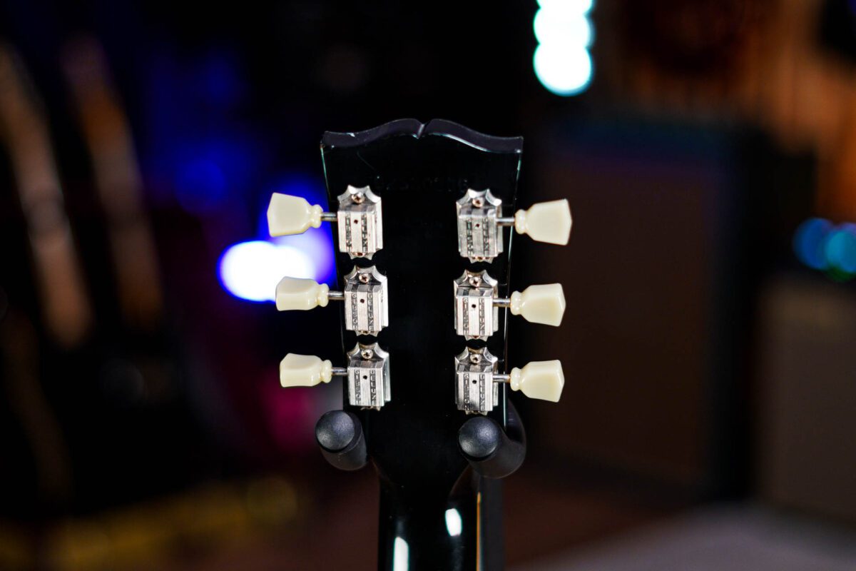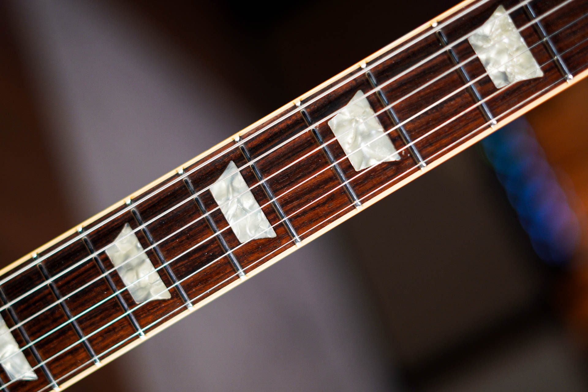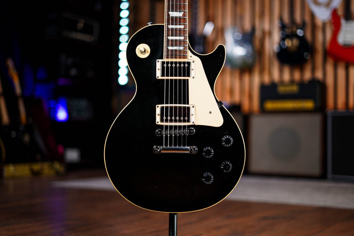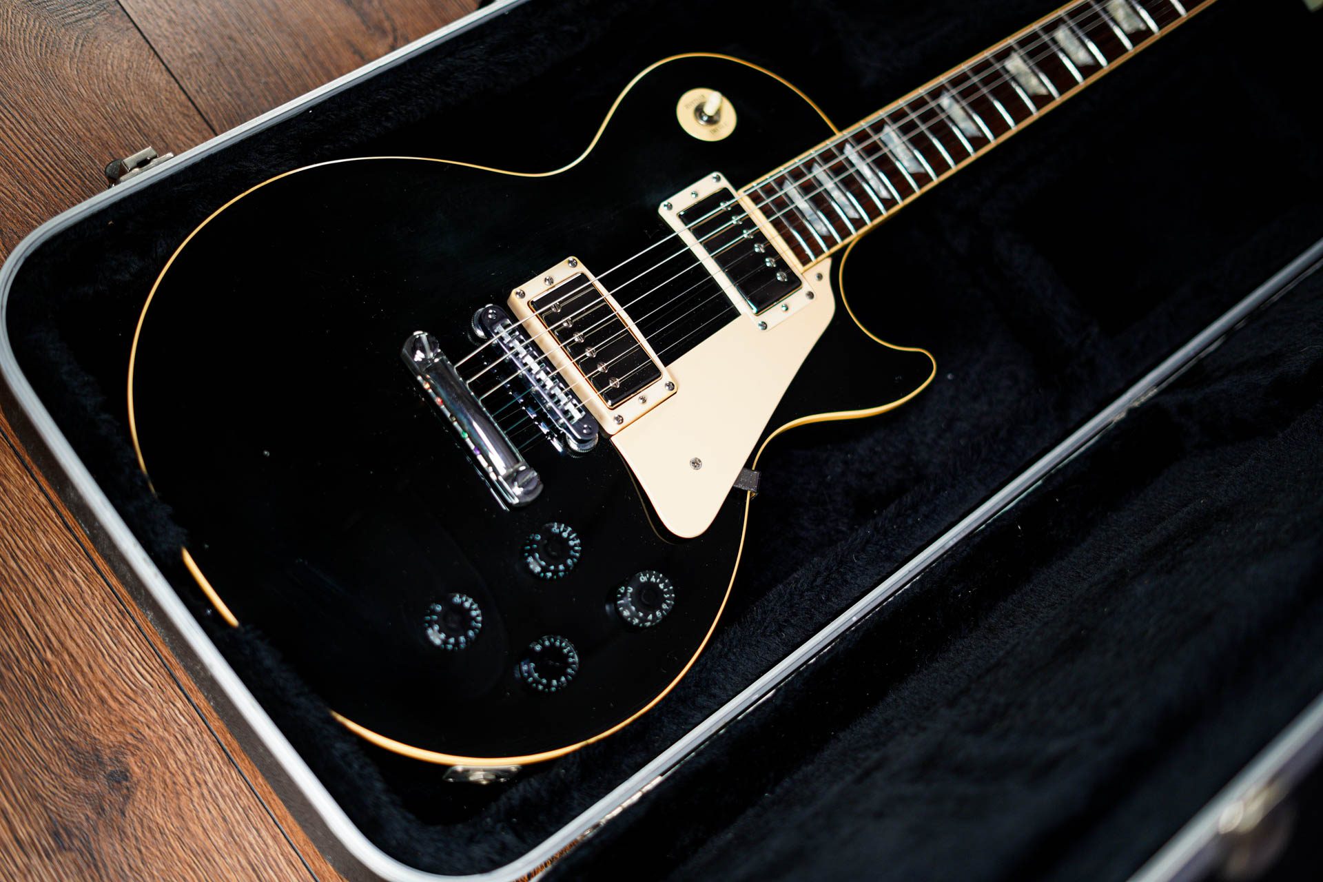 This 1990 Les Paul Standard was built at a time many (including us…) consider a golden era for Gibson manufacturing and this guitar represents a stunning example! It’s Ebony body shows off the classic Les Paul contours and curves in contrast to the white/cream binding alongside the rosewood fretboard with the complex trapezoid inlays so significant to this era. True to the reputation Gibsons of this period have; the guitar is bright with significant bottom end and huge sustain, this is everything we look for in a high end Les Paul!