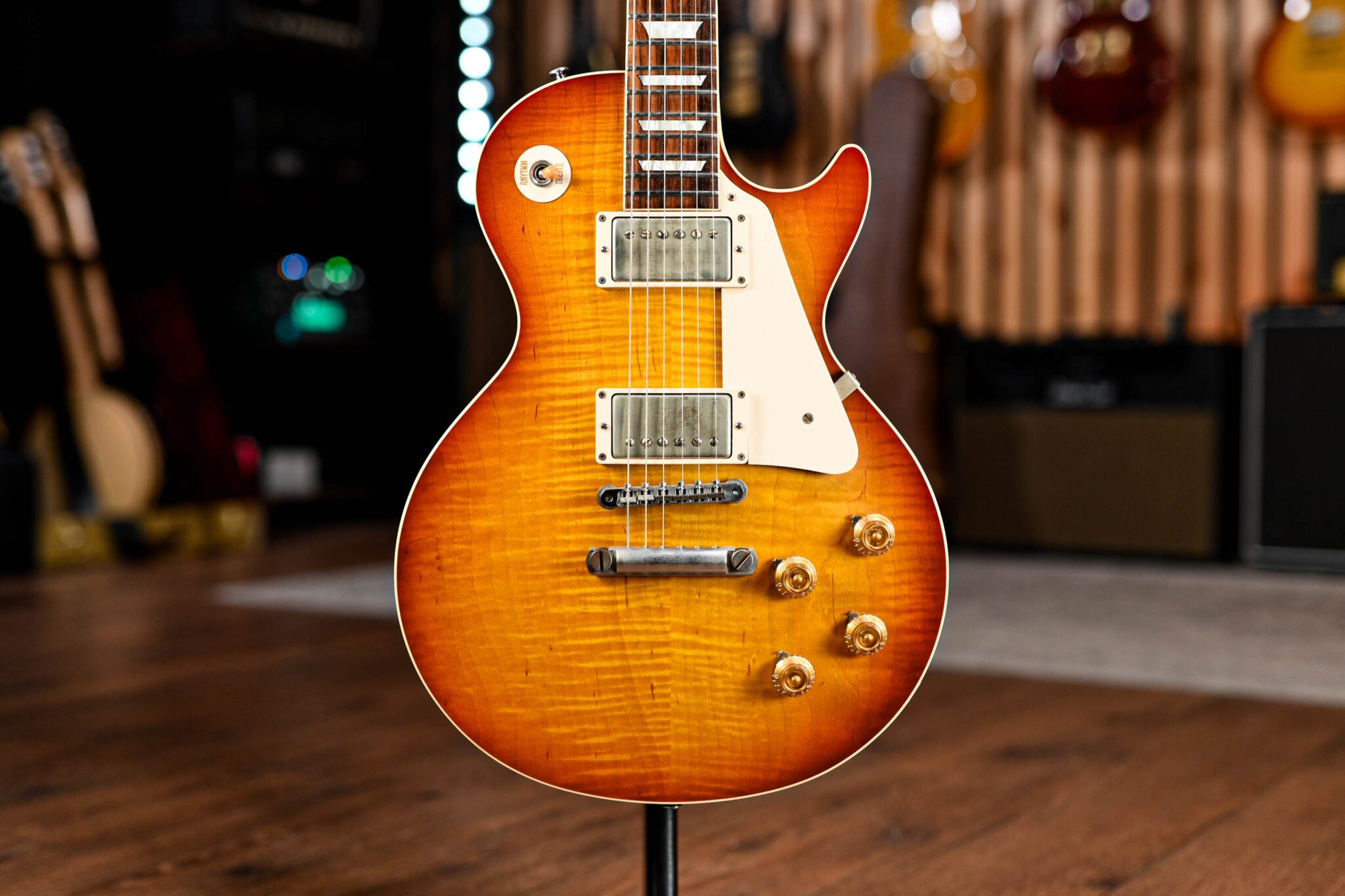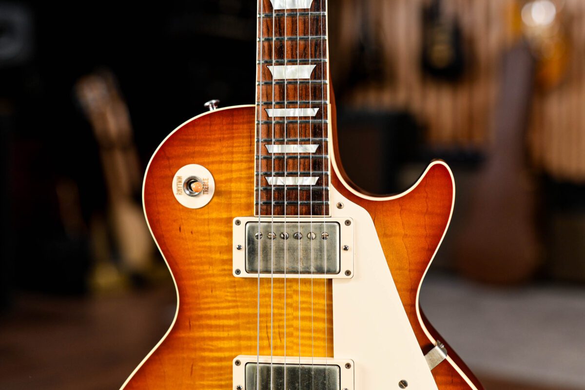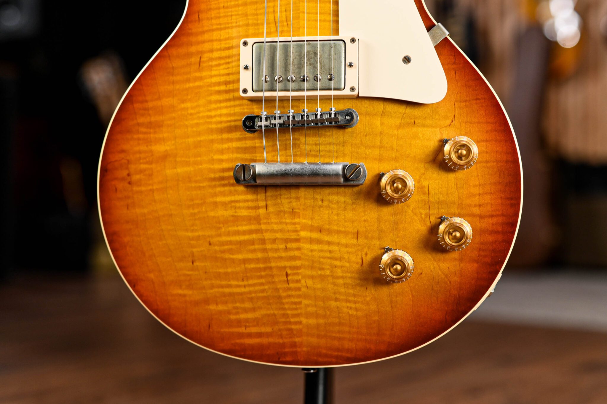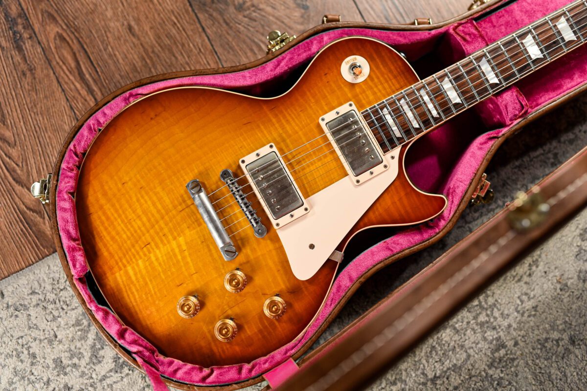 Created by some of the finest craftspeople in the world, built with care from the highest quality tone woods, hardware and period correct pickups. This guitar not only looks like the originals but has that midrange punch, huge sustain and clear note definition that made these guitars the most sought after and valuable guitars of all time. With what we consider a perfect 50s neck; both comfortable, fast and provides a huge level of string bending sustain, this is truly a dream Les Paul!