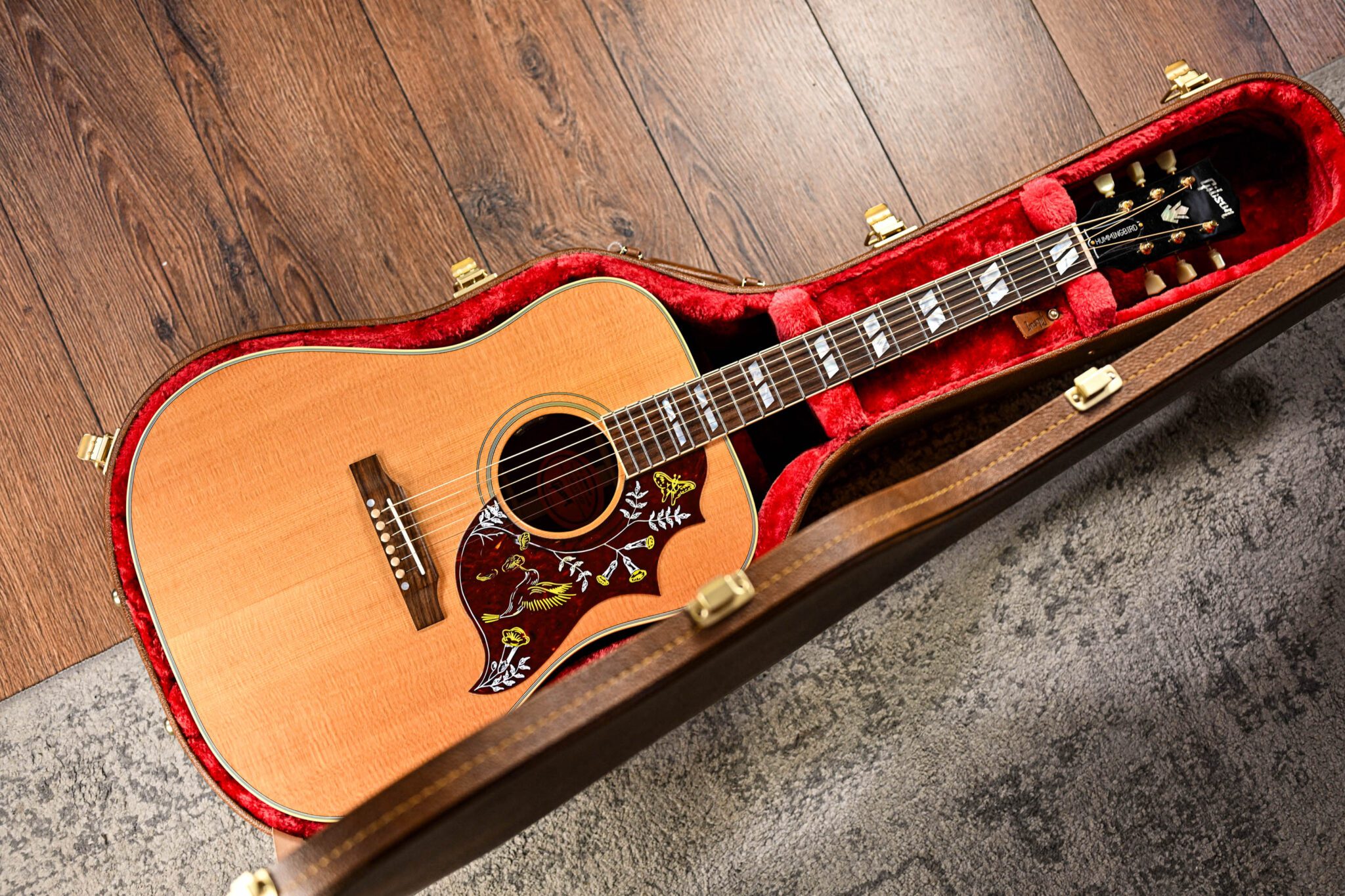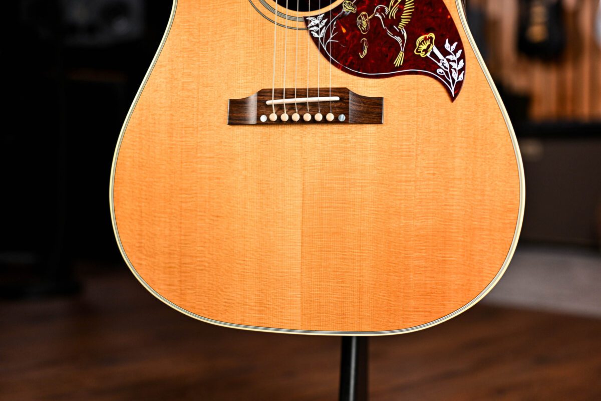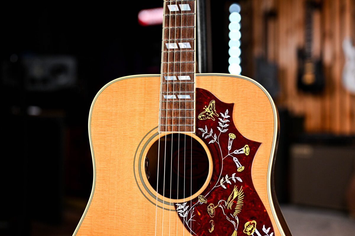 A stunning acoustic guitar in every sense, say hello to the Gibson Hummingbird!