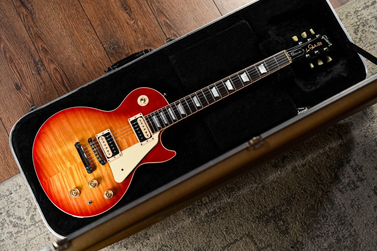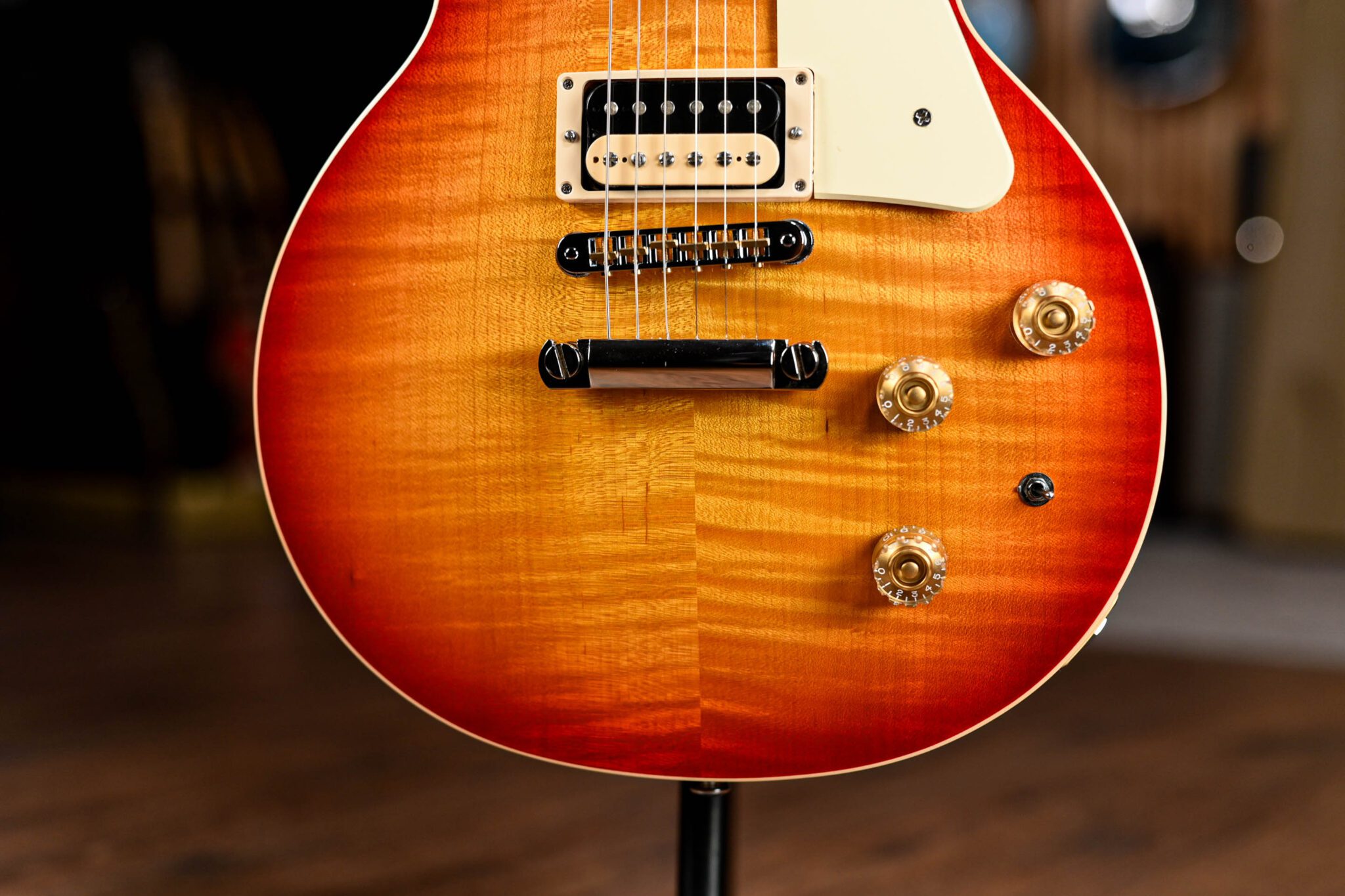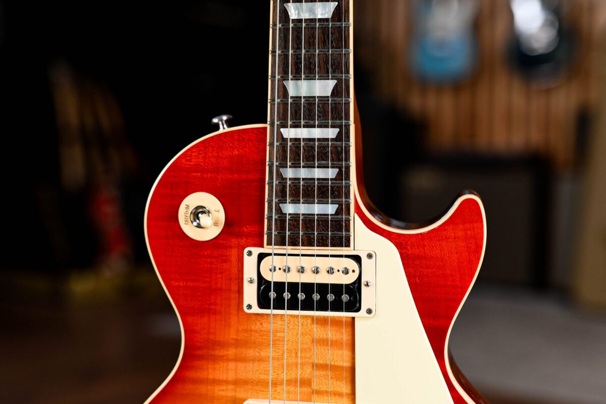 With a mahogany body, set mahogany neck and of cause that maple top and a pair of Gibson humbuckers this has the baseline features we look for in a Les Paul. Beyond the classic attributes, it’s an instrument with a huge and lively tone with huge resonance and sustain! With the 15dB preamp boost at the flick of a switch, a boost in your solo tone and saturation is at your fingertips!